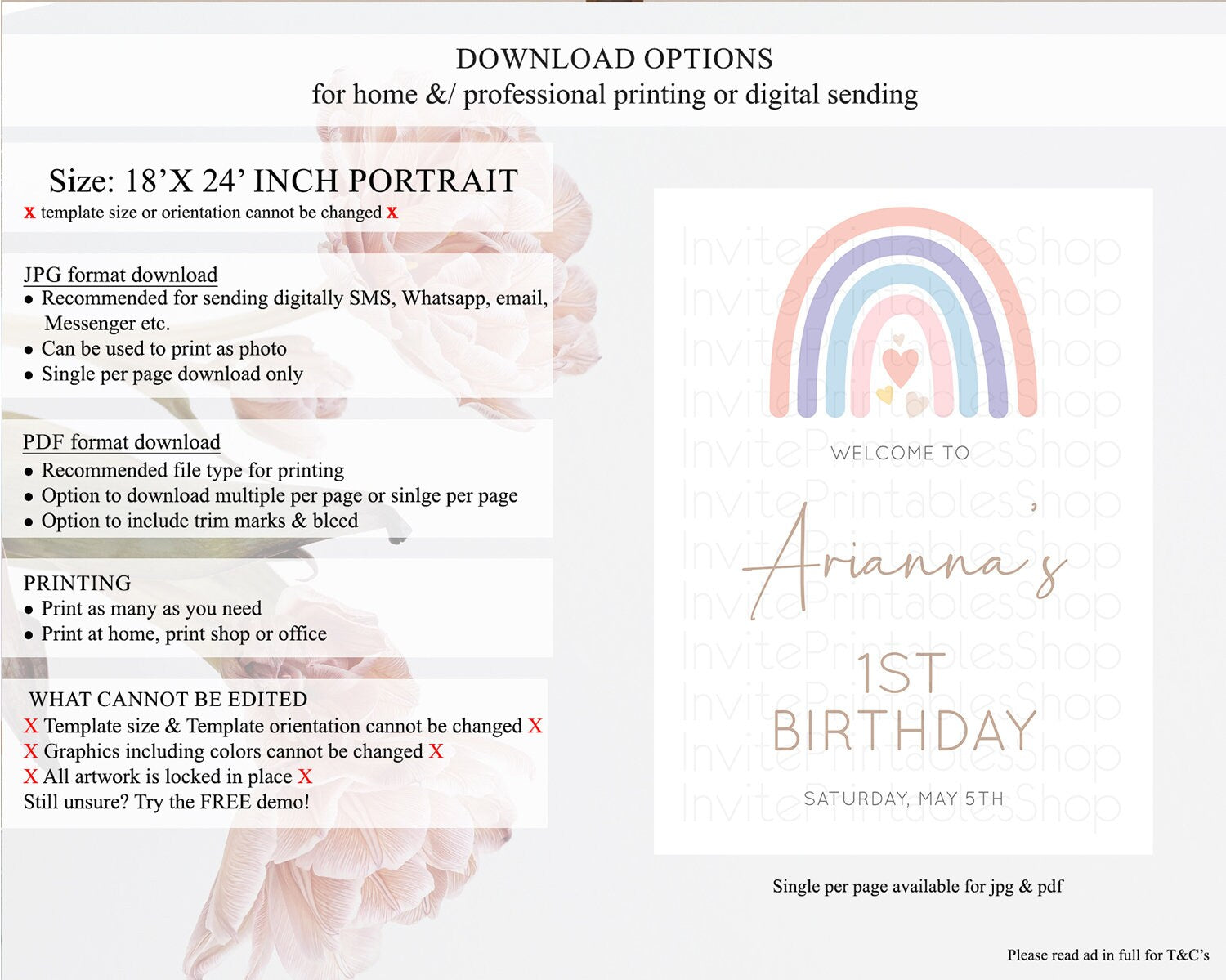 • Template size & orientation cannot be changed. Please use the demo link to confirm this product suits your needs.