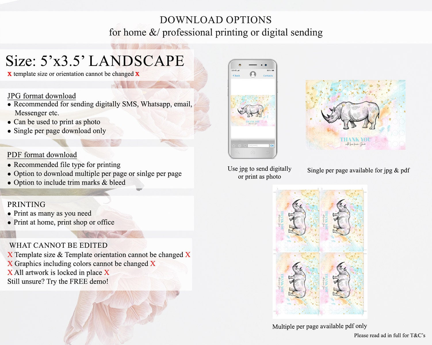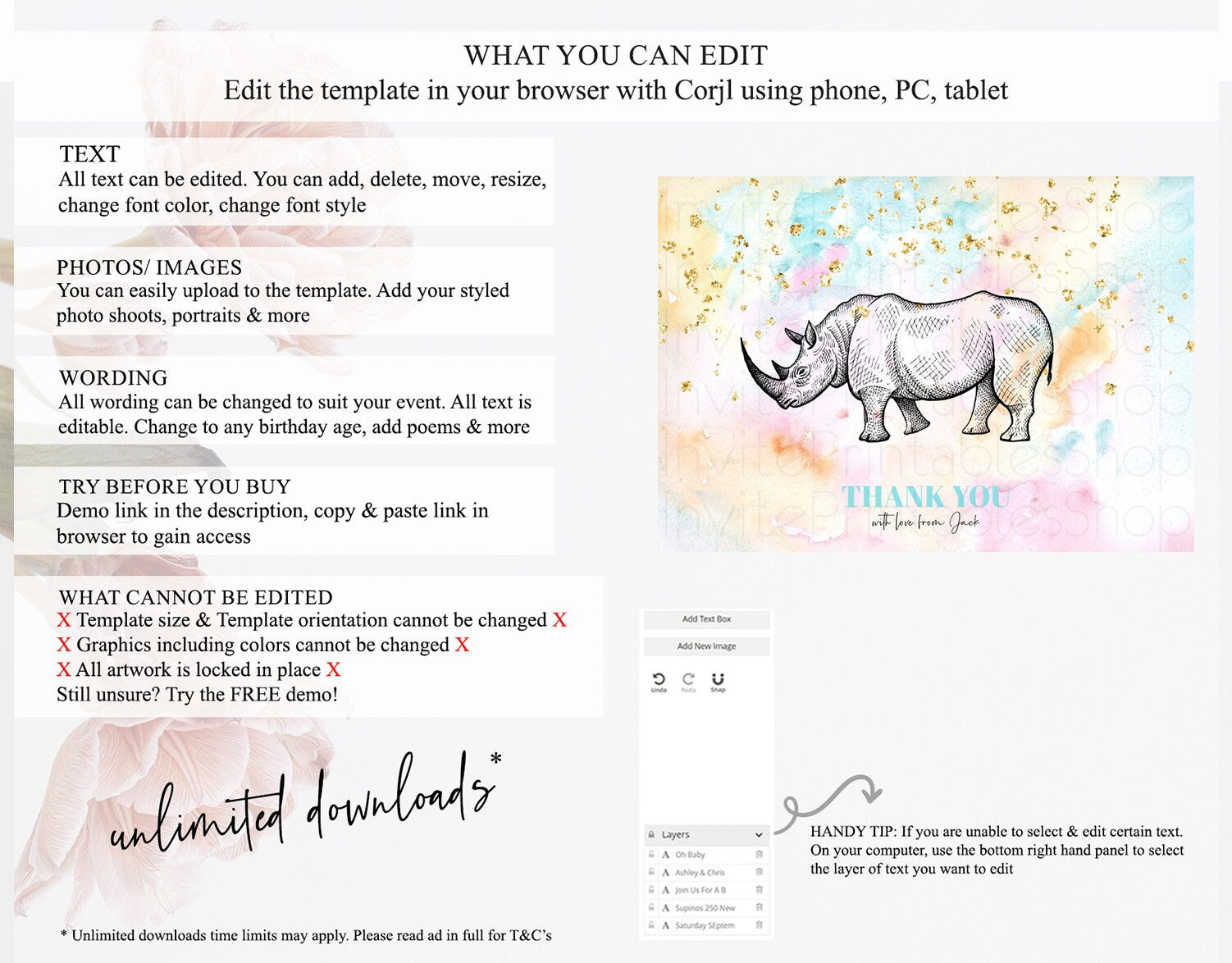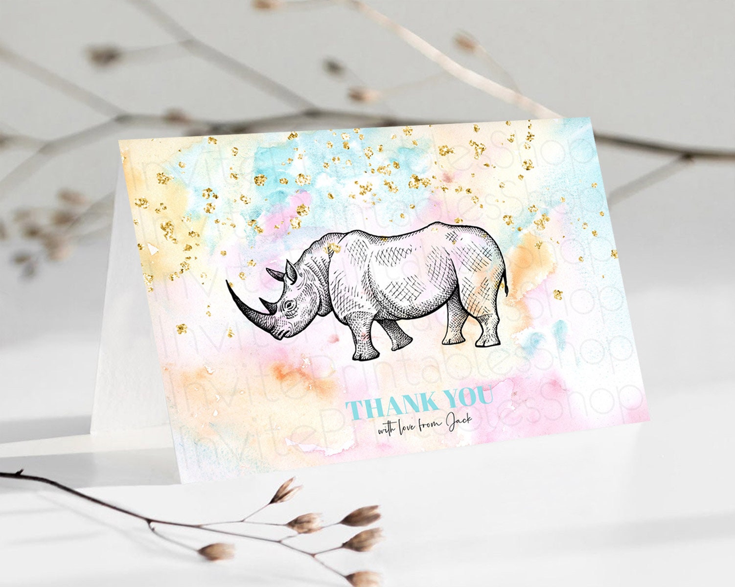 Pastel Rhino Thank You Rainbow Rhino Thank You Card Colorful Rainbow Birthday Thank You Pastel Rhino Teacher Thank You Card Template D10287