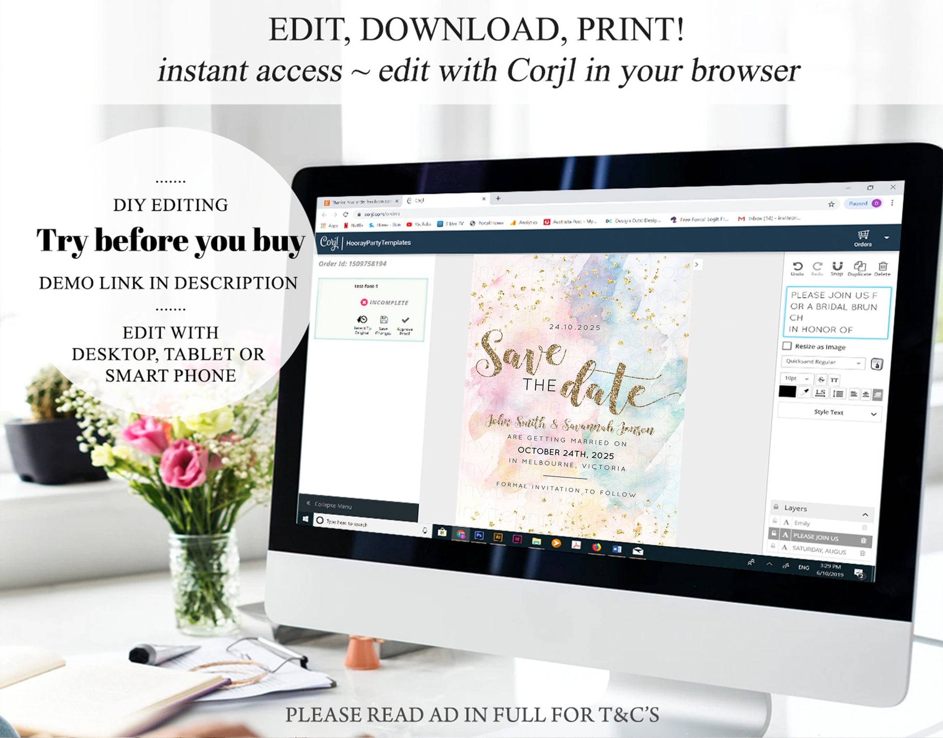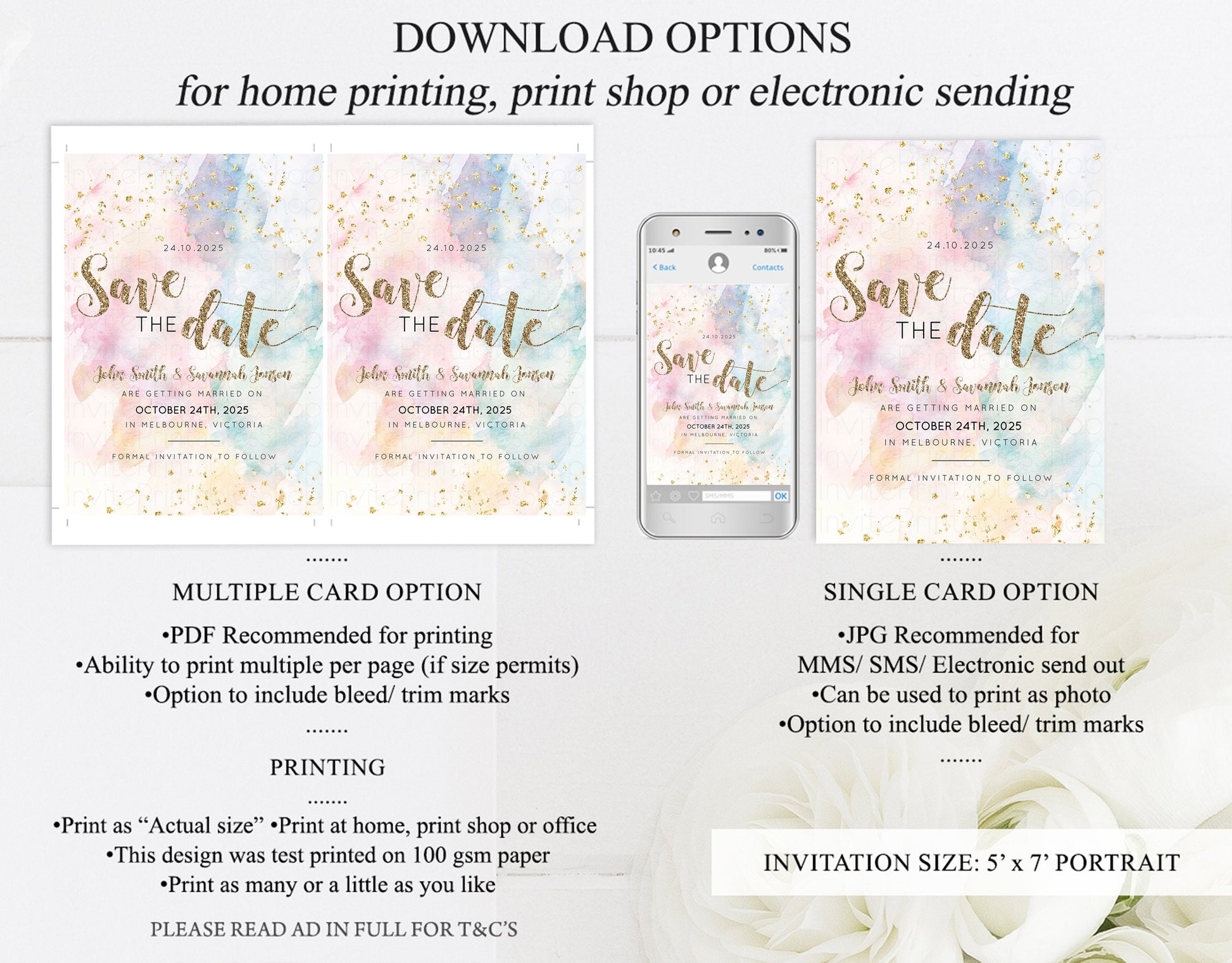 Pastel Save The Date Pastel Colors Save The Date Rainbow Colors Save The Date Ombre Invite Splash Wedding Engaged Baptism Christening 276