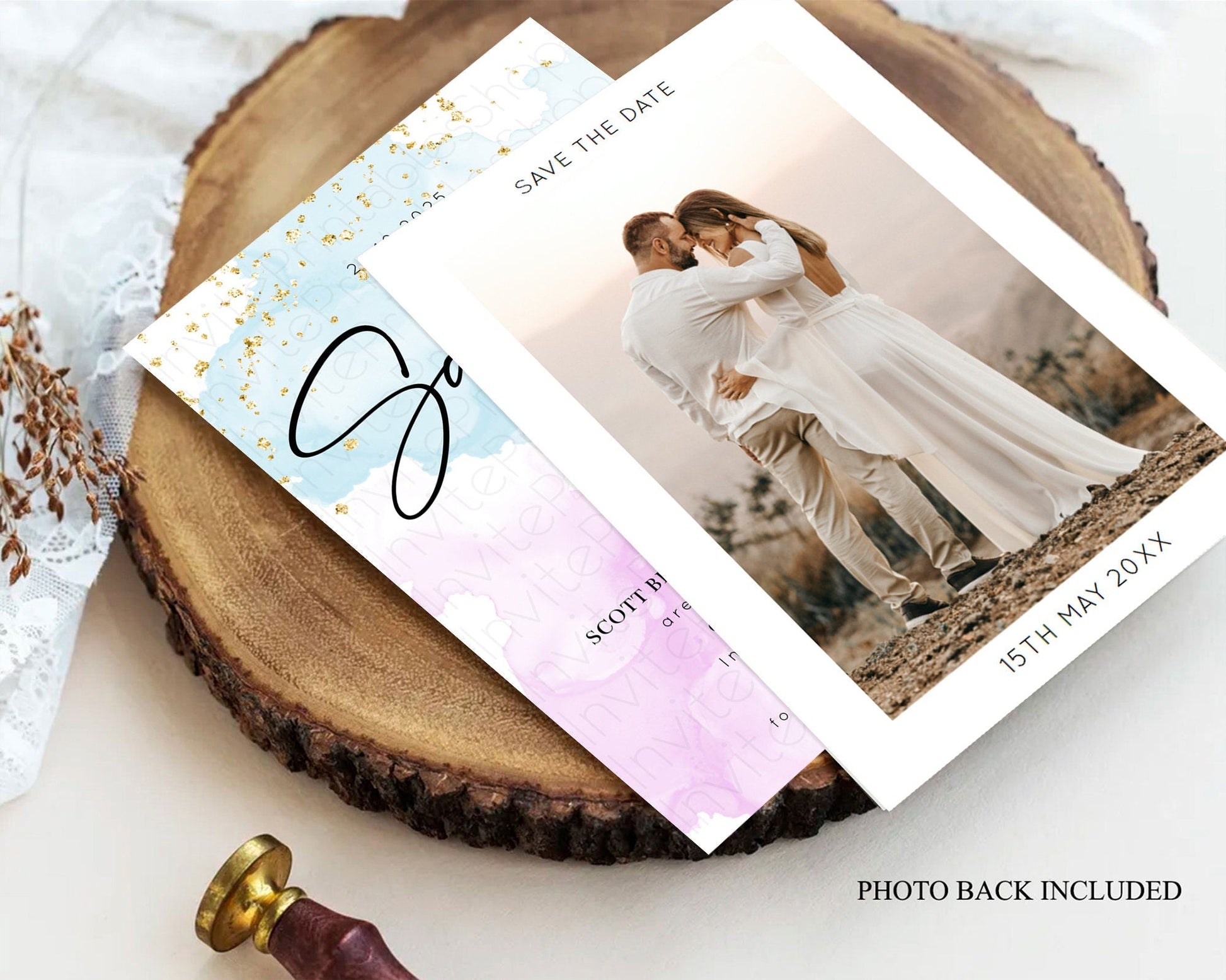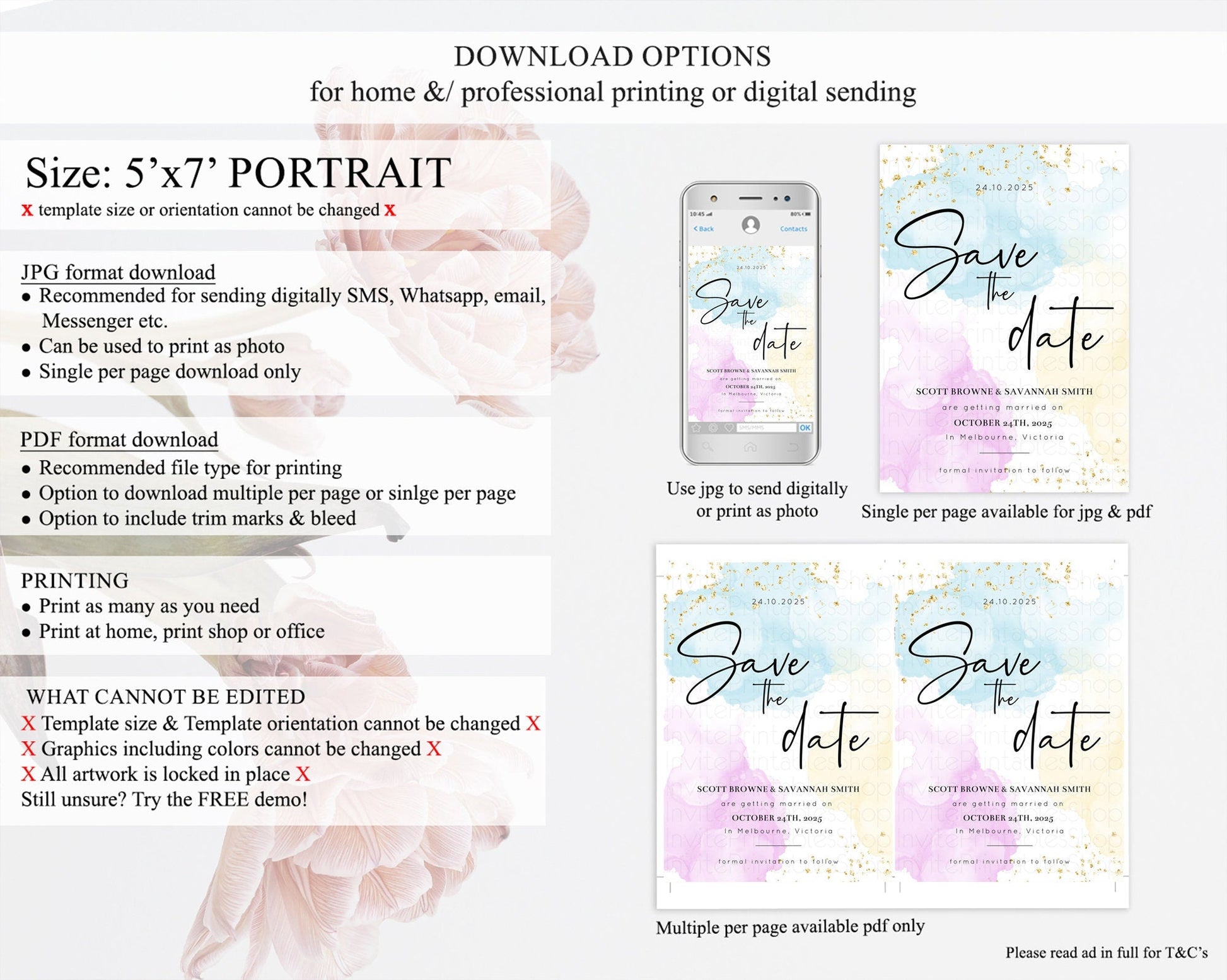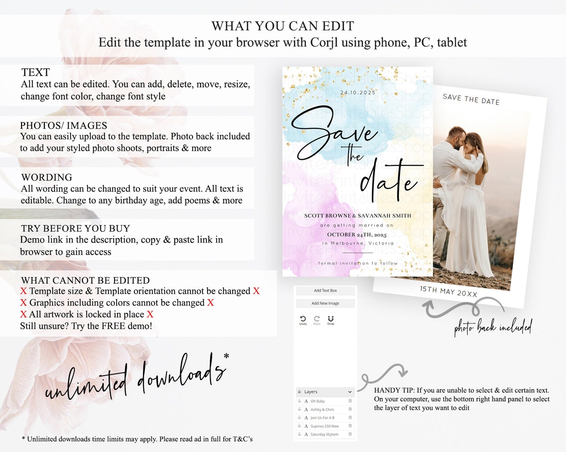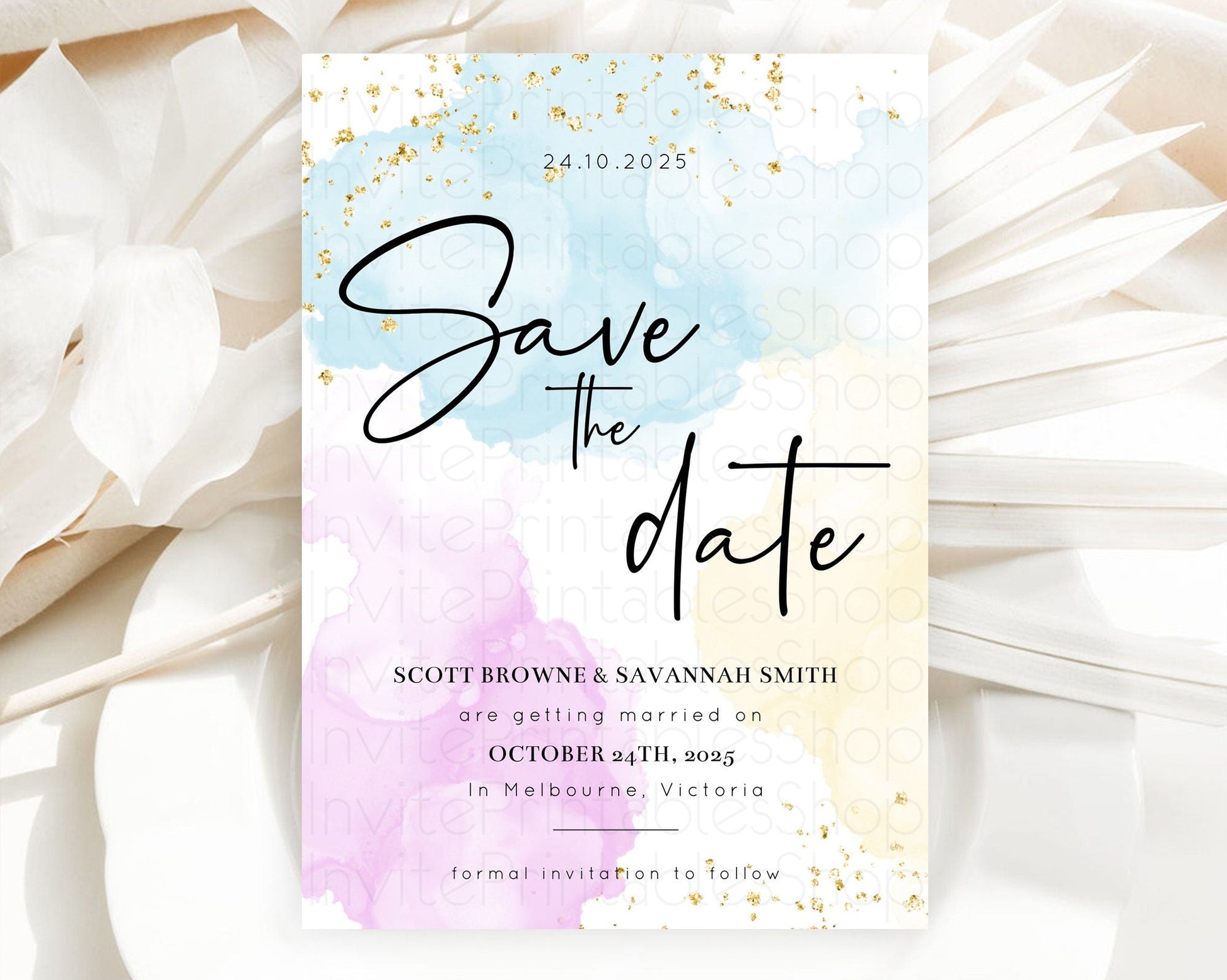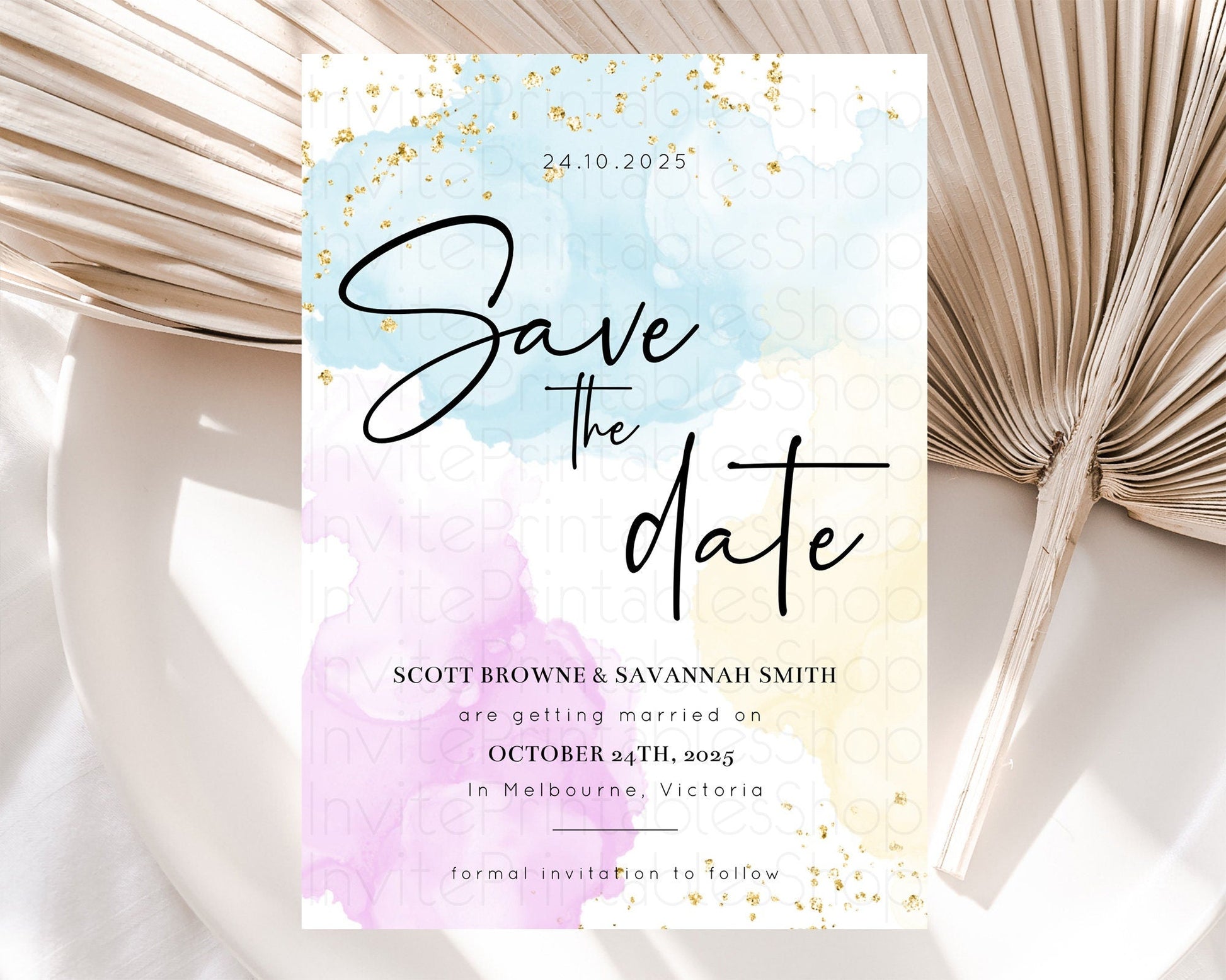 Pastel Save The Date Template Pastel Ombre Rainbow Watercolor Colorful Party For Birthday Baptism Baby Shower Wedding Bridal Shower D10155