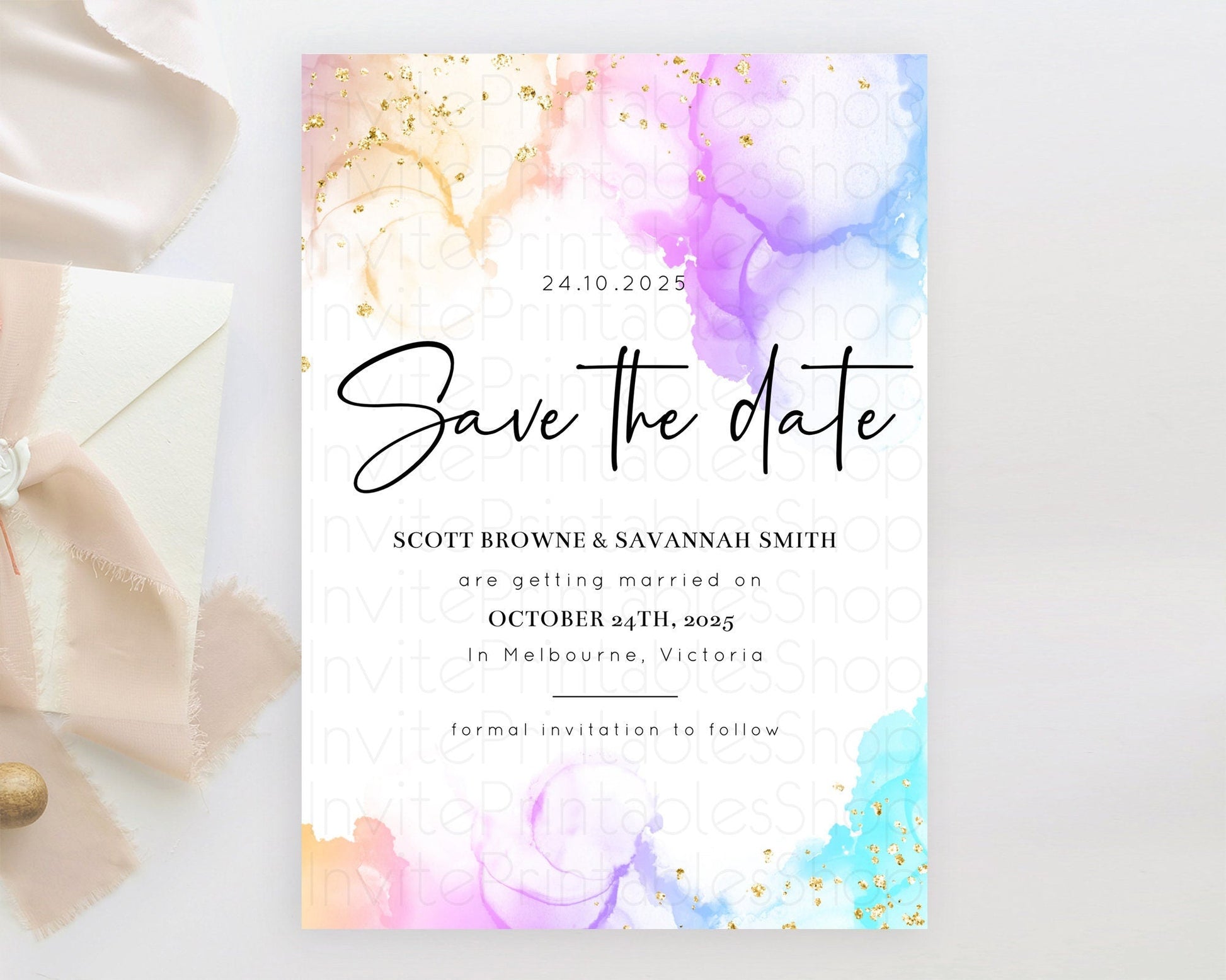 Pastel Save The Date Template Pastel Ombre Rainbow Watercolor Colorful Party For Birthday Baptism Baby Shower Wedding Bridal Shower D10180