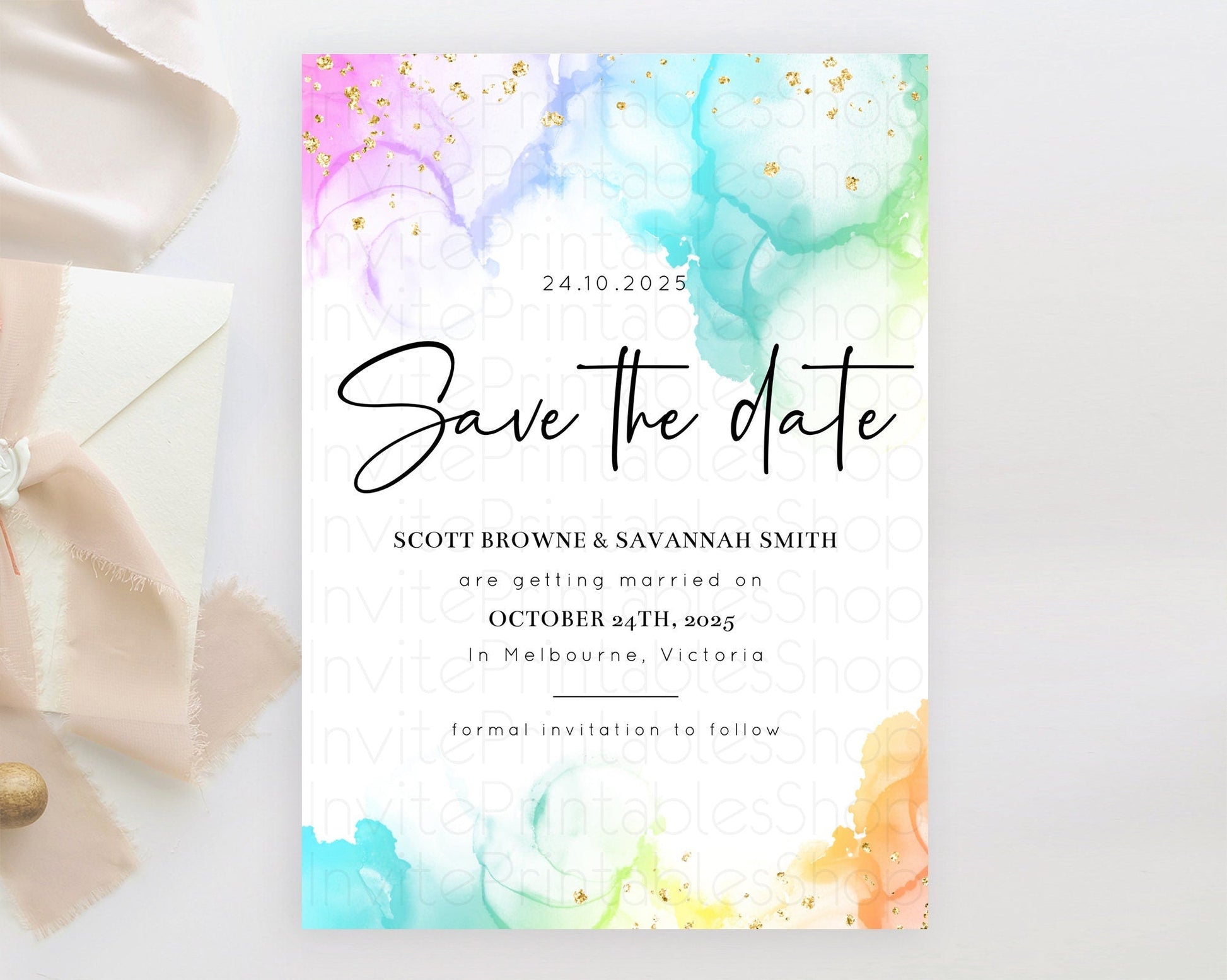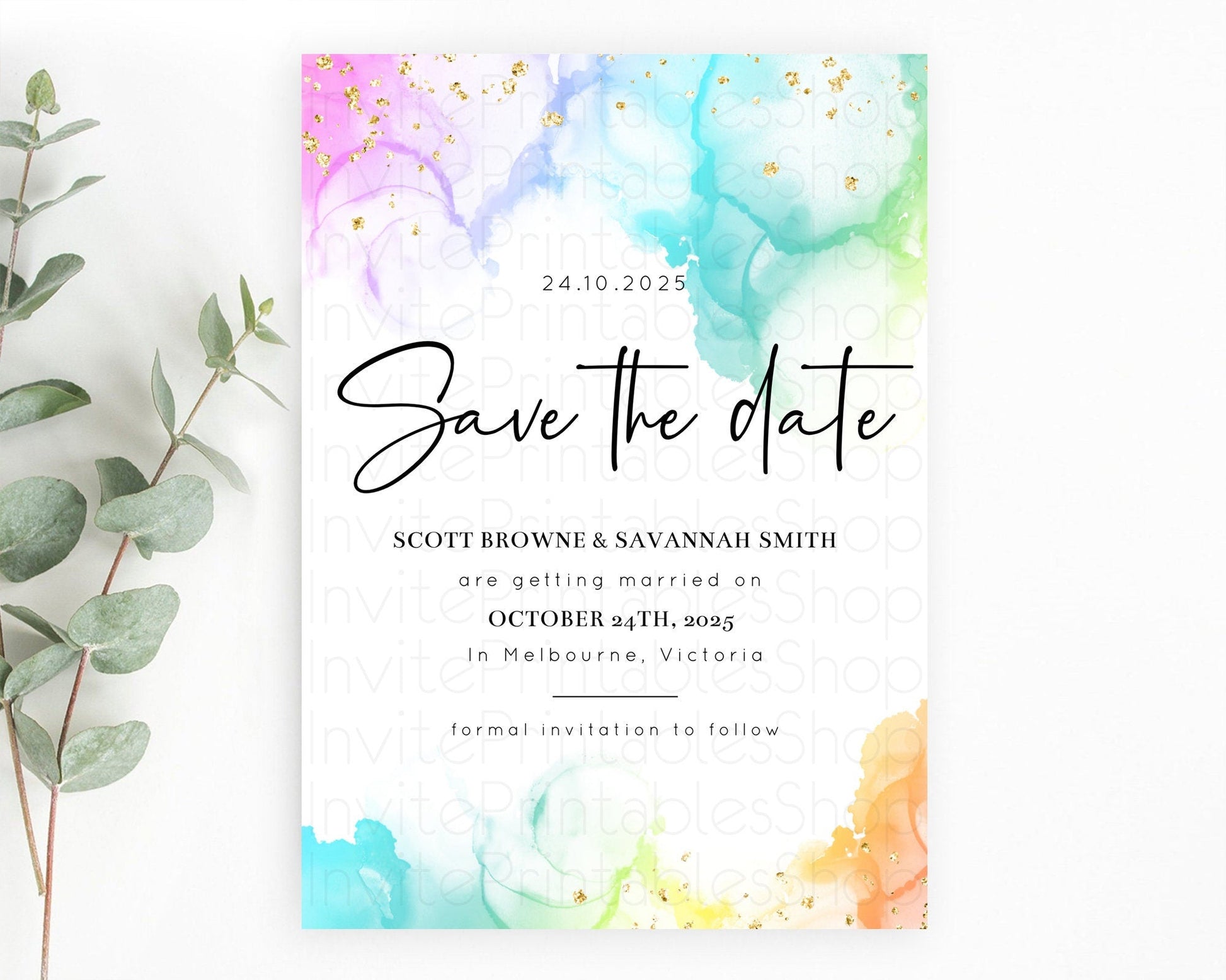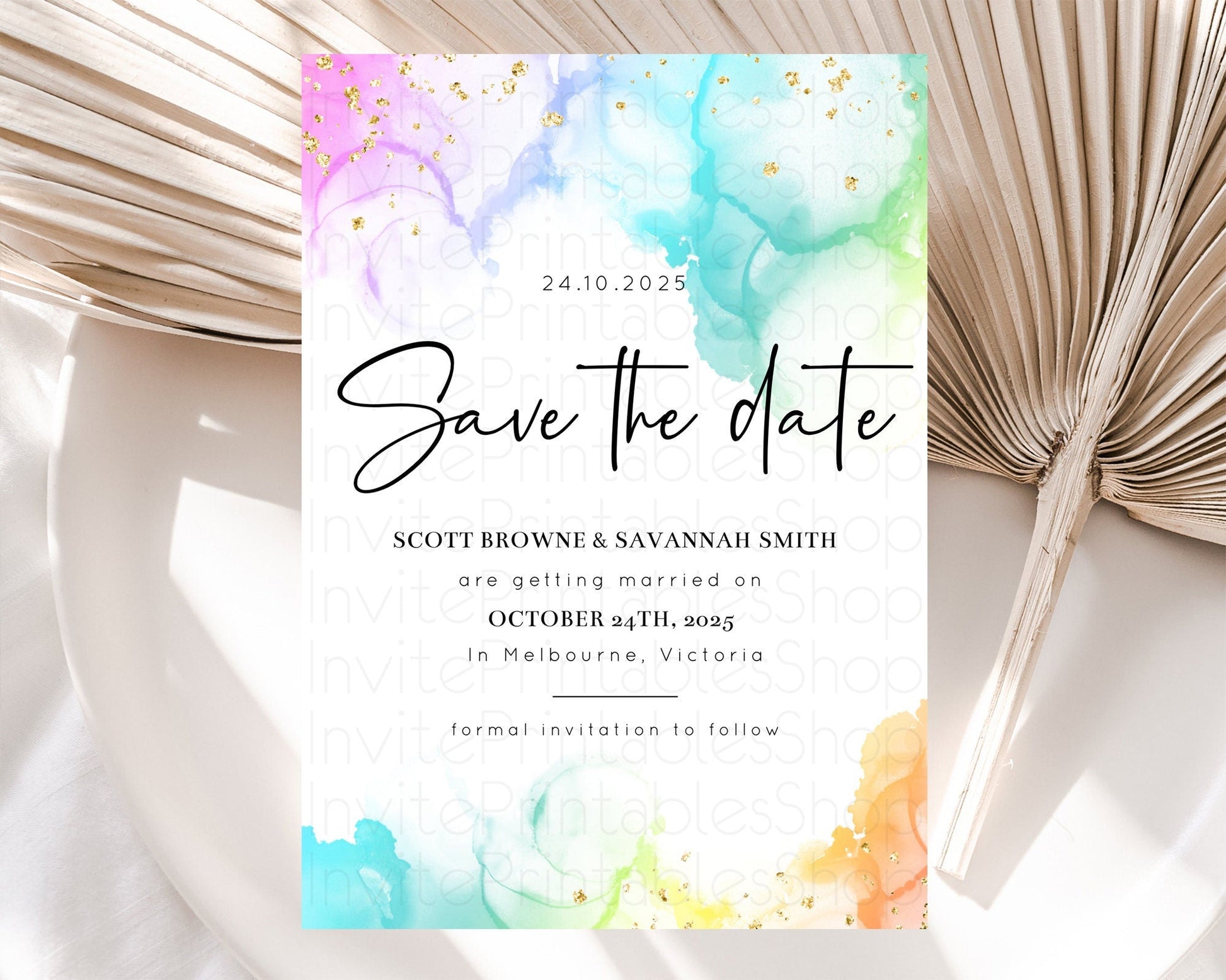 Pastel Save The Date Template Pastel Ombre Rainbow Watercolor Colorful Party For Birthday Baptism Baby Shower Wedding Bridal Shower D10181