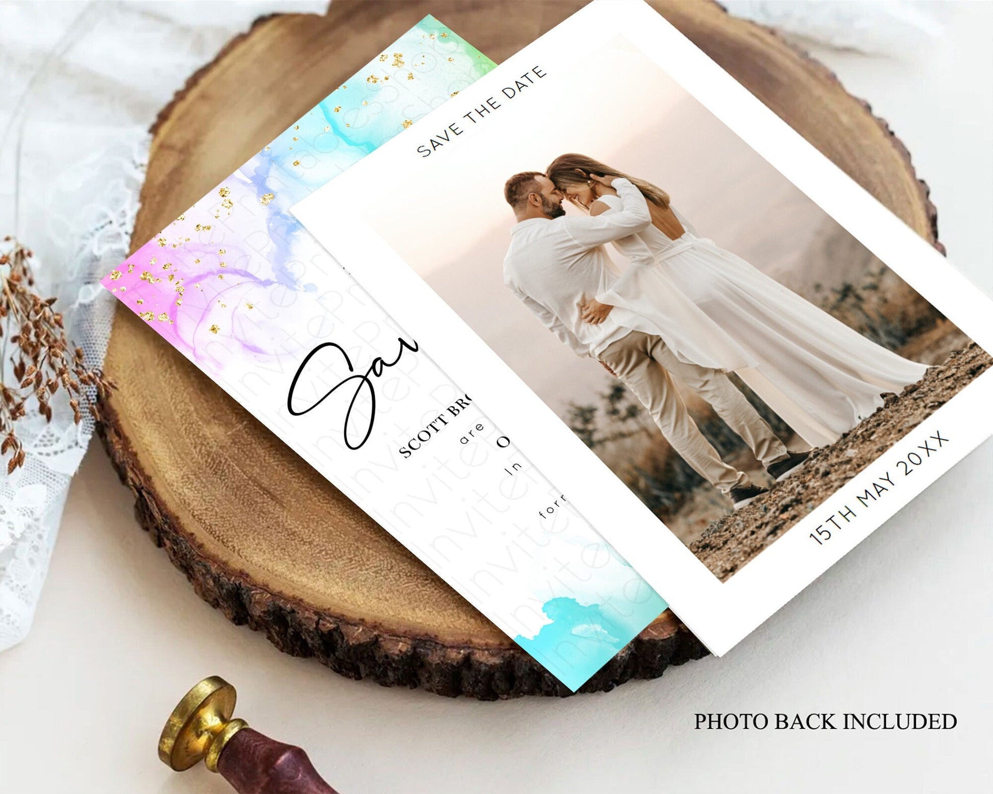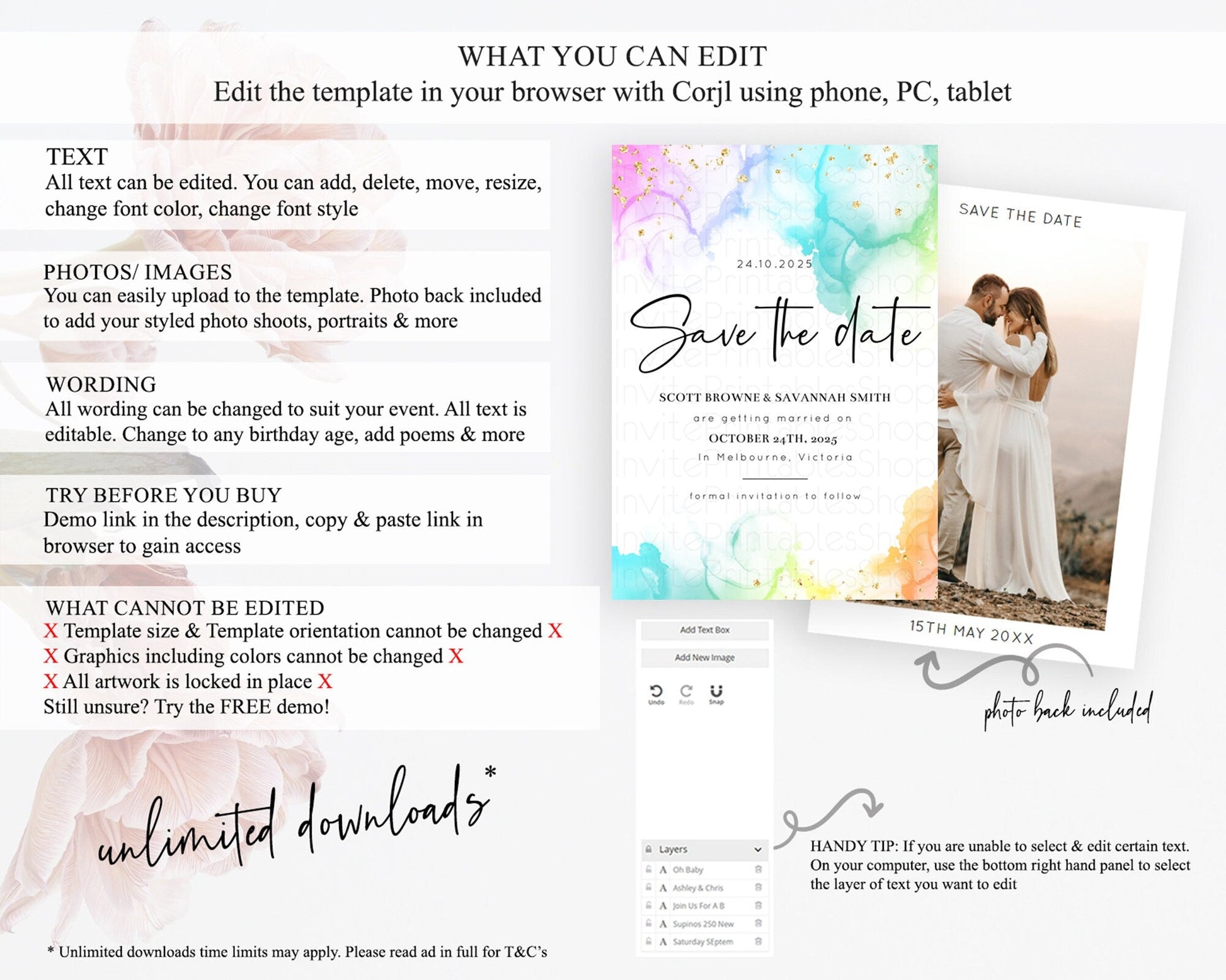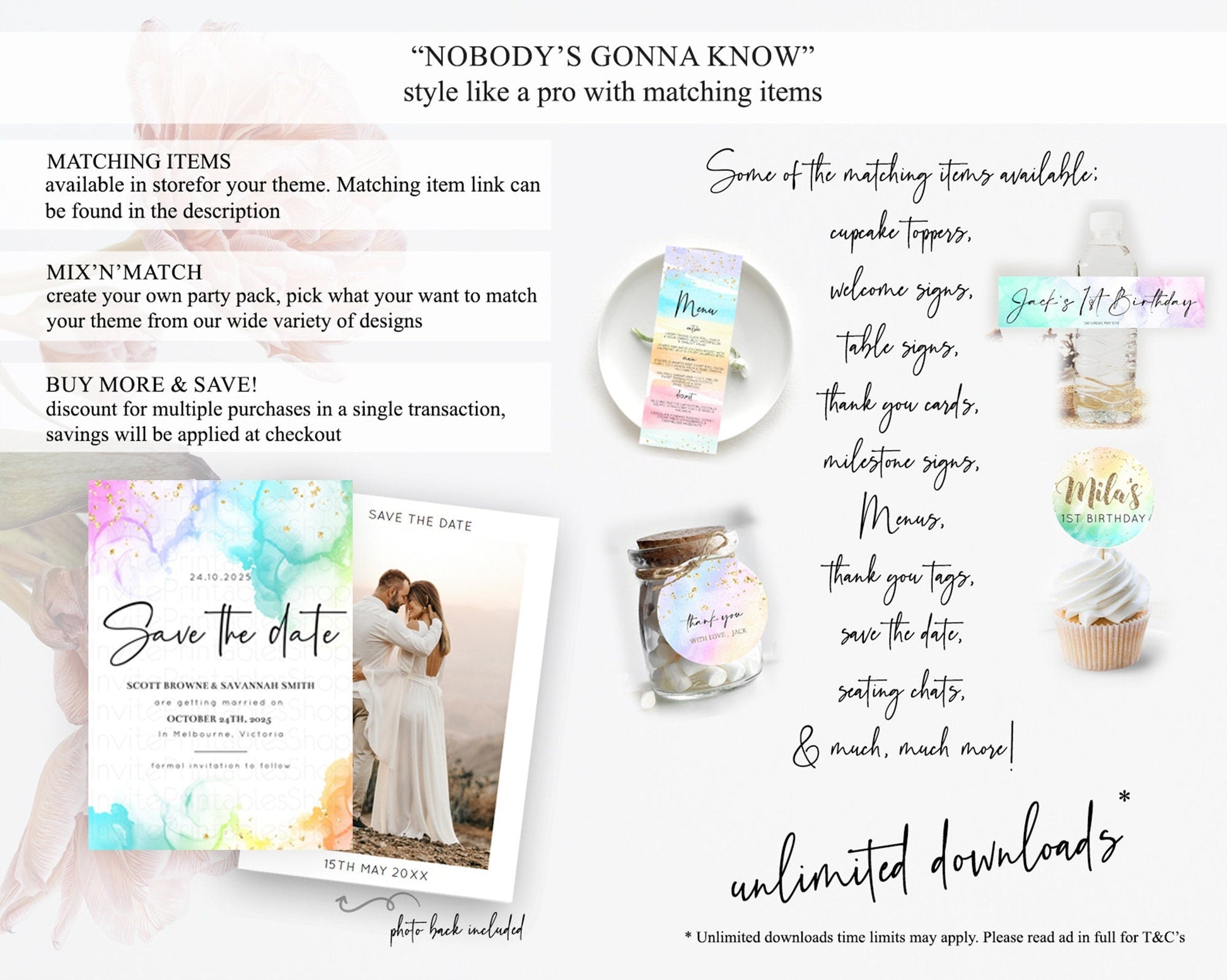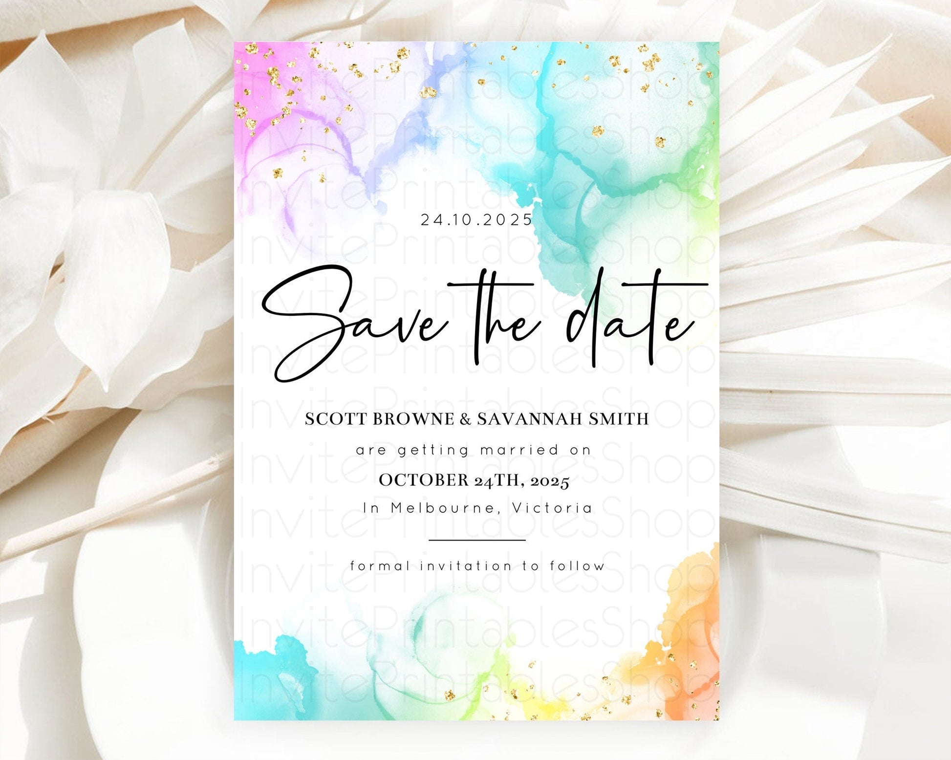 Pastel Save The Date Template Pastel Ombre Rainbow Watercolor Colorful Party For Birthday Baptism Baby Shower Wedding Bridal Shower D10181