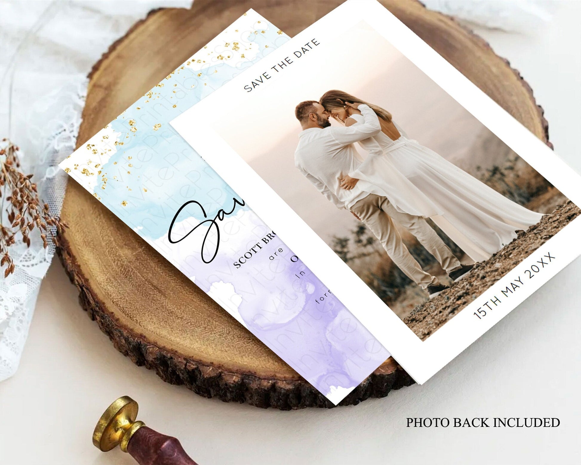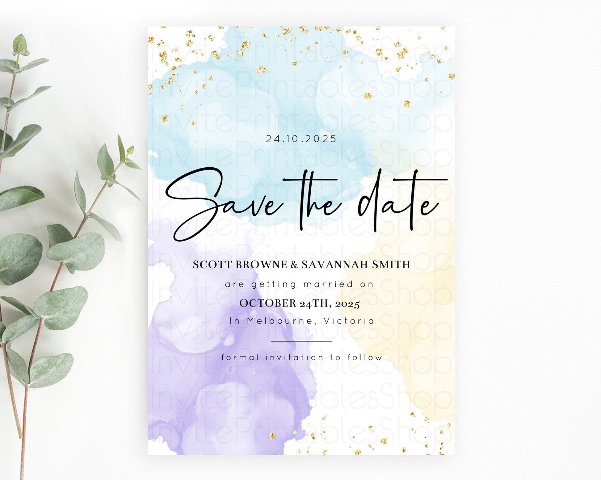 Pastel watercolor save the date card