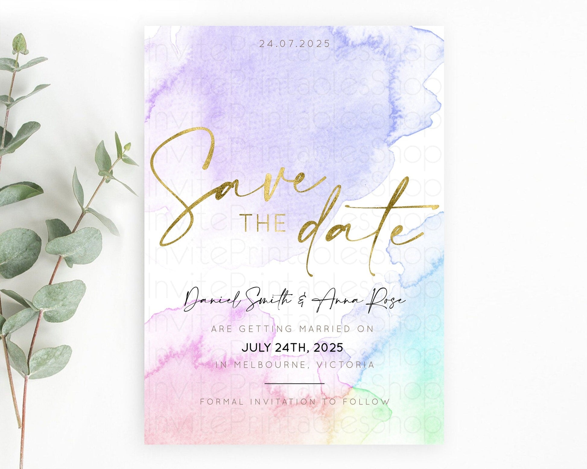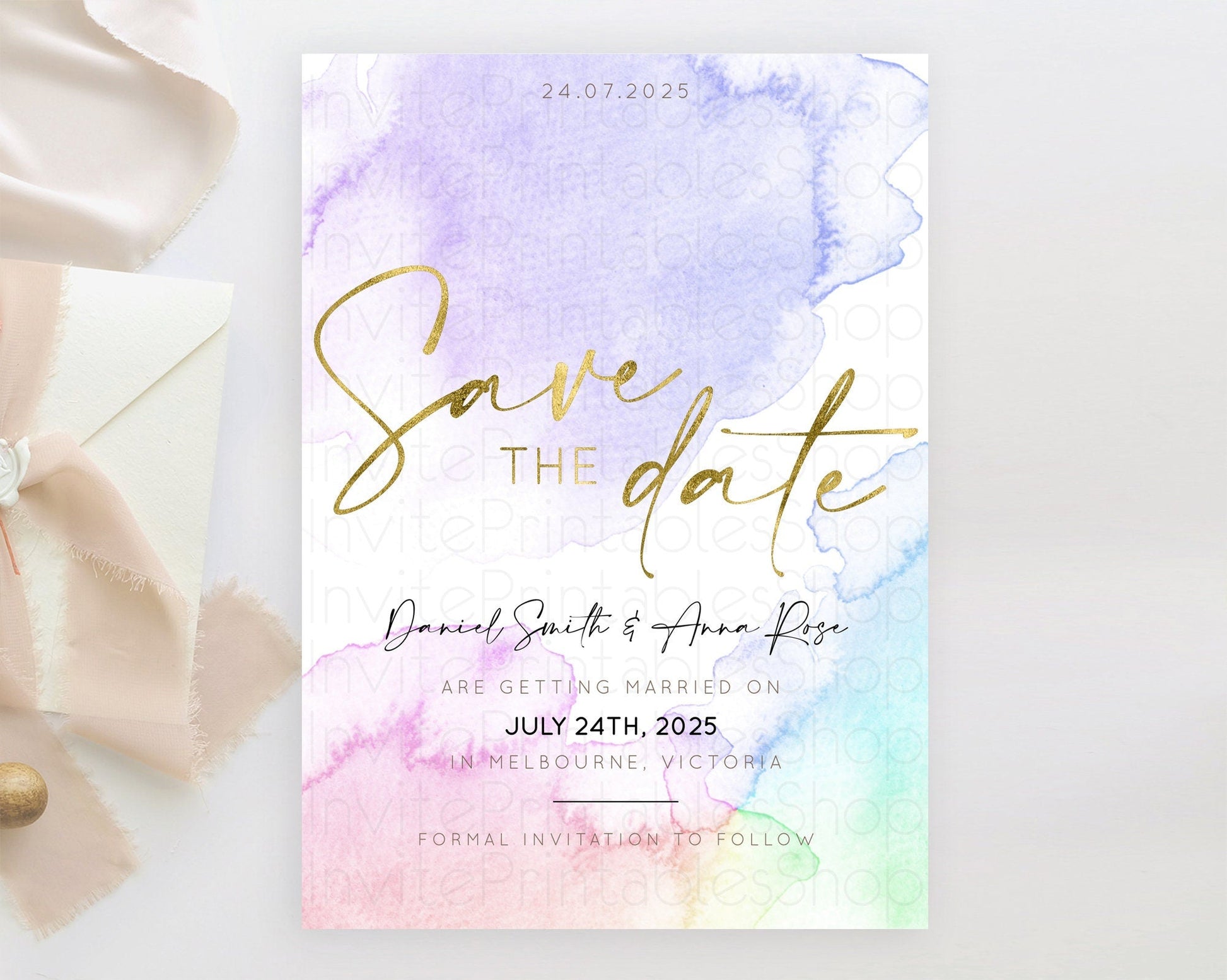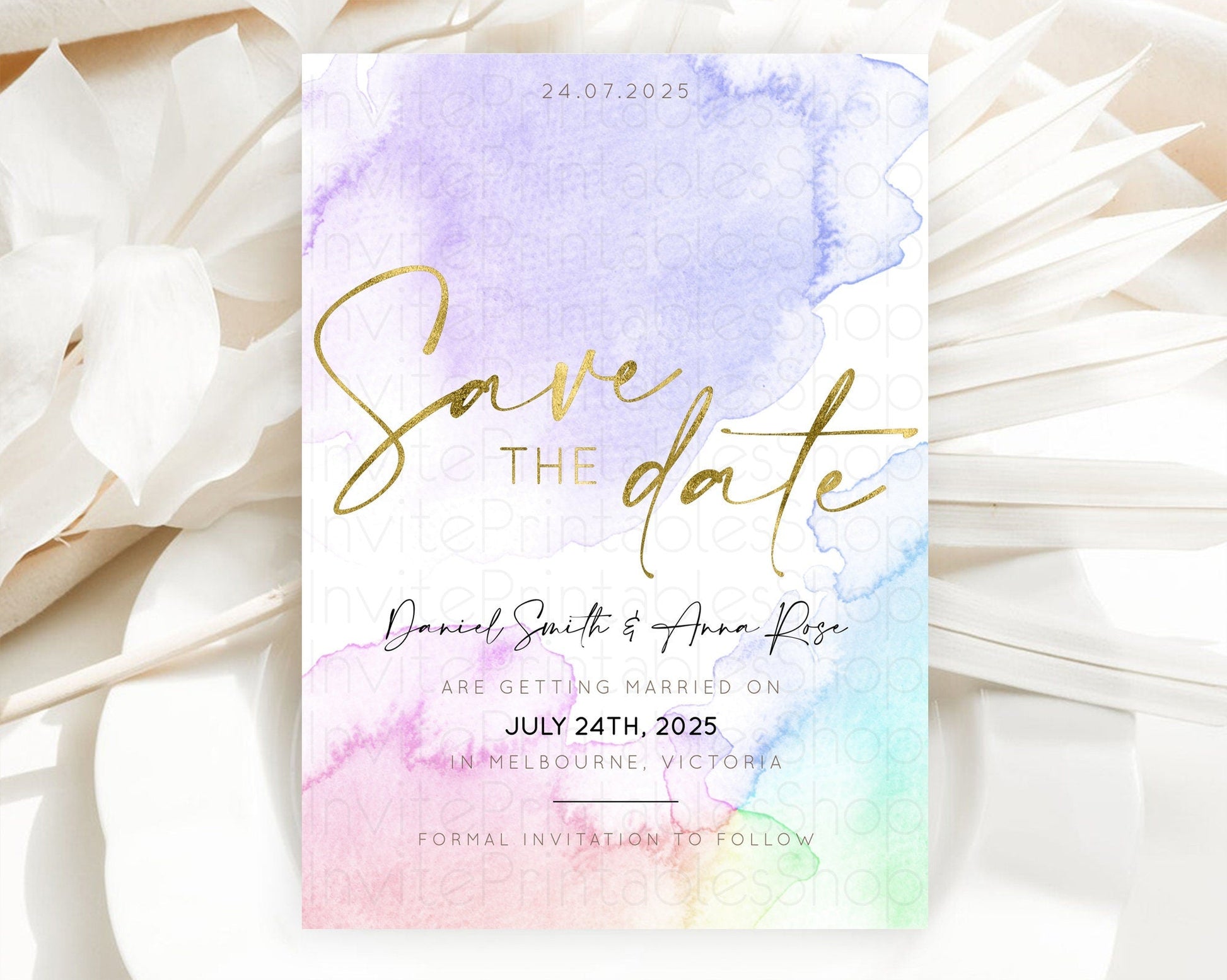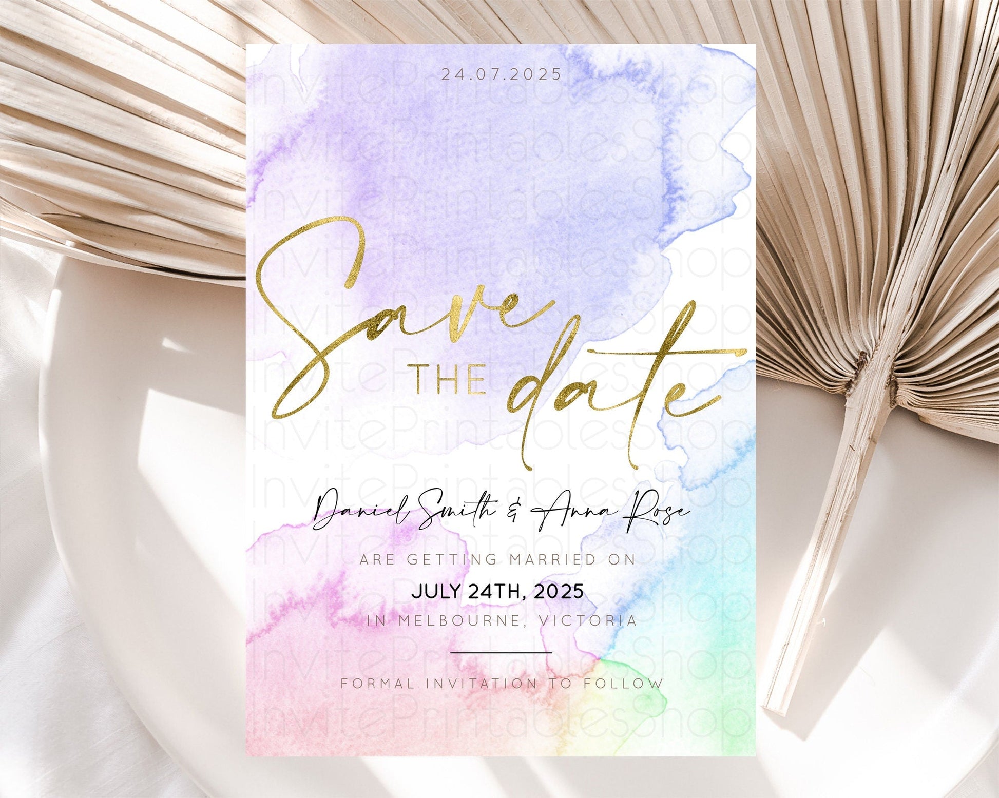 Pastel Save The Date Template Pastel Ombre Rainbow Watercolor Colorful Party For Birthday Baptism Baby Shower Wedding Bridal Shower D10215