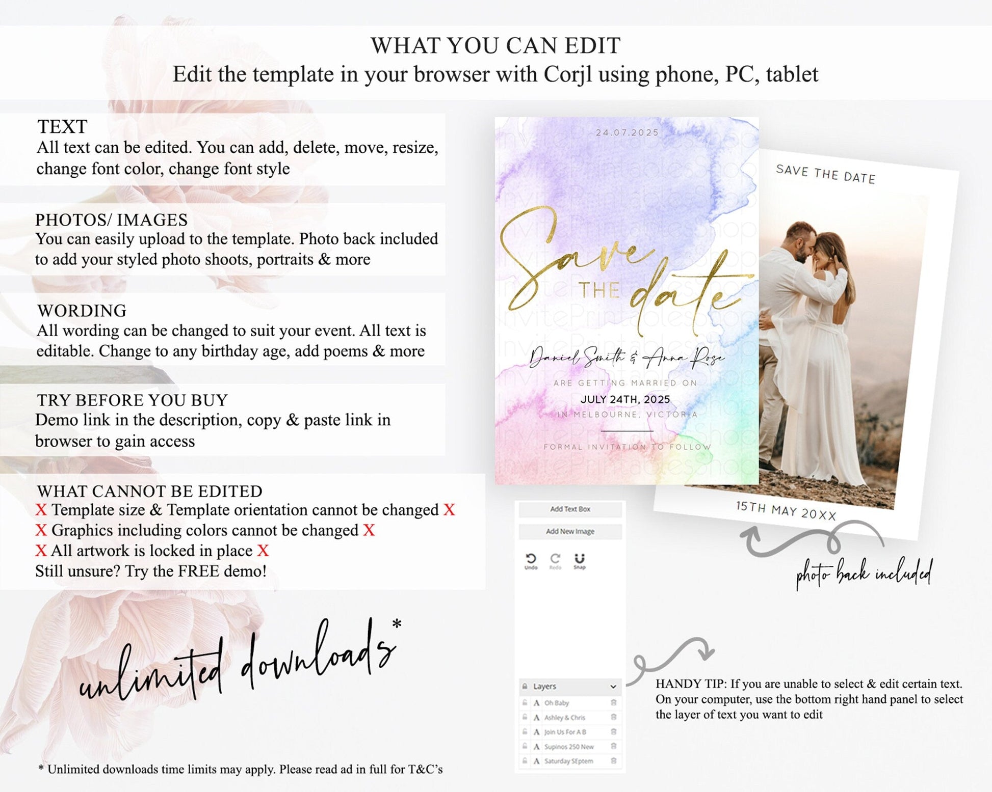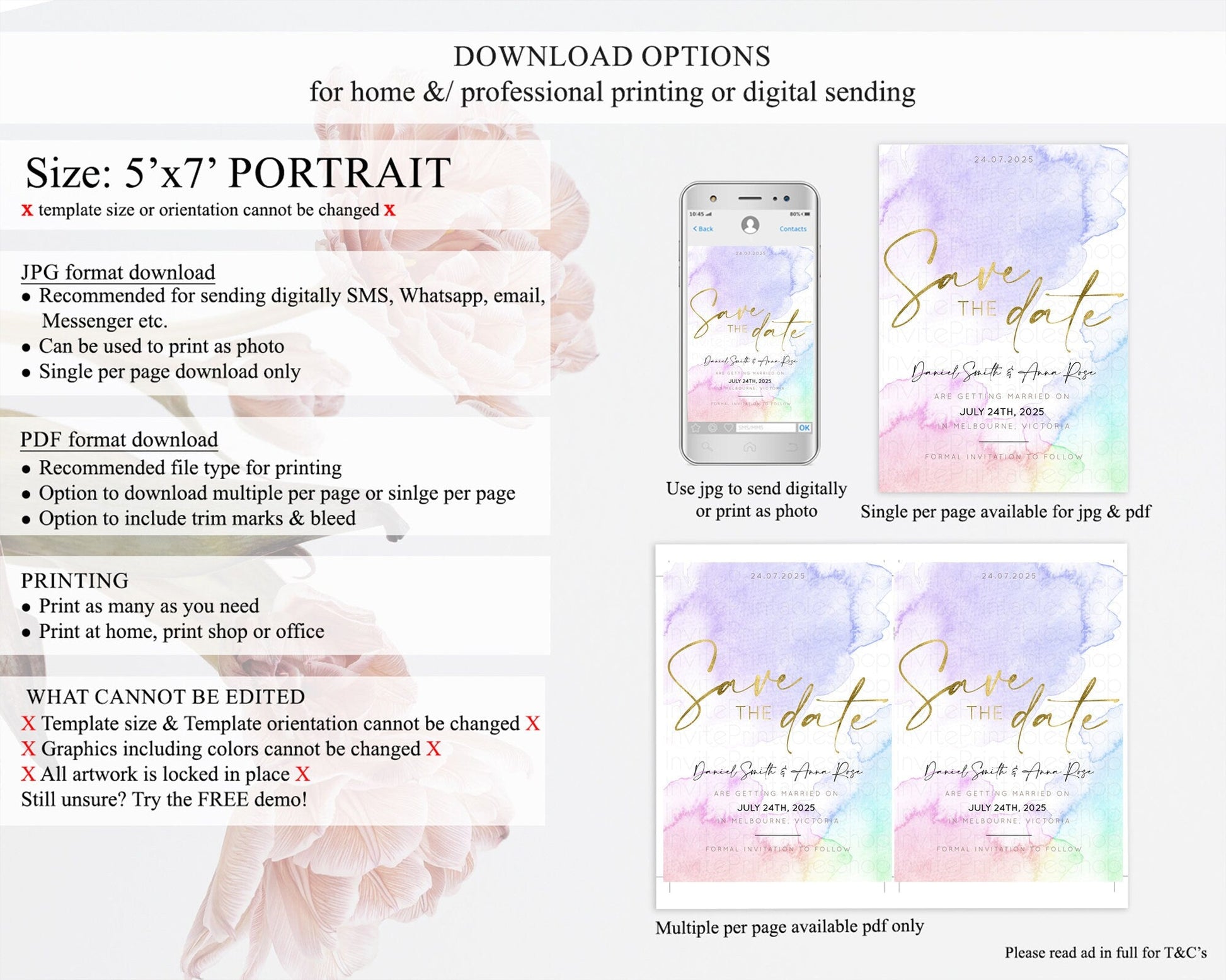 • Template size & orientation cannot be changed. Please use the demo link to confirm this product suits your needs.