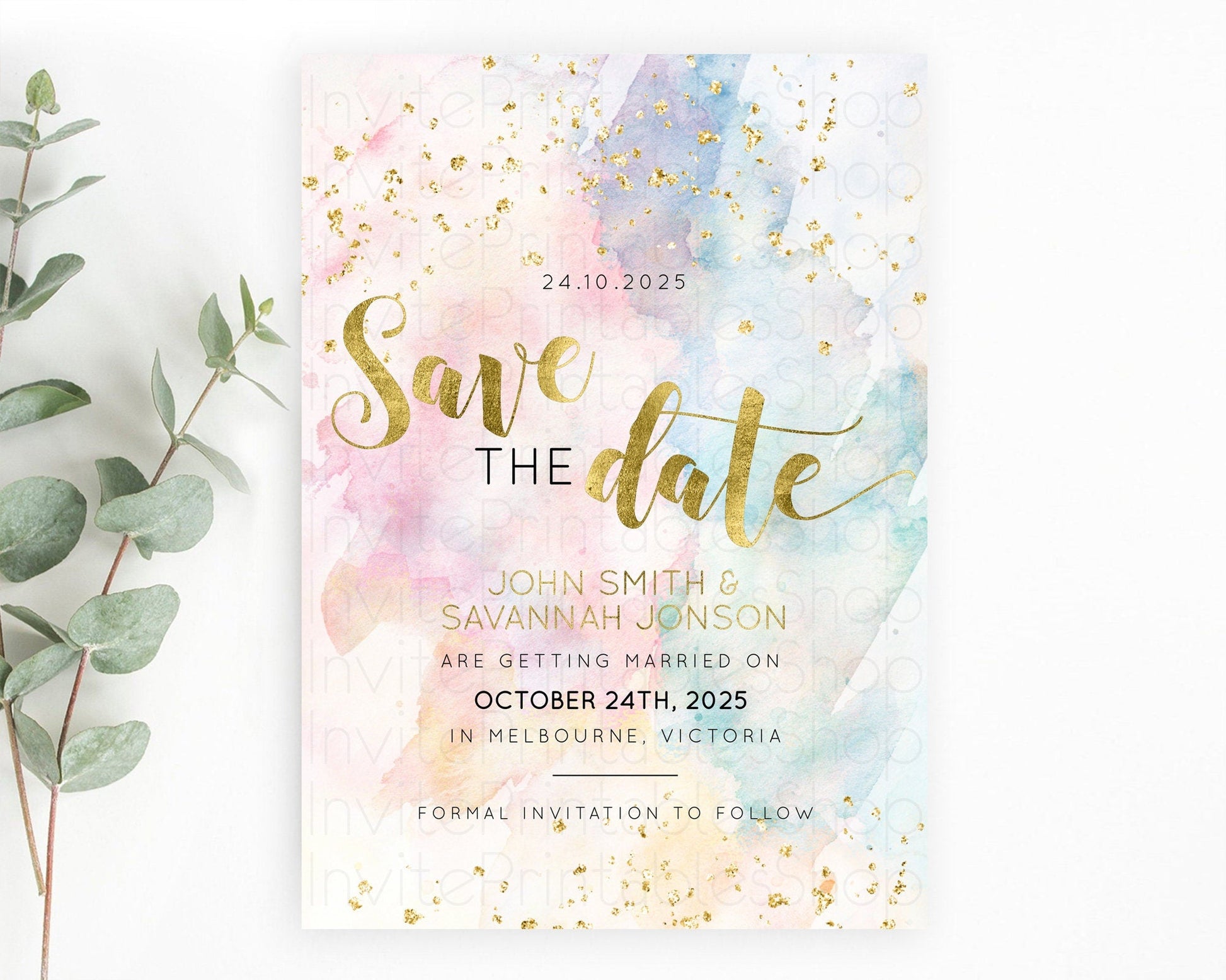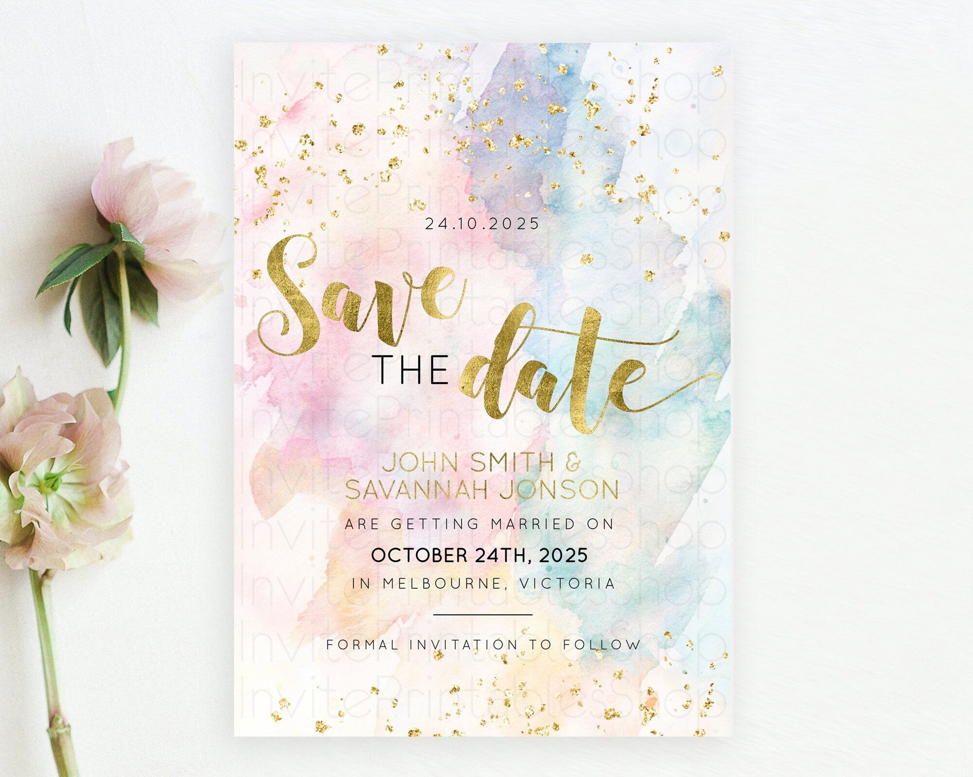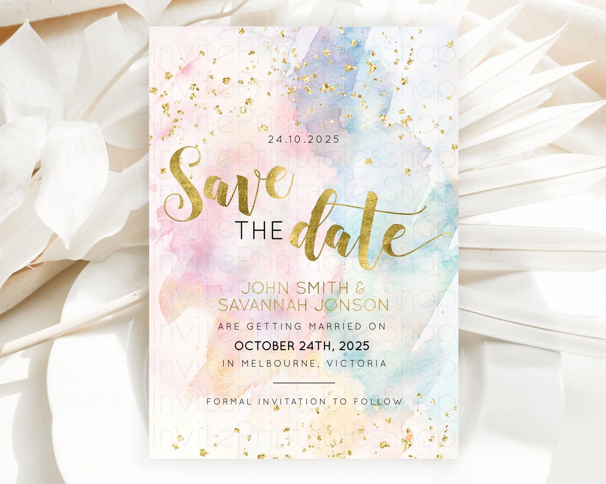 Pastel watercolor save the date card
