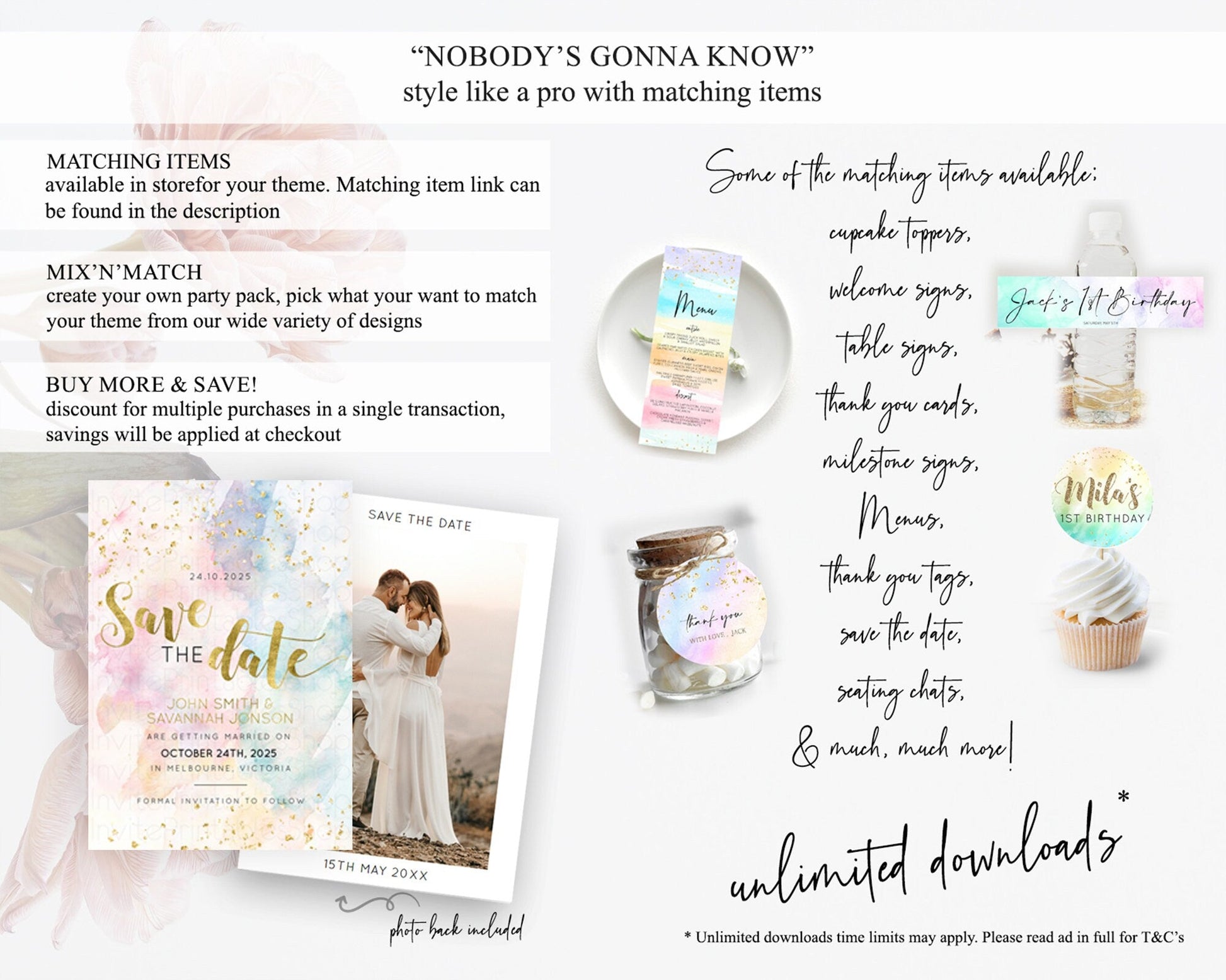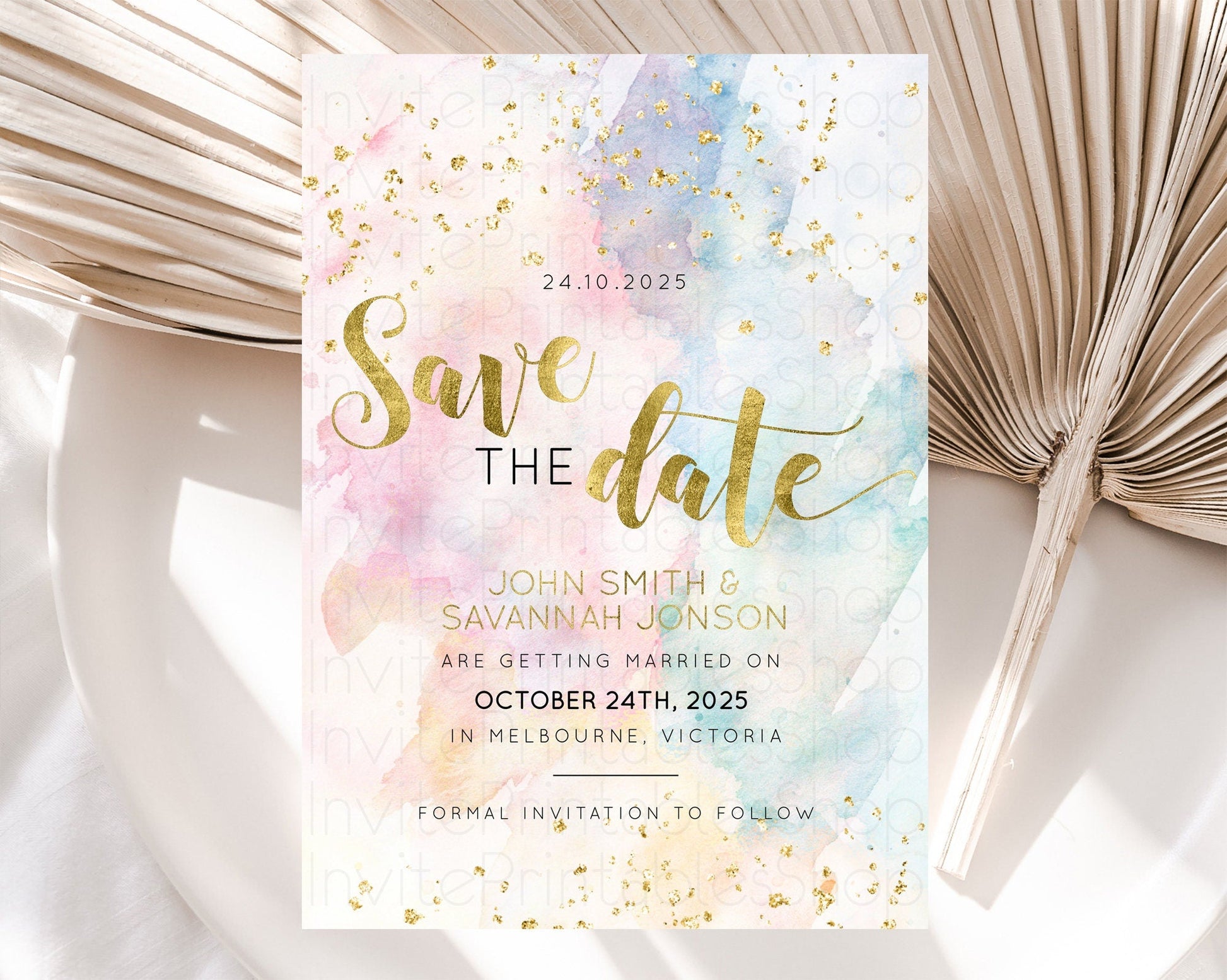 Pastel Save The Date Template Pastel Ombre Rainbow Watercolor Colorful Party For Birthday Baptism Baby Shower Wedding Bridal Shower D10265