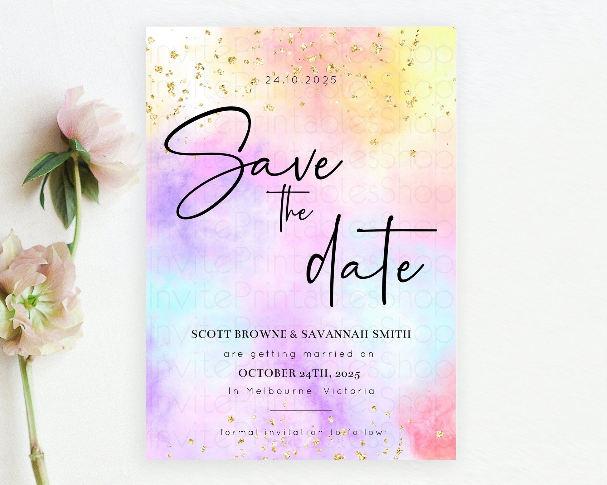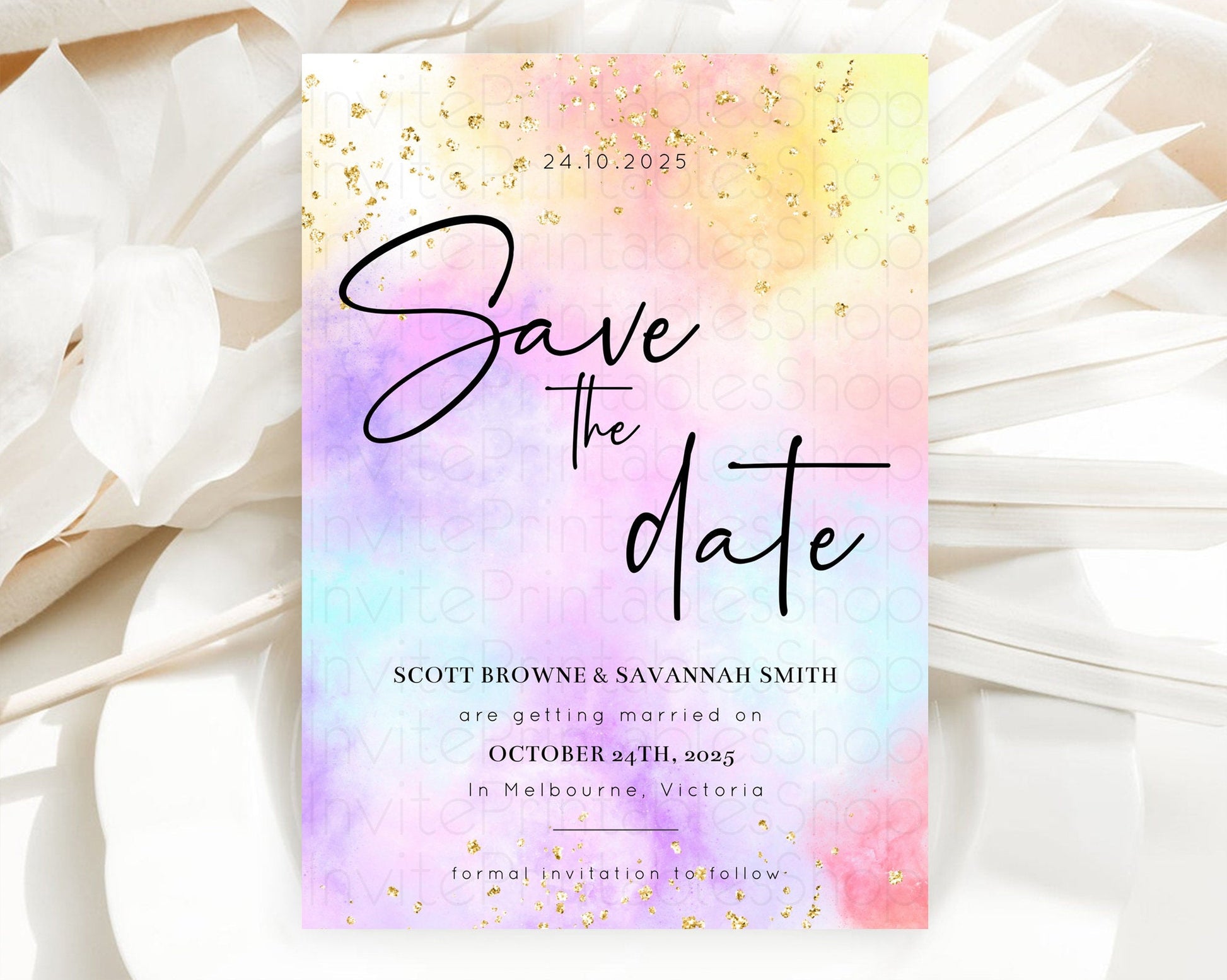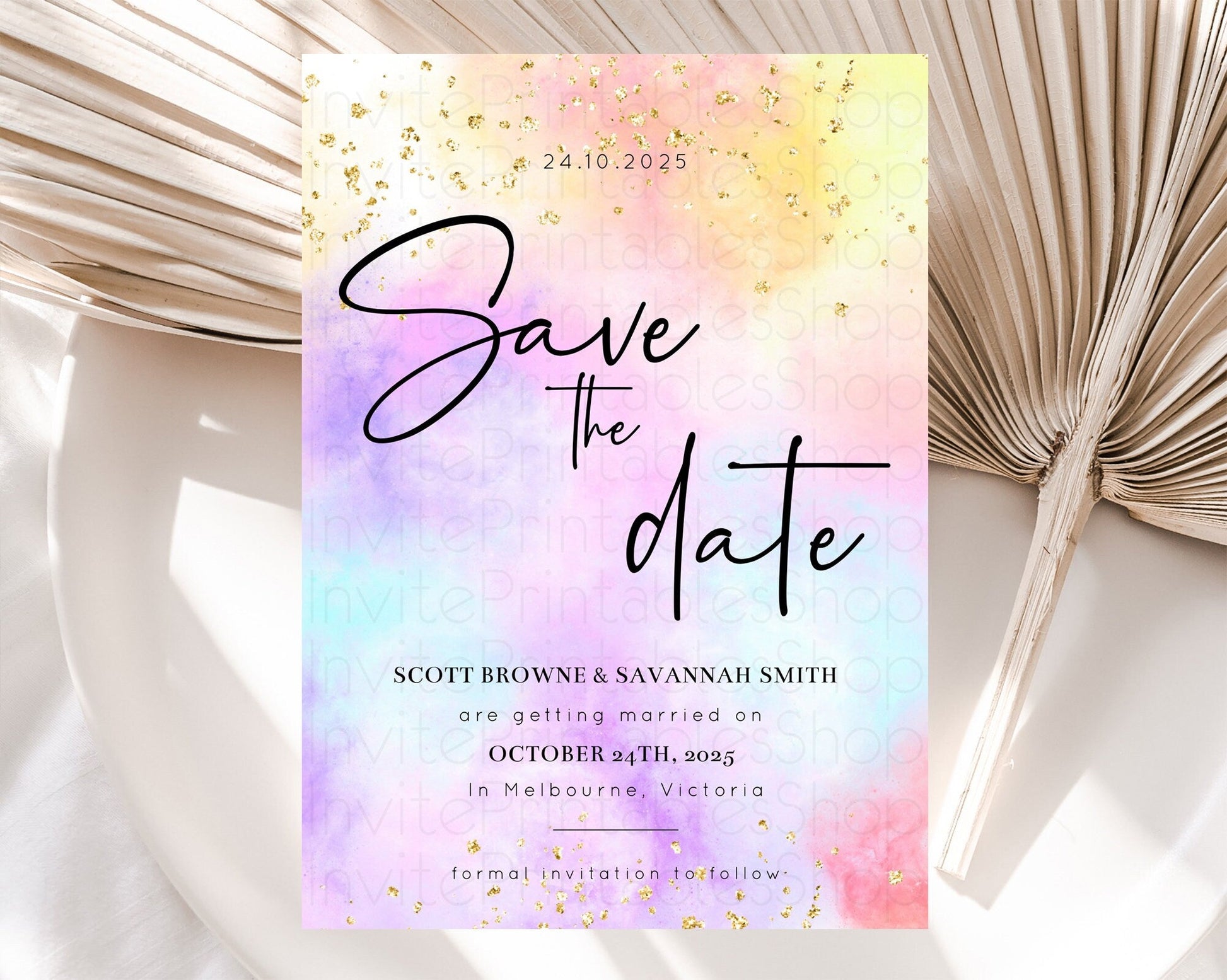 Pastel Save The Date Template Pastel Ombre Rainbow Watercolor Colorful Party For Birthday Baptism Baby Shower Wedding Bridal Shower D10438