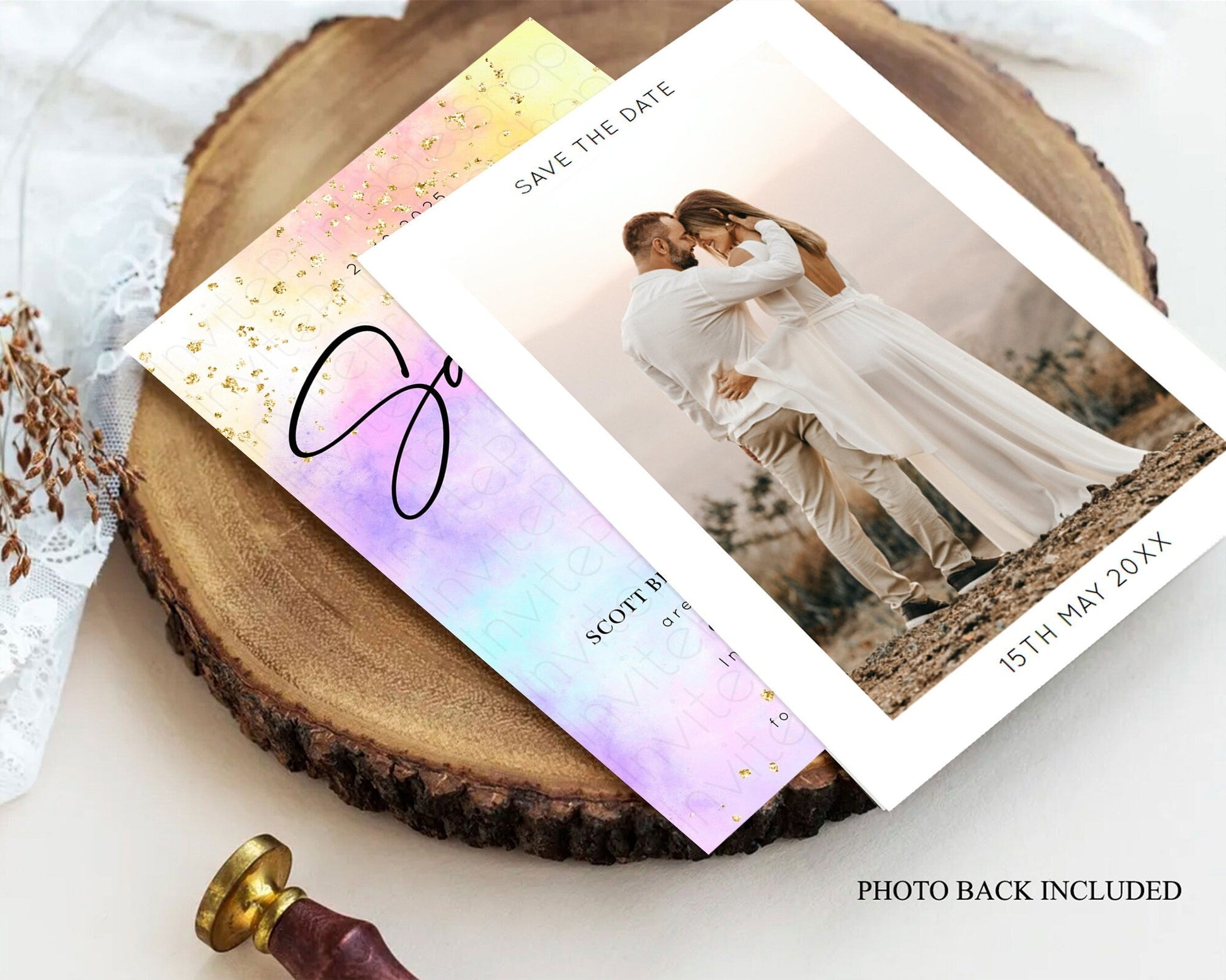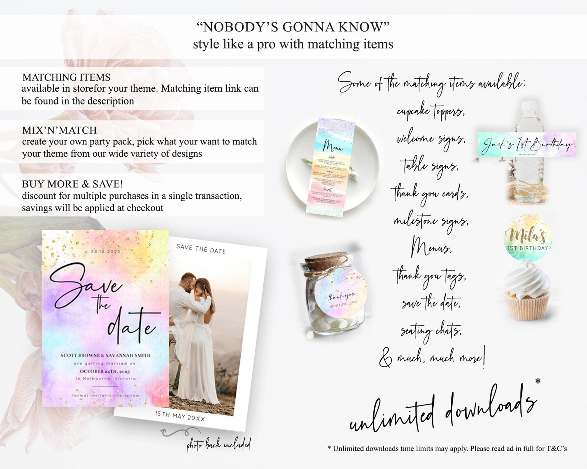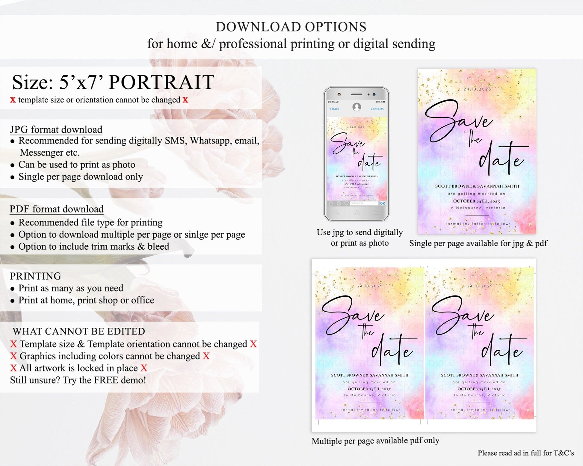 Pastel Save The Date Template Pastel Ombre Rainbow Watercolor Colorful Party For Birthday Baptism Baby Shower Wedding Bridal Shower D10438