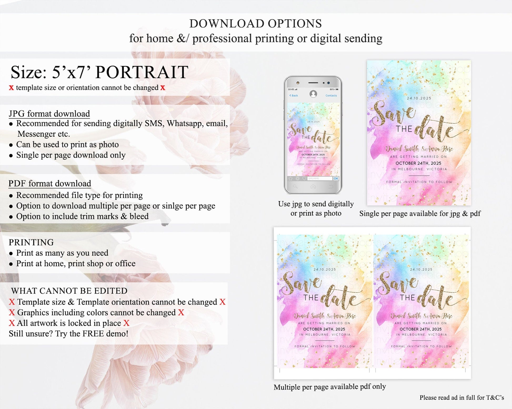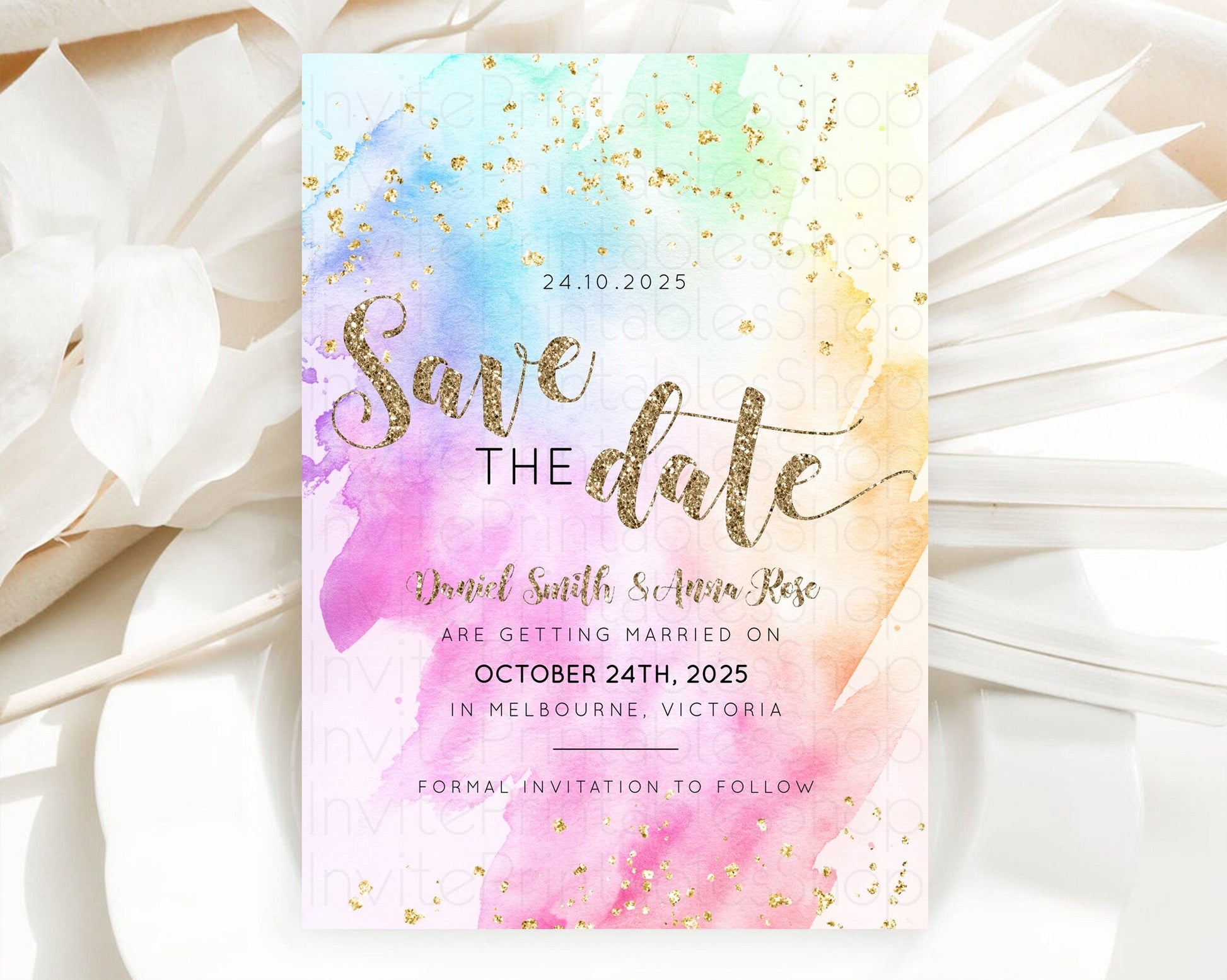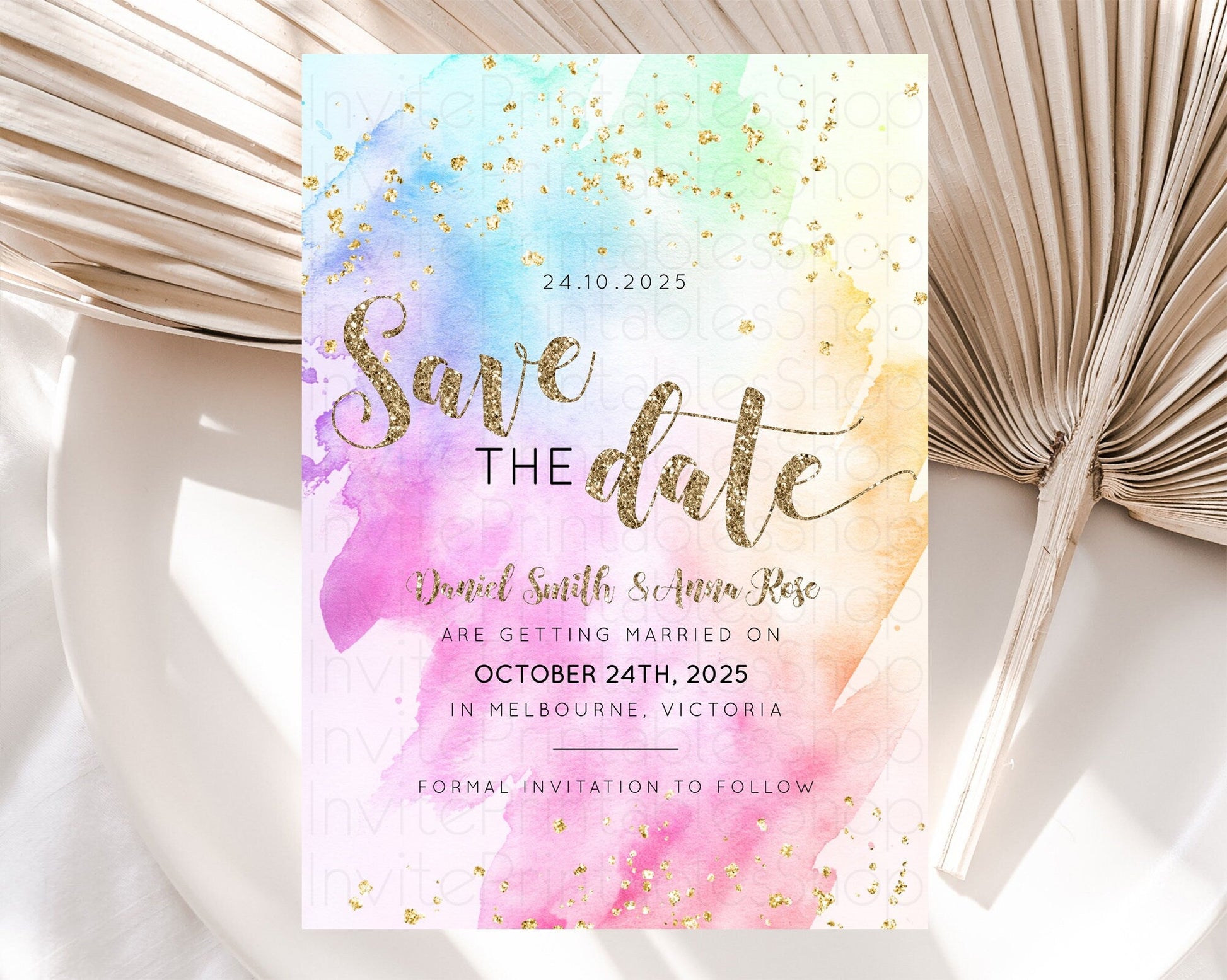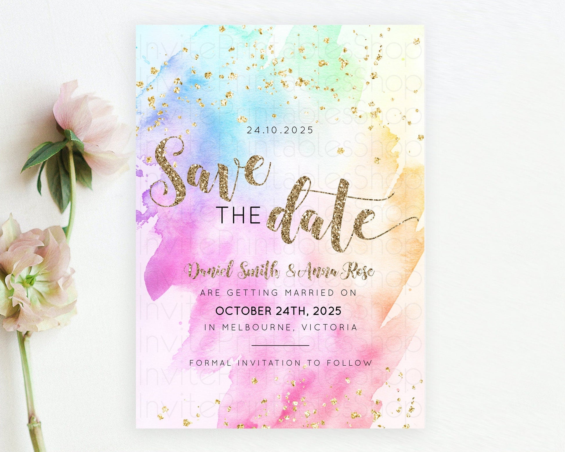 Pastel Save The Date Template Pastel Ombre Rainbow Watercolor Colorful Party For Birthday Baptism Baby Shower Wedding Bridal Shower D10450