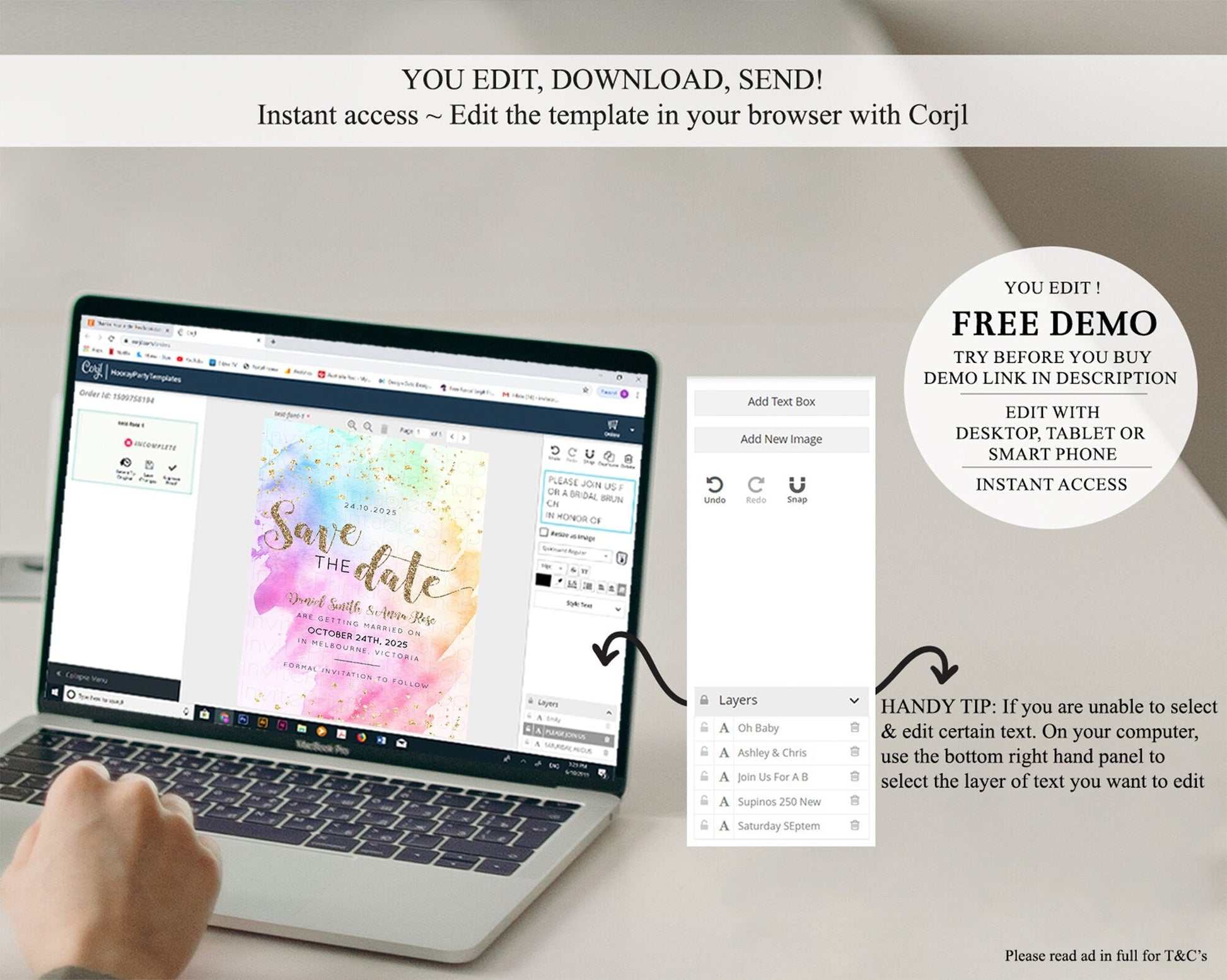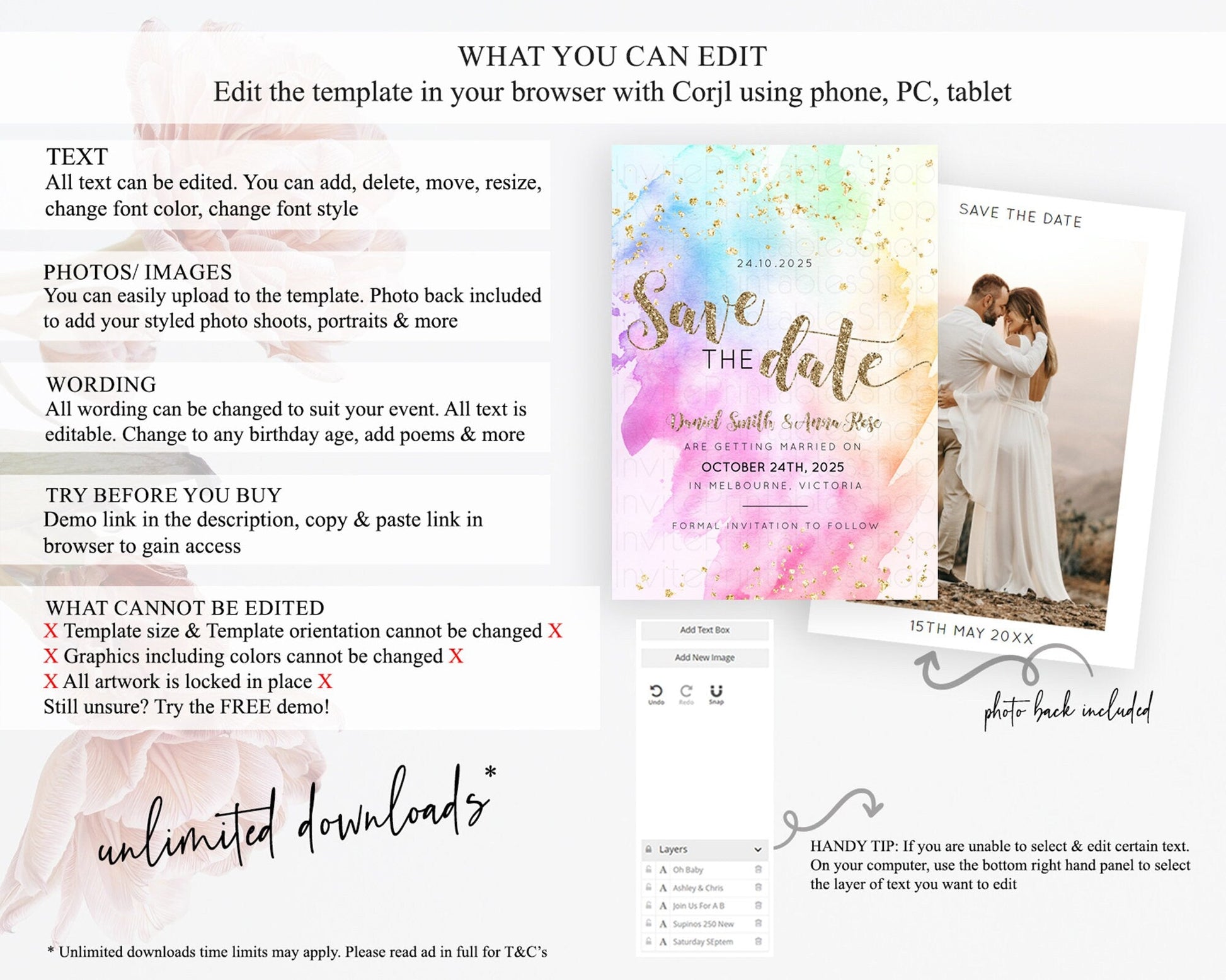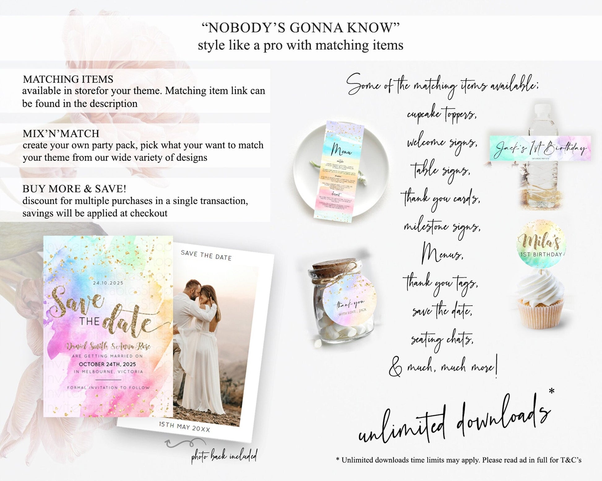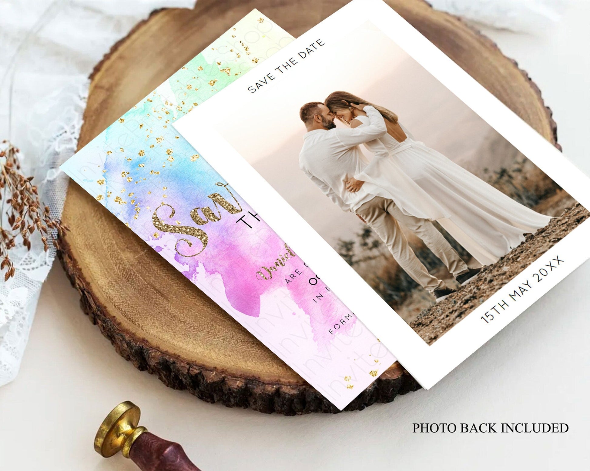 Pastel Save The Date Template Pastel Ombre Rainbow Watercolor Colorful Party For Birthday Baptism Baby Shower Wedding Bridal Shower D10450