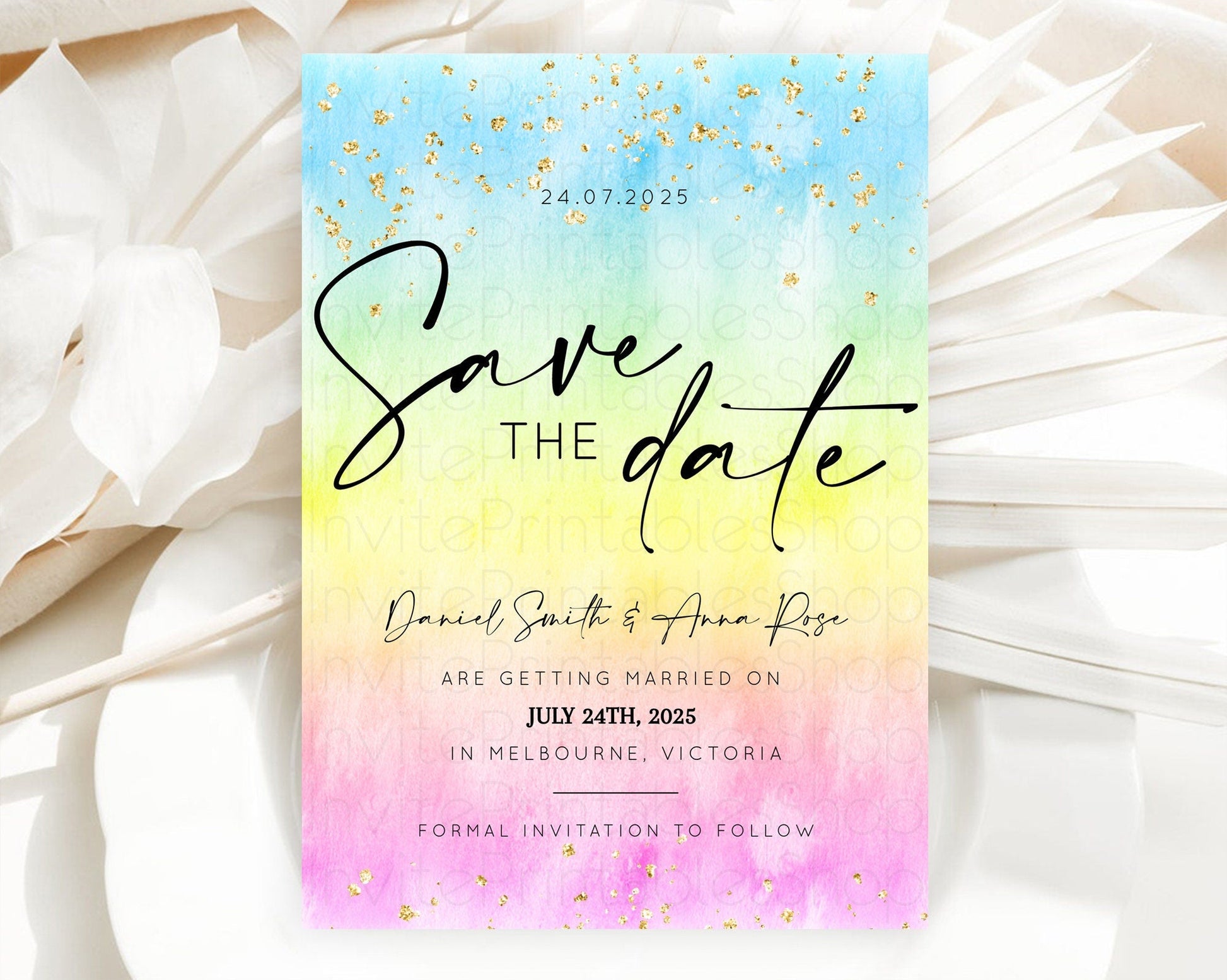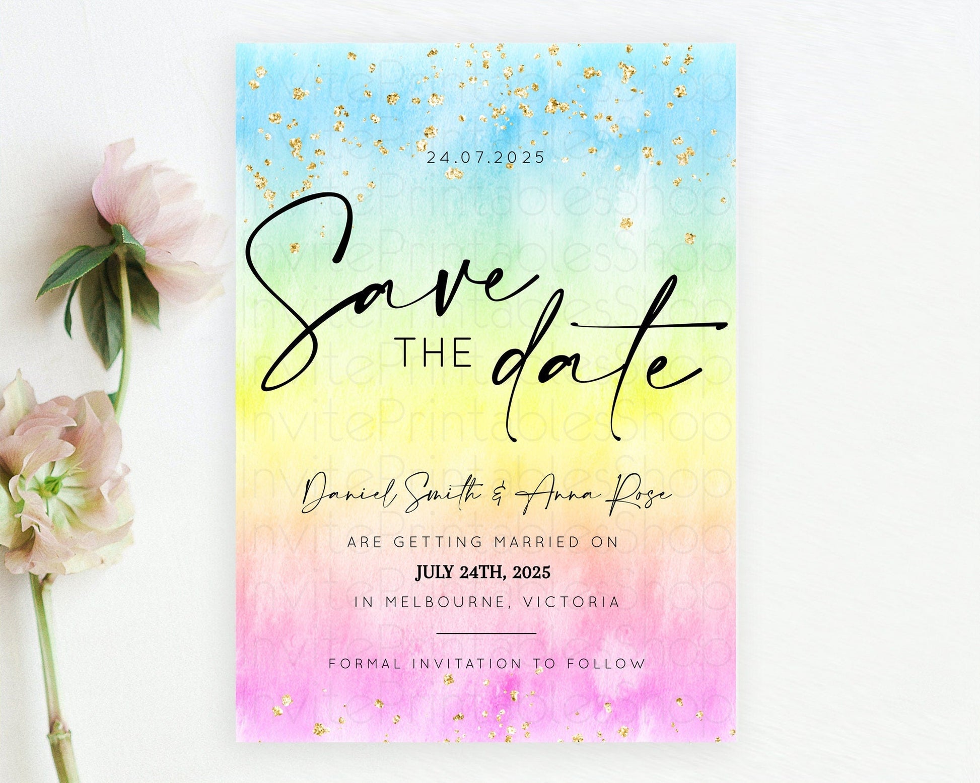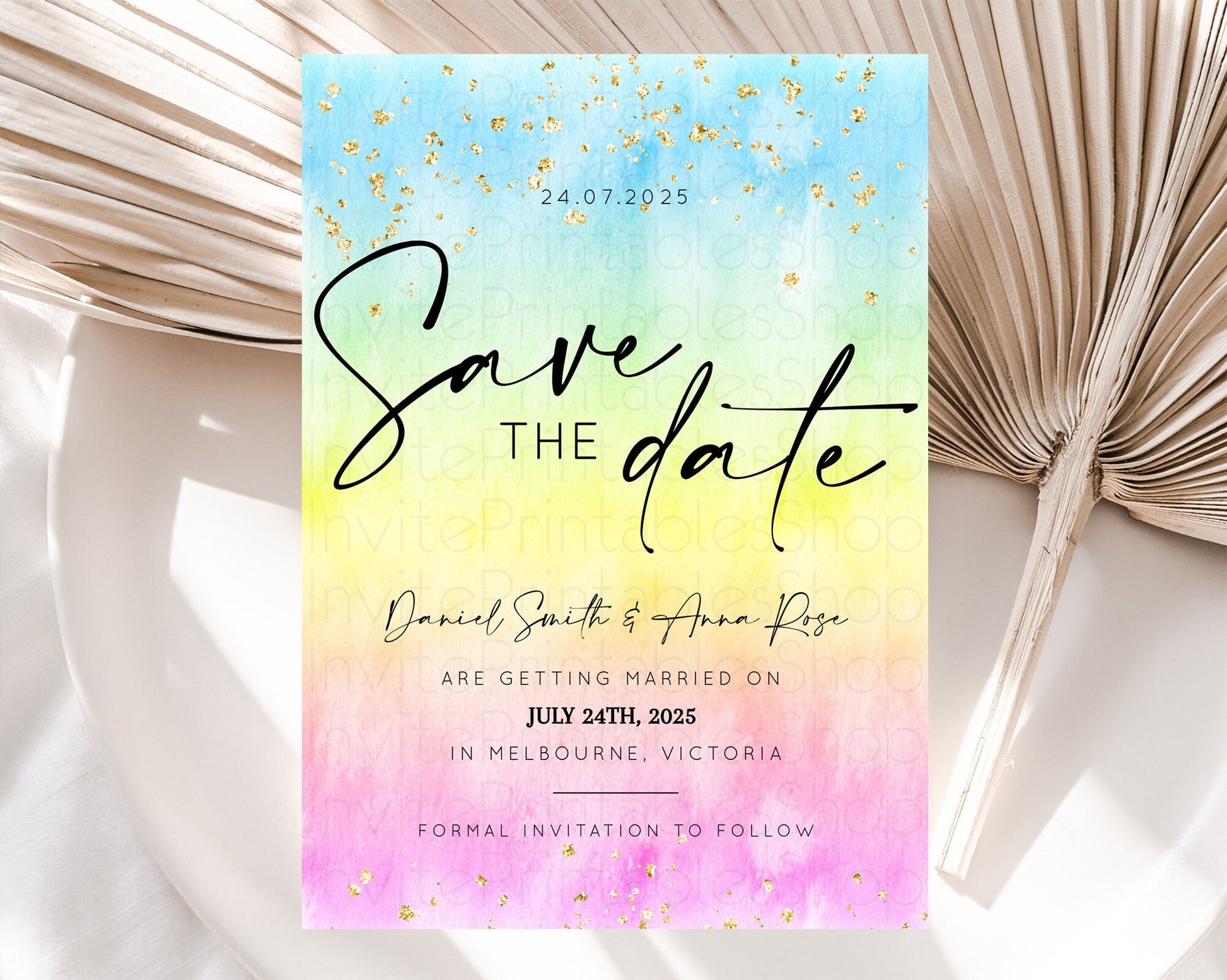 Pastel Save The Date Template Pastel Ombre Rainbow Watercolor Colorful Party For Birthday Baptism Baby Shower Wedding Bridal Shower D10483