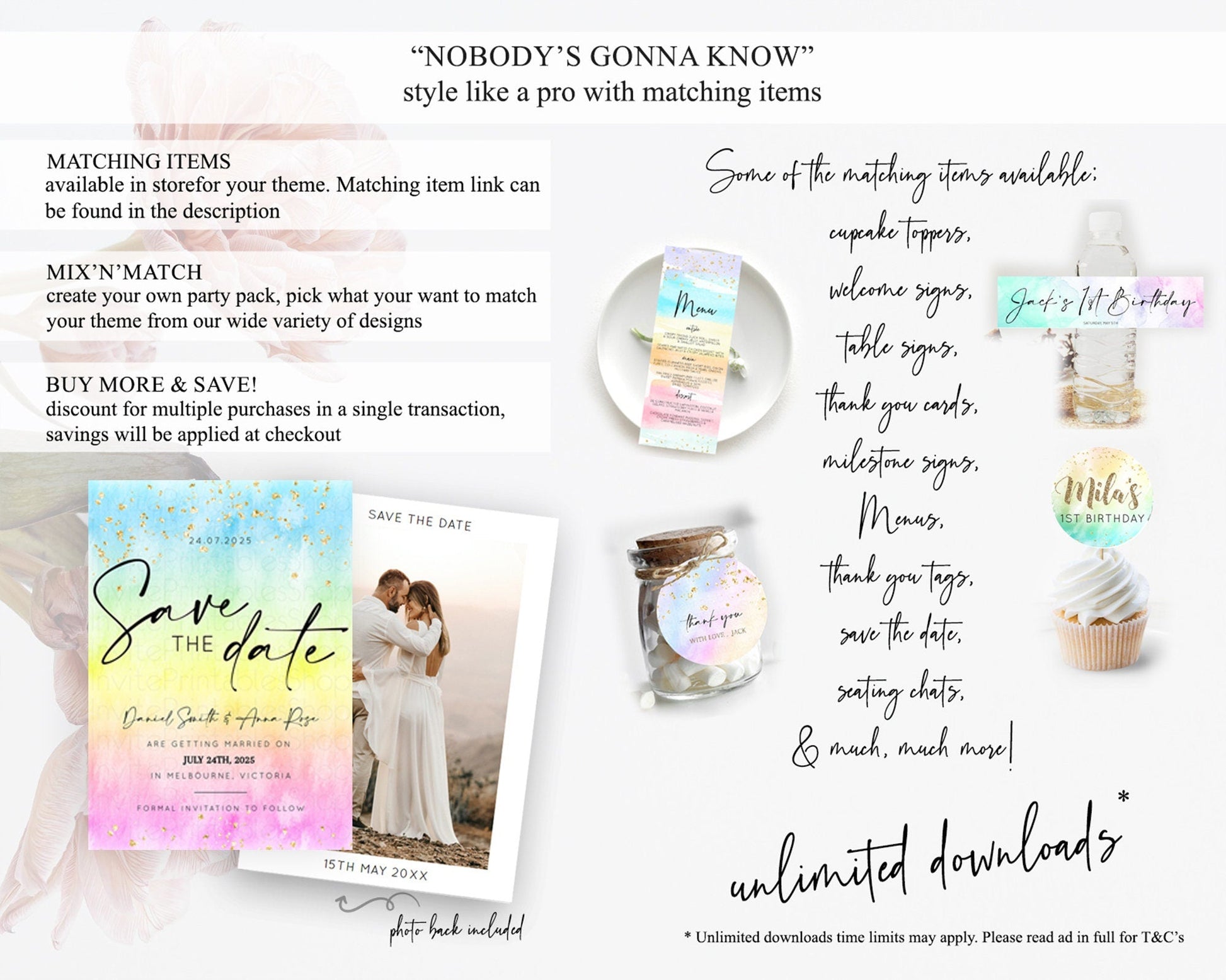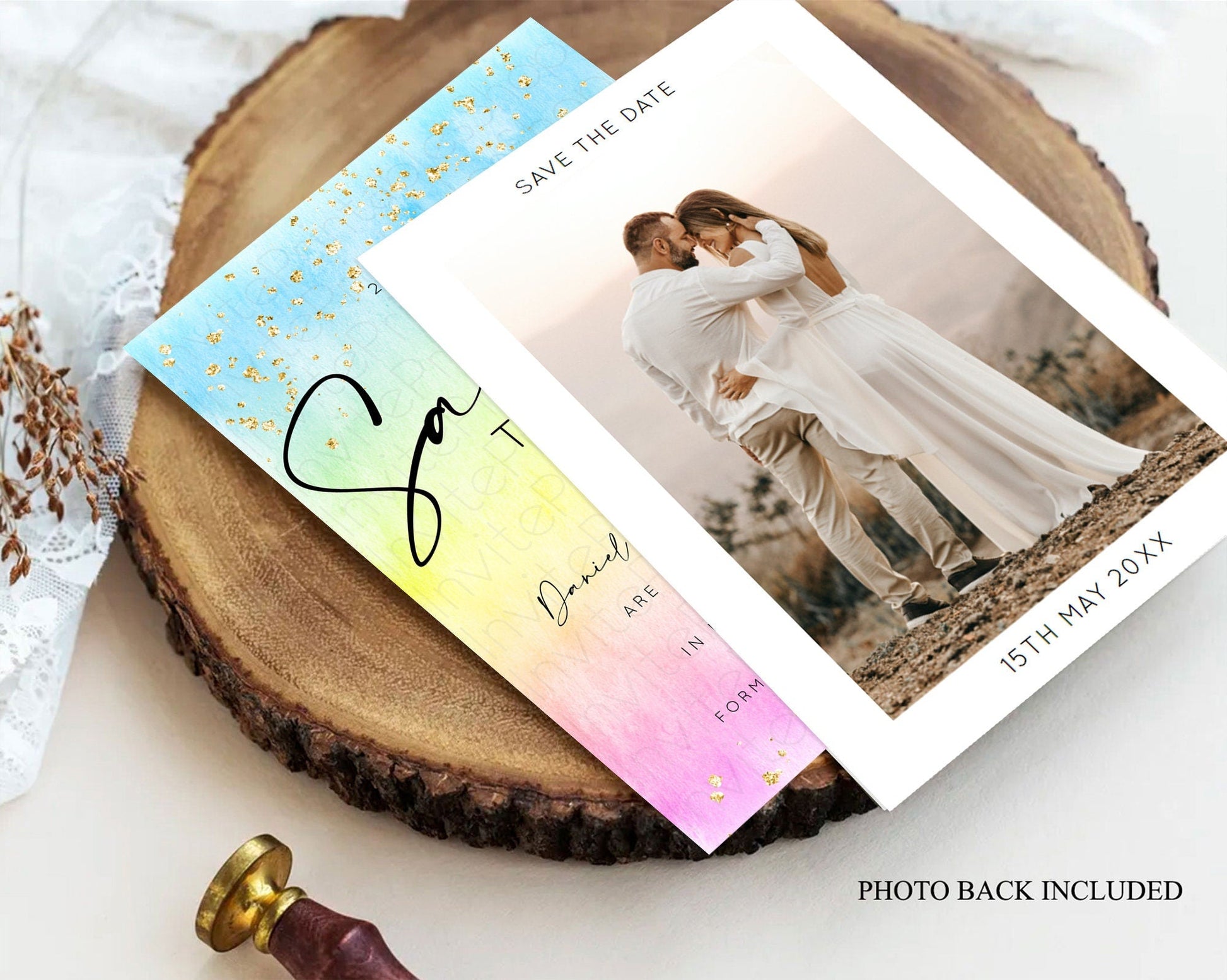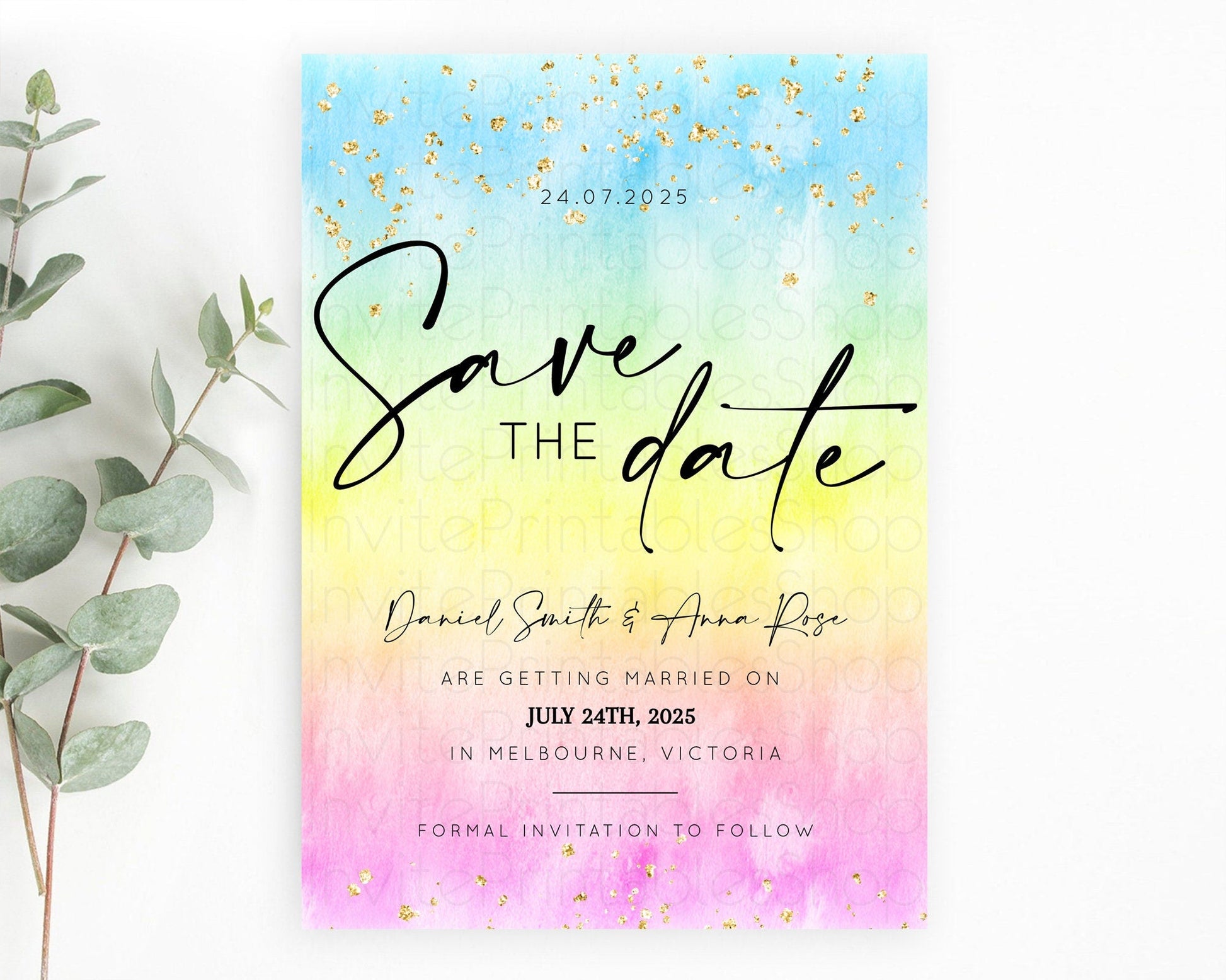 Pastel Save The Date Template Pastel Ombre Rainbow Watercolor Colorful Party For Birthday Baptism Baby Shower Wedding Bridal Shower D10483
