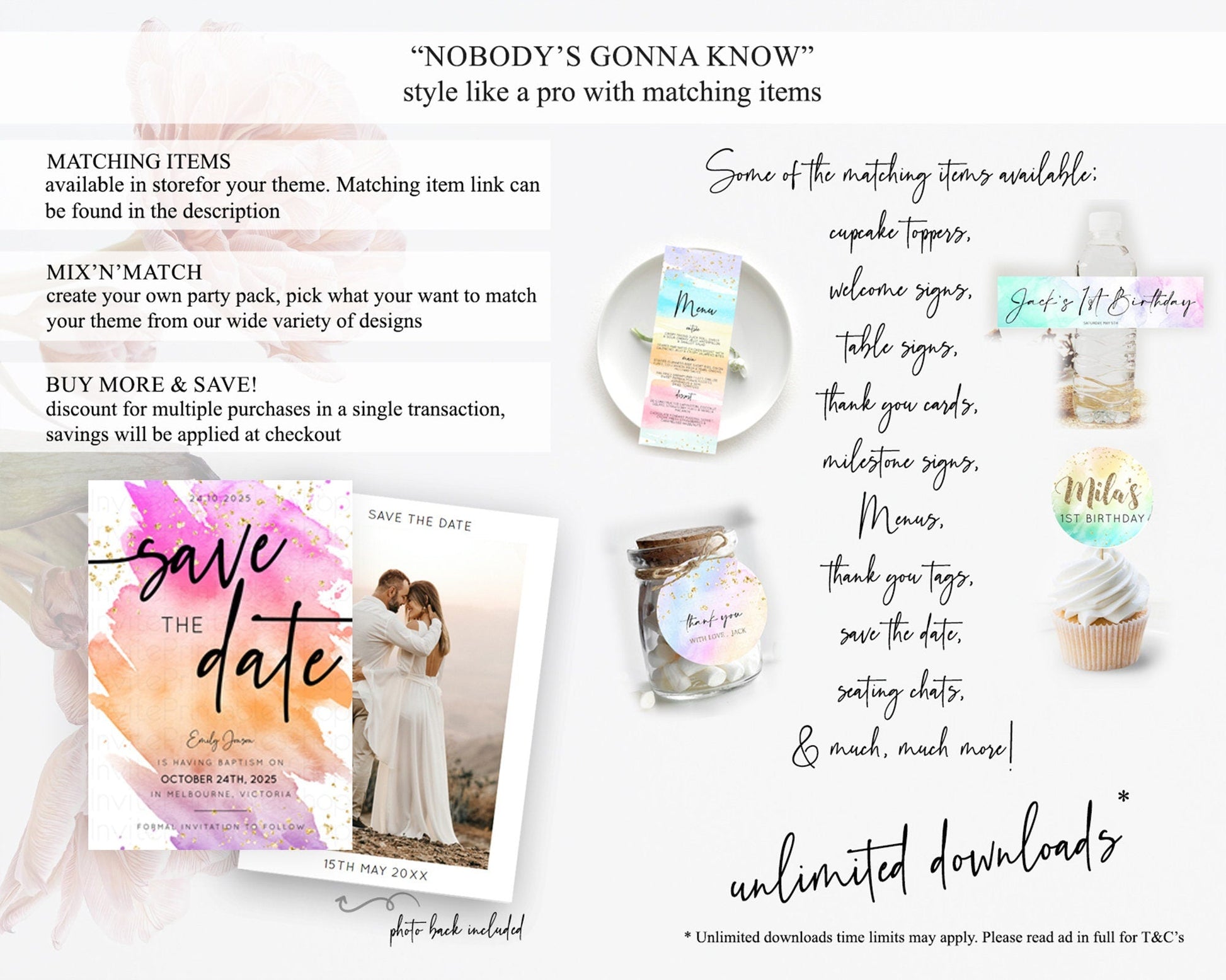 Pastel Save The Date Template Pastel Ombre Rainbow Watercolor Colorful Party For Birthday Baptism Baby Shower Wedding Bridal Shower D10488