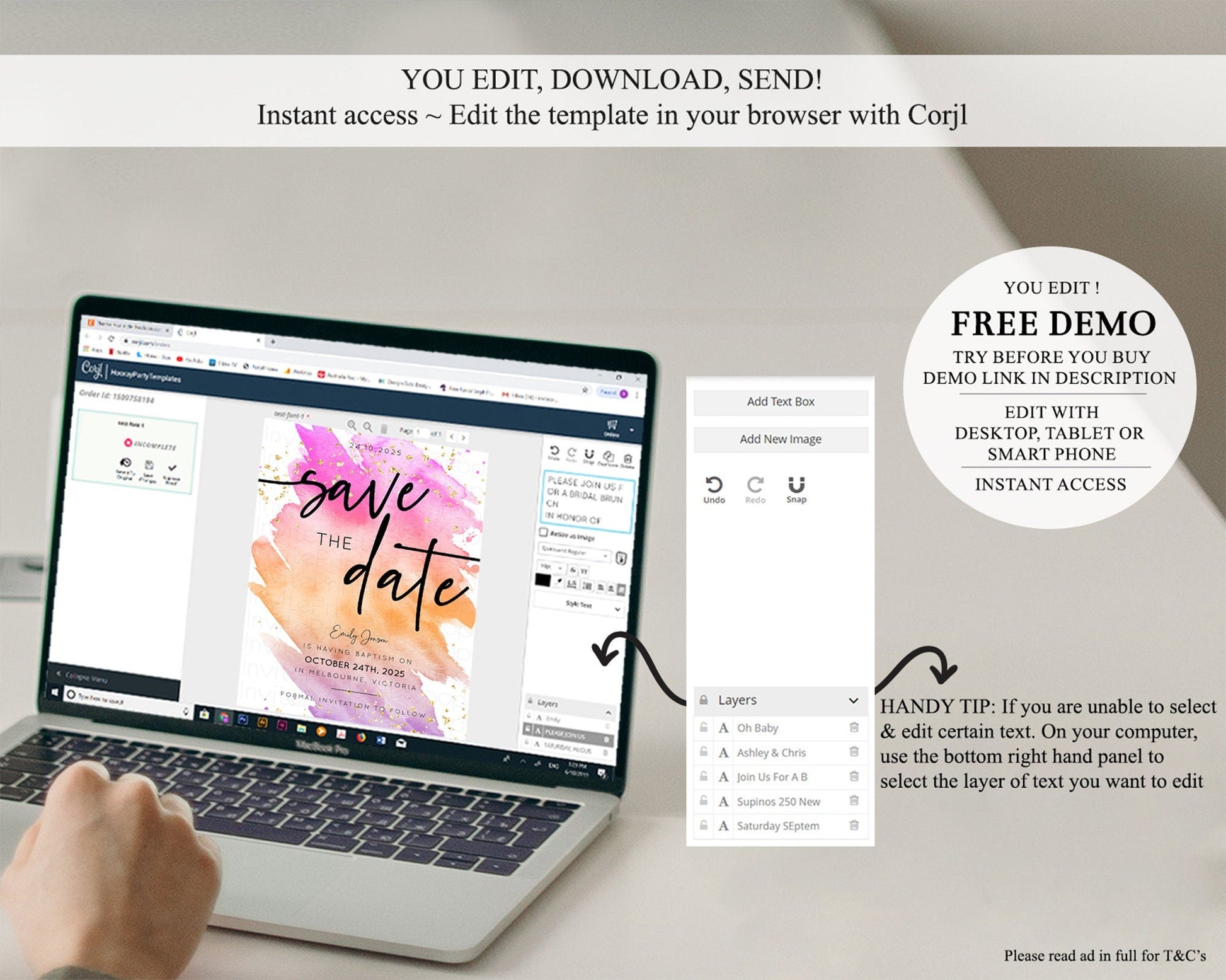 • After purchase, Corjl emails your editing link. Allow up to 15 minutes for delivery.