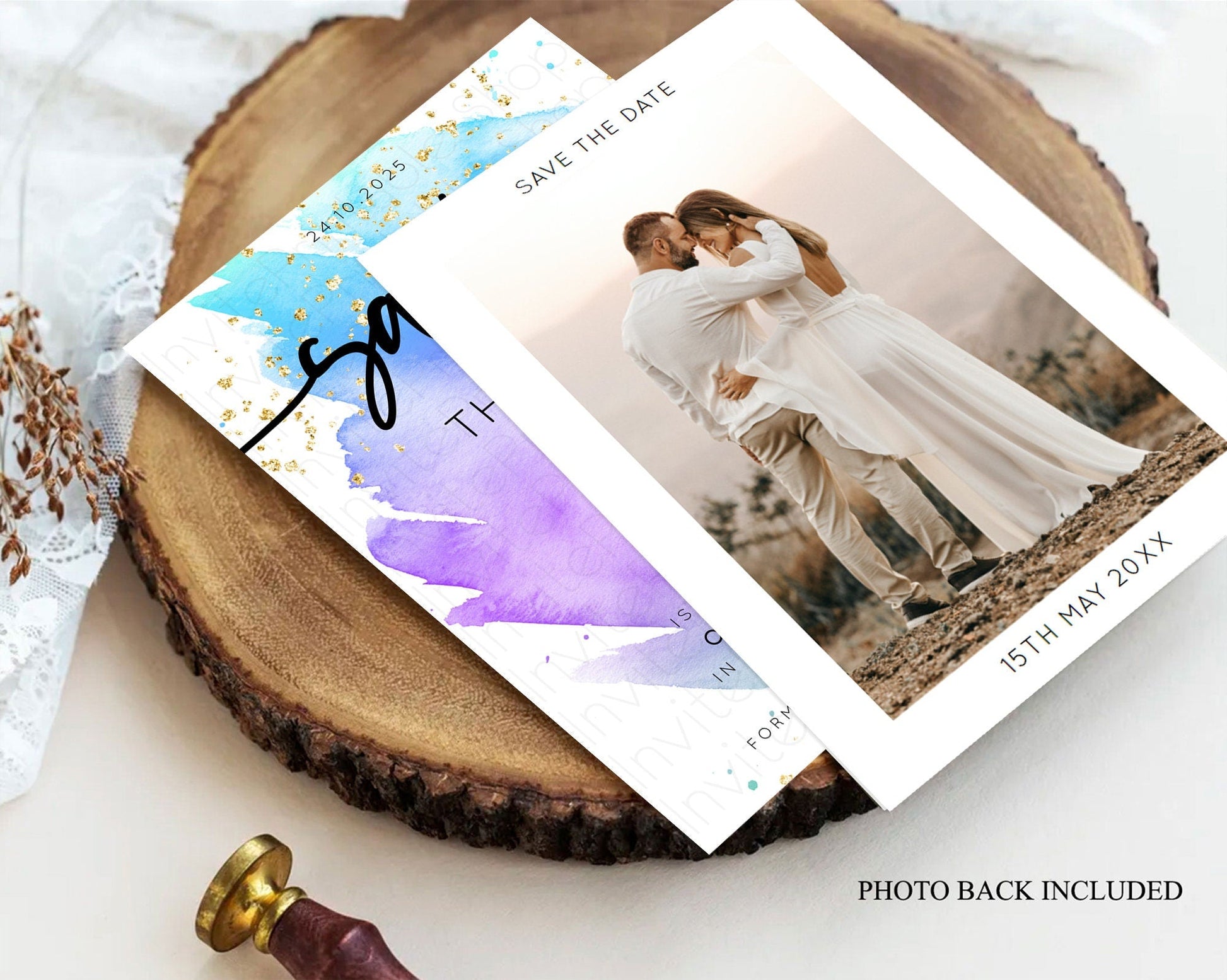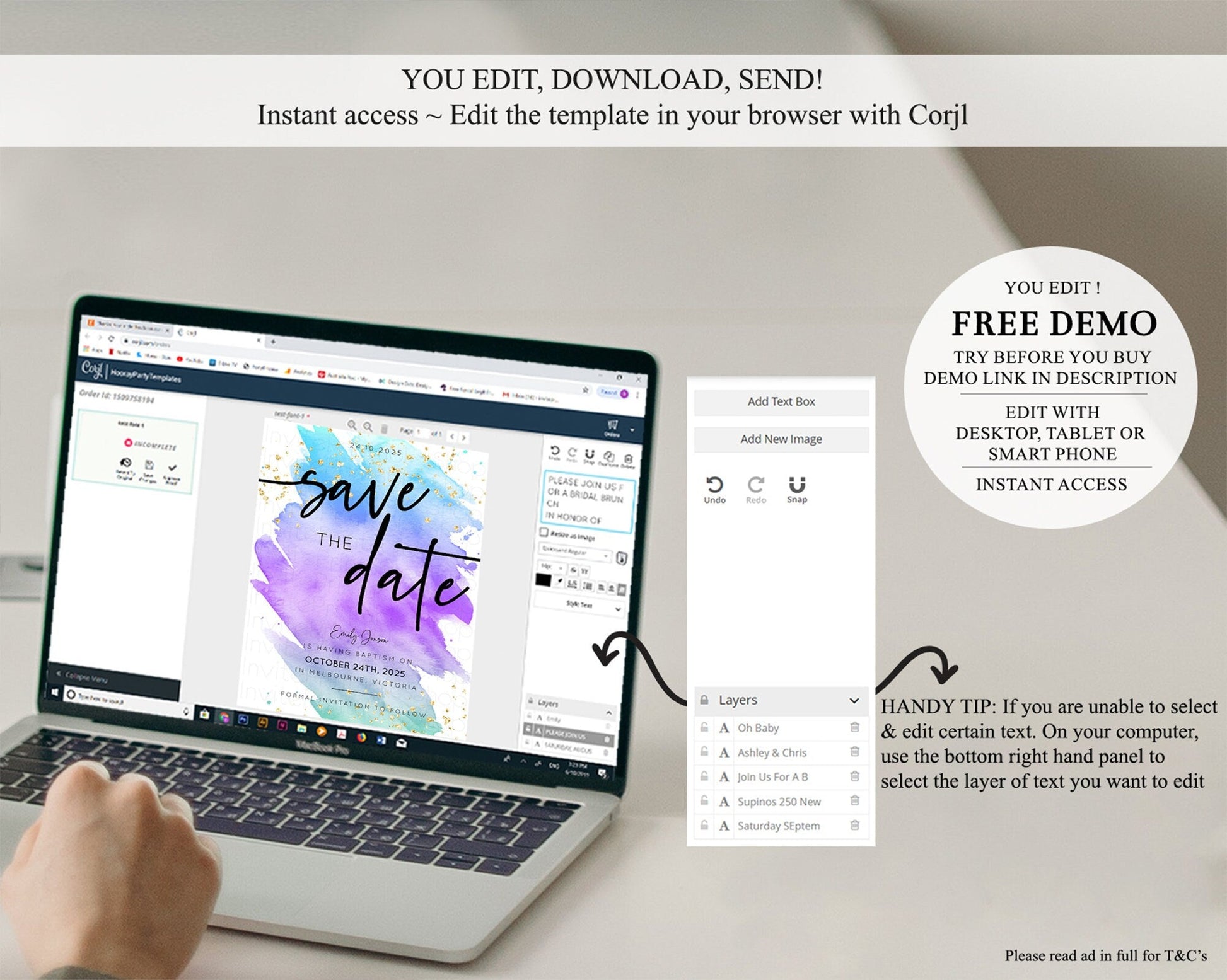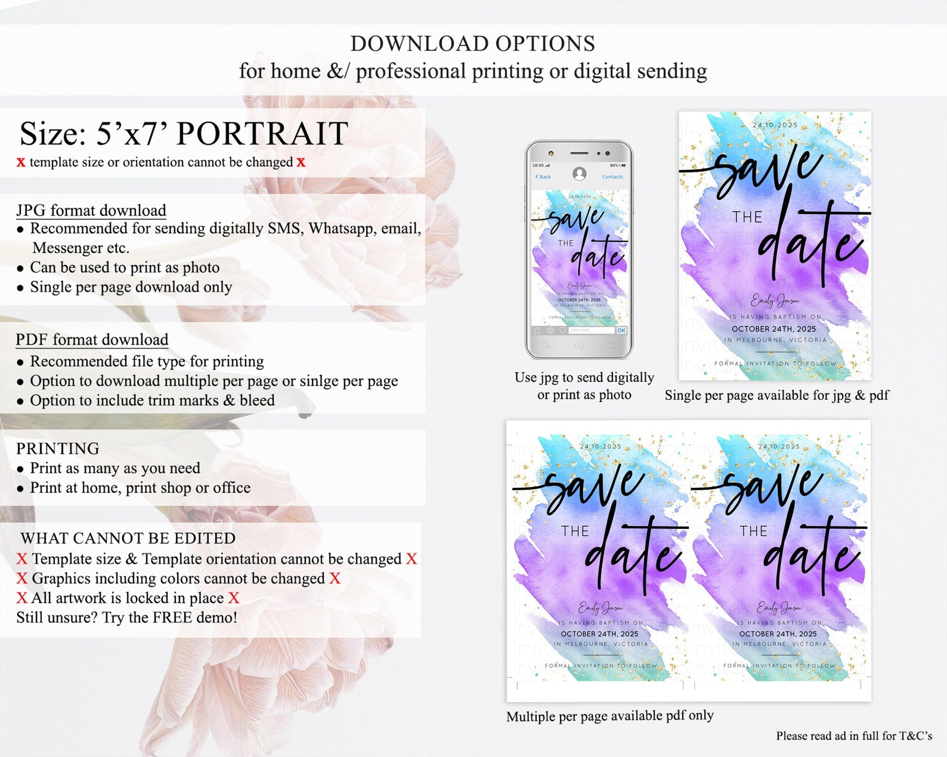 Pastel Save The Date Template Pastel Ombre Rainbow Watercolor Colorful Party For Birthday Baptism Baby Shower Wedding Bridal Shower D10491