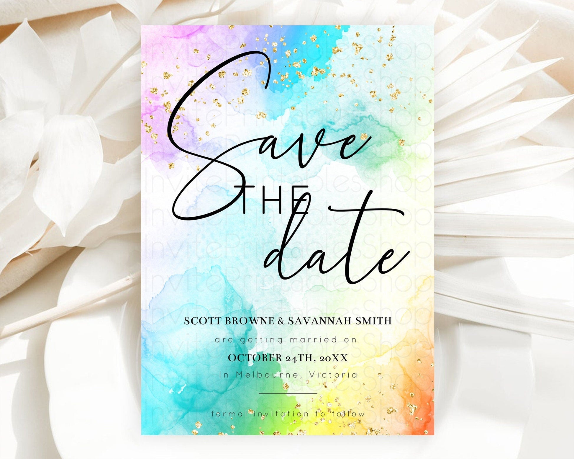 Pastel Save The Date Template Pastel Ombre Rainbow Watercolor Colorful Party For Birthday Baptism Baby Shower Wedding Bridal Shower D10771