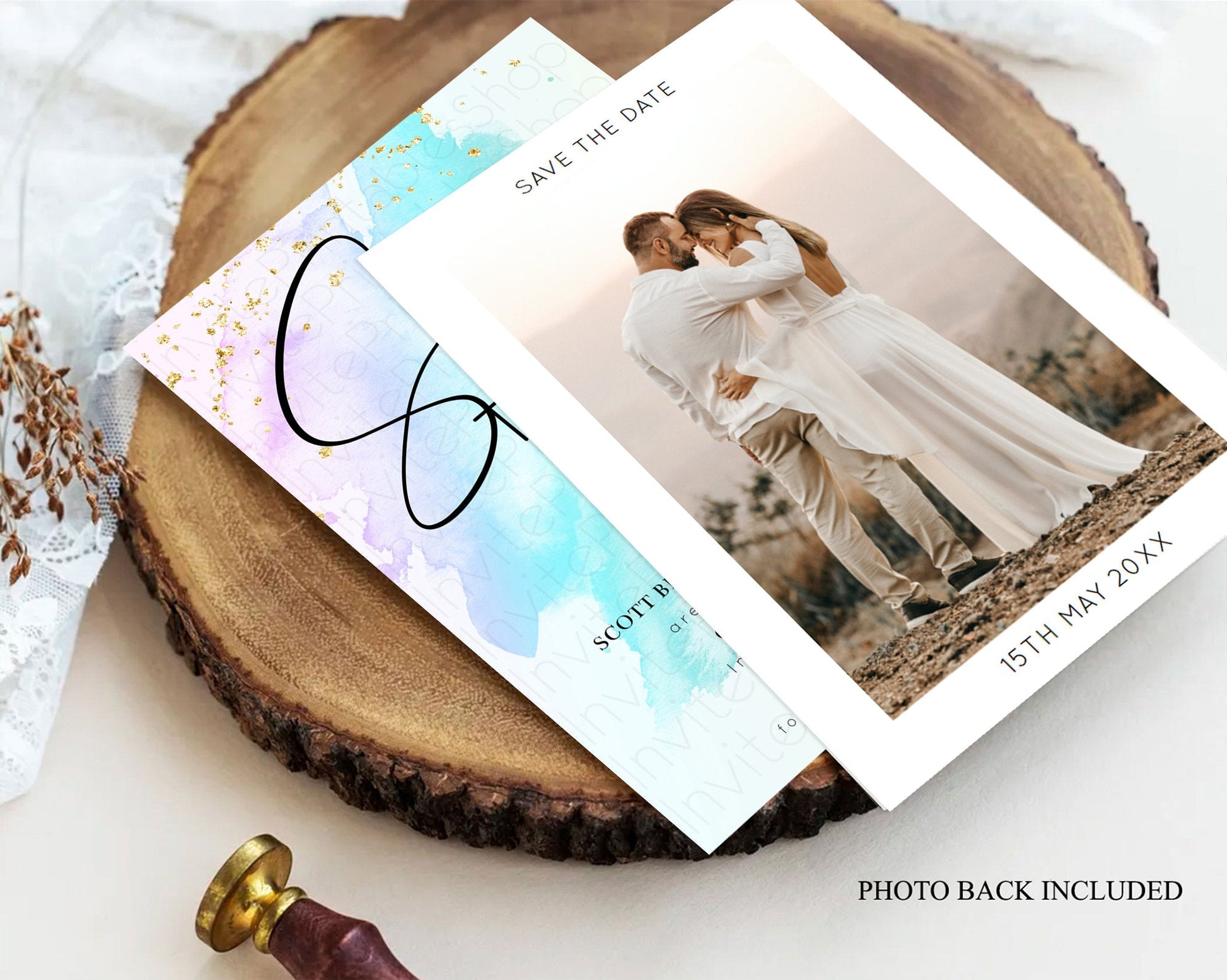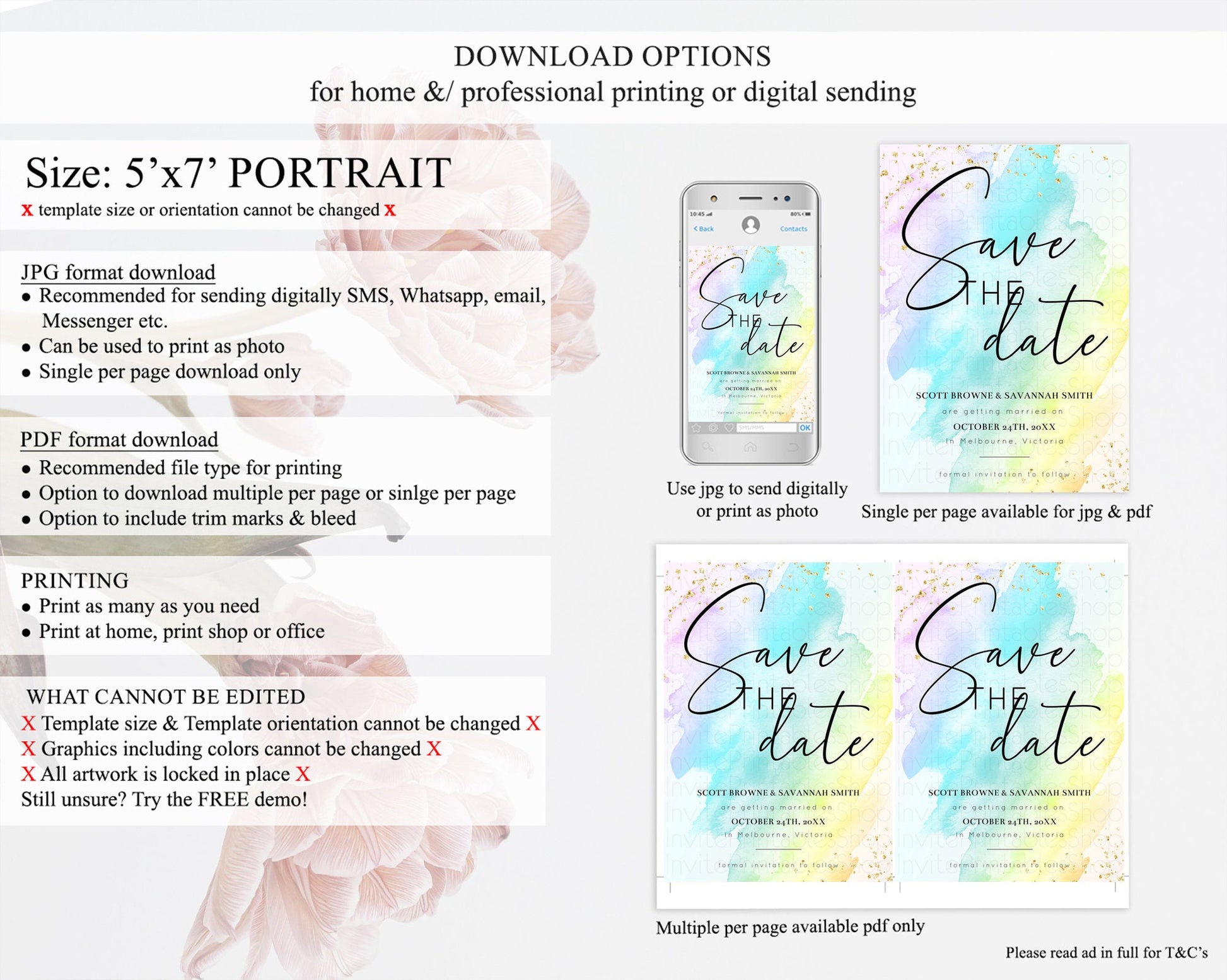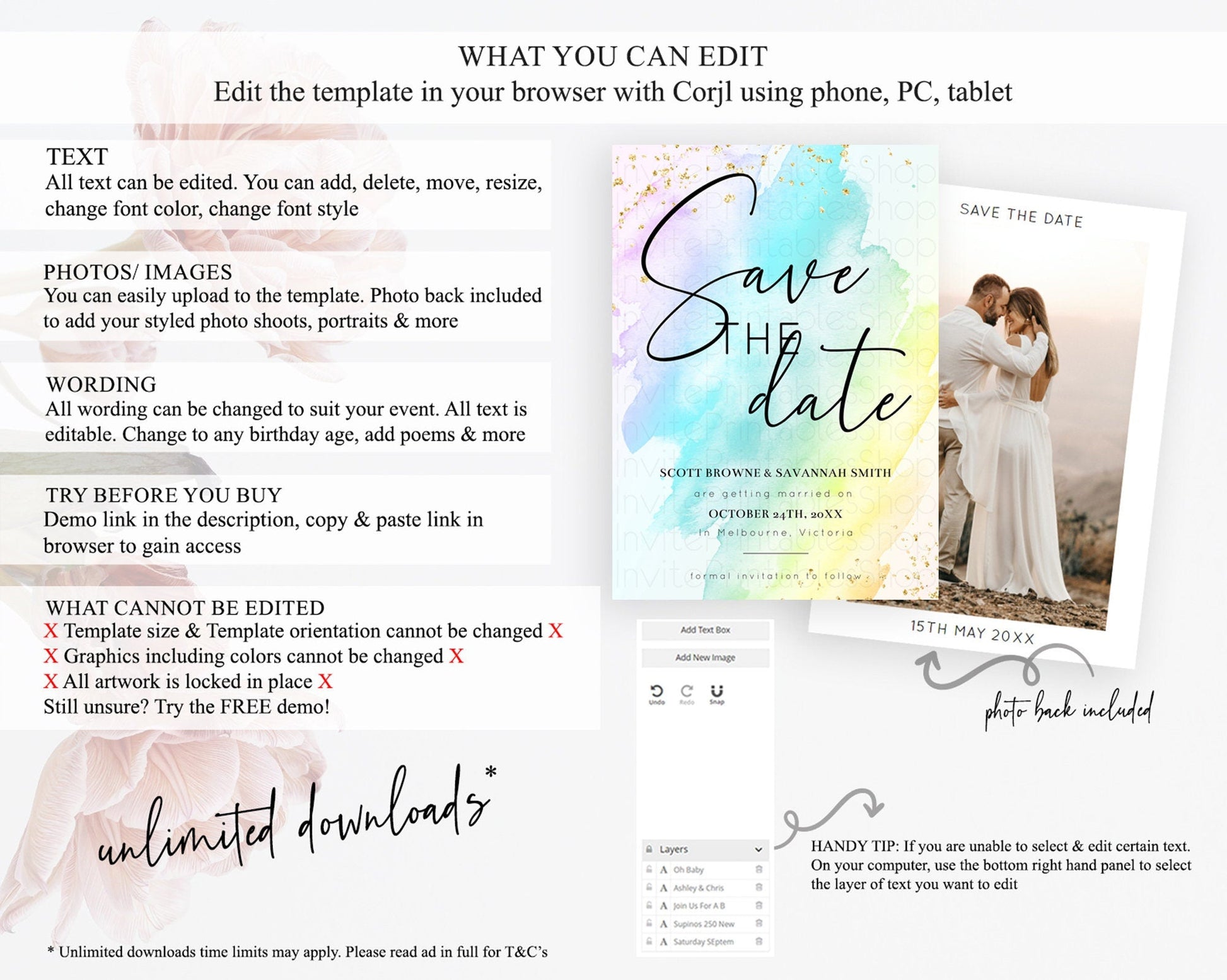 Pastel Save The Date Template Pastel Ombre Rainbow Watercolor Colorful Party For Birthday Baptism Baby Shower Wedding Bridal Shower D10773