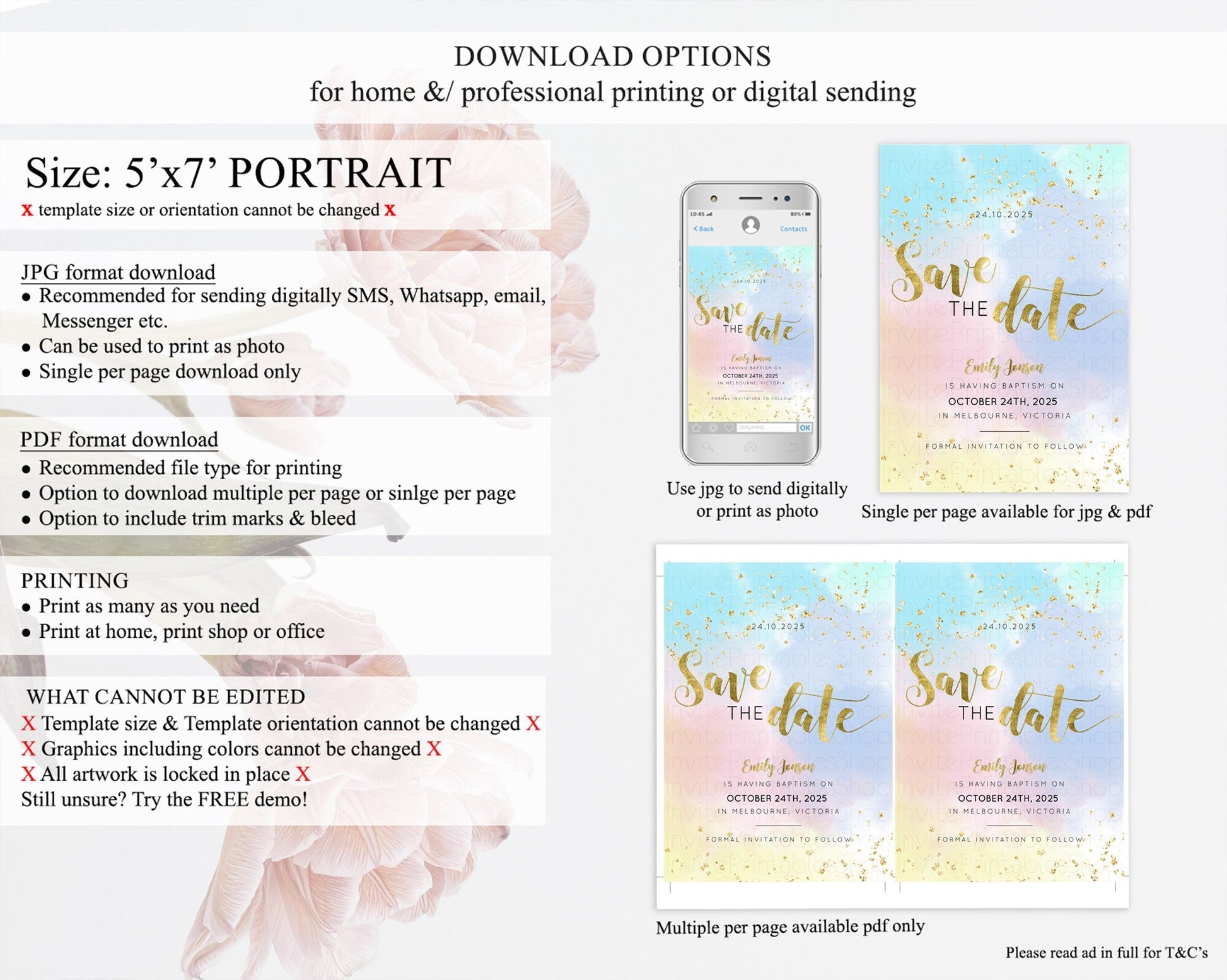 Pastel Save The Date Template Pastel Ombre Rainbow Watercolor Colorful Party For Birthday Baptism Baby Shower Wedding Bridal Shower D10892