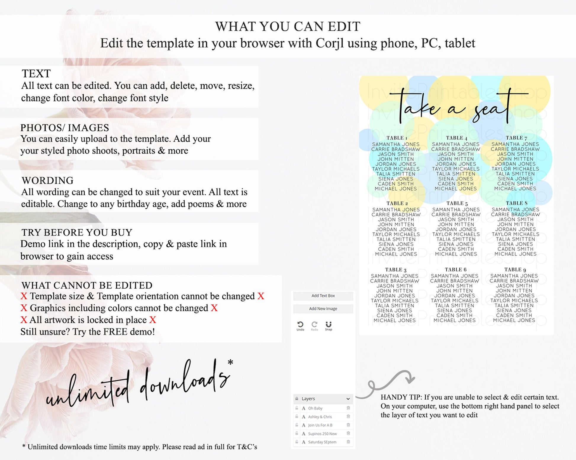• Instructions on how to edit your design have been written by Corjl and will be available with your purchase.