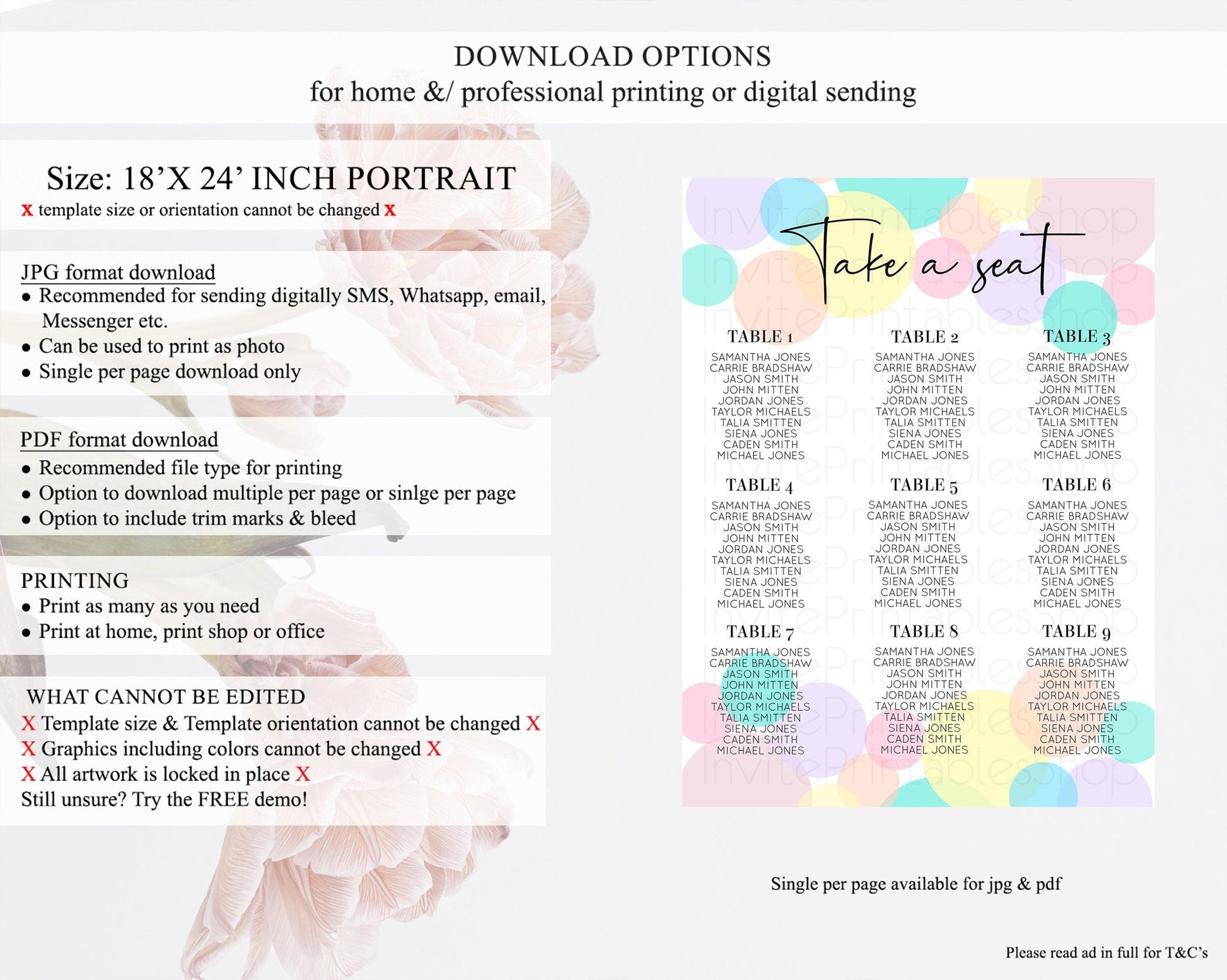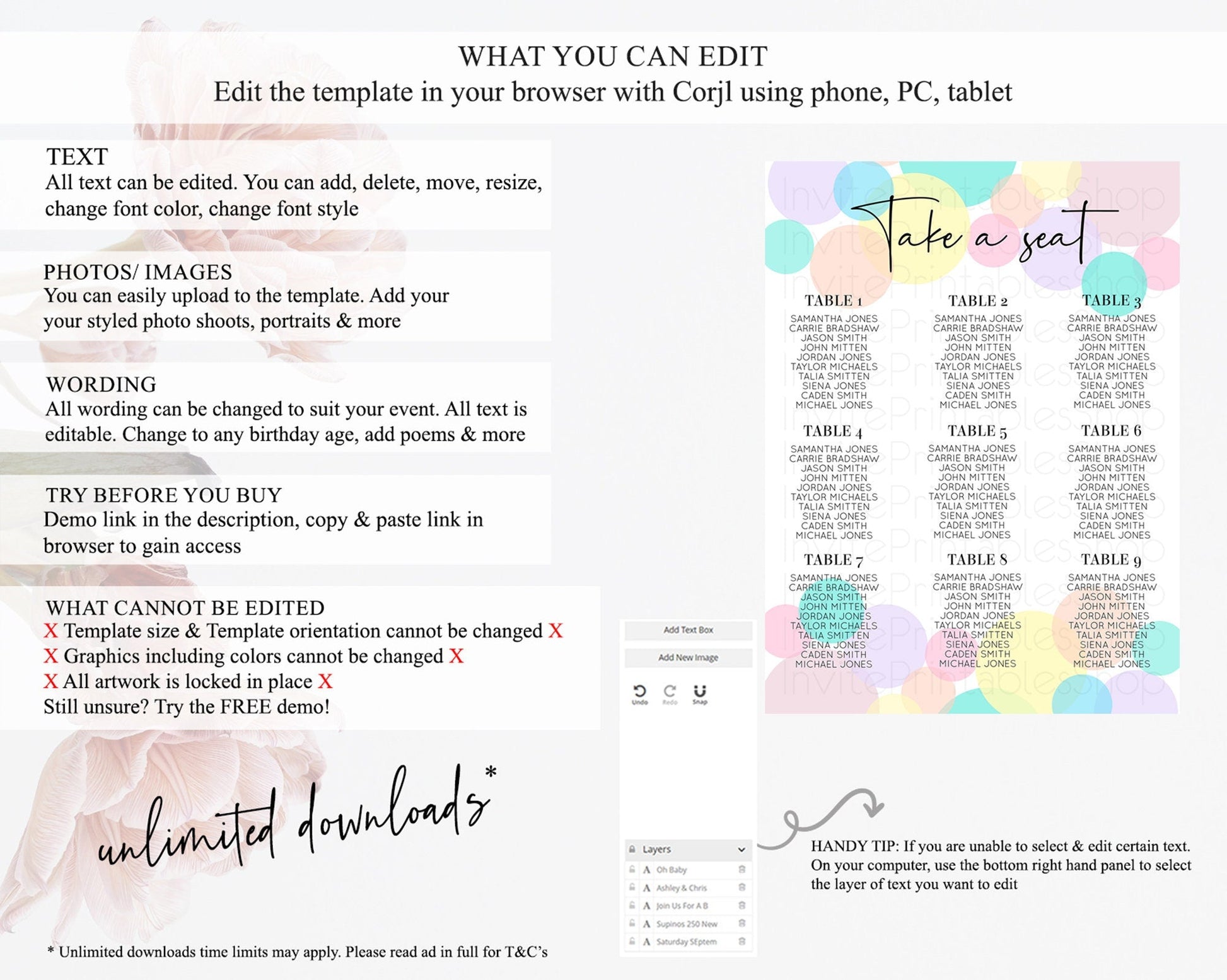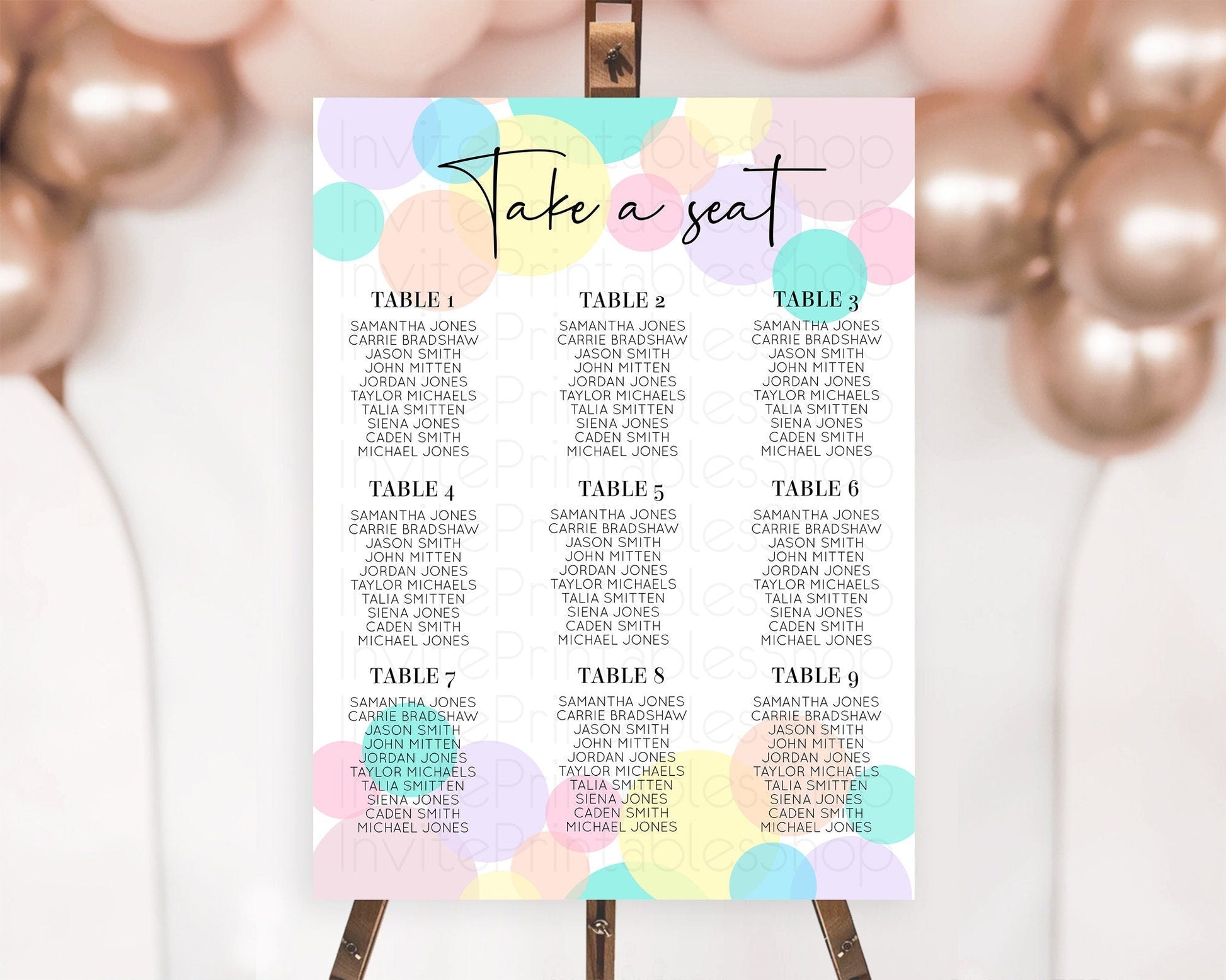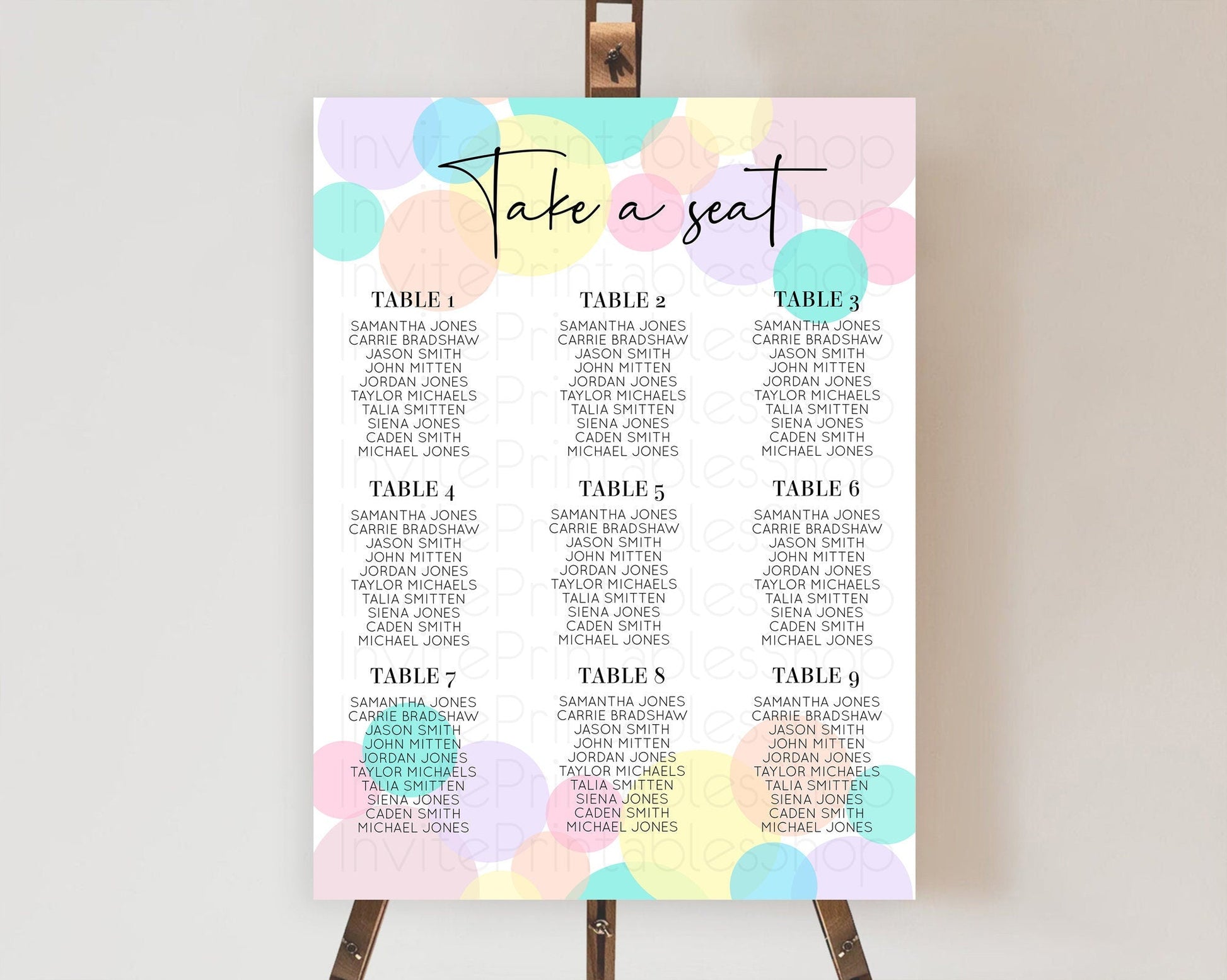 Pastel Seating Chart Pastel Confetti Seating Chart Bubbles Sprinkles Seating Sign Colorful Rainbow Decor Confetti Seating Board D10223