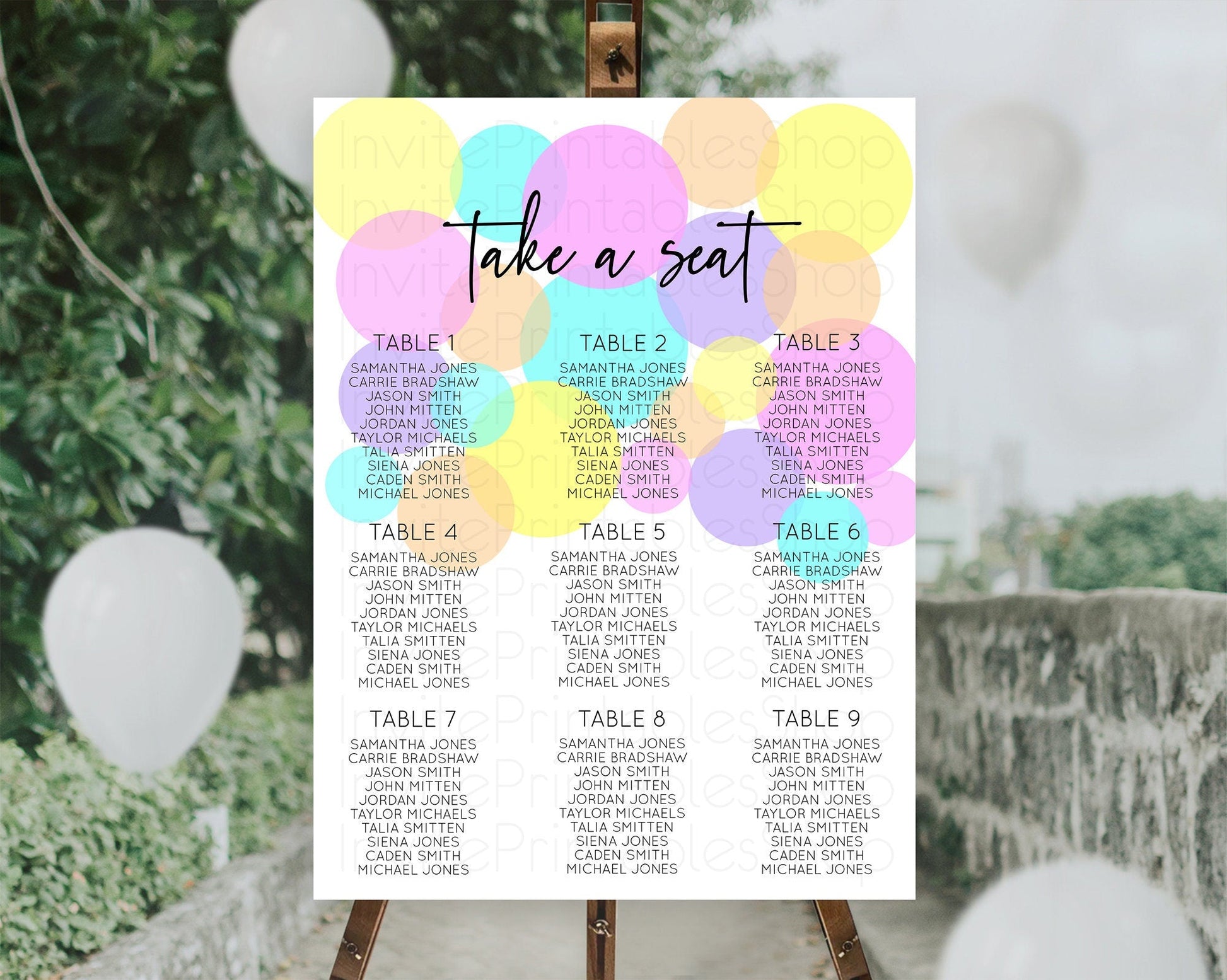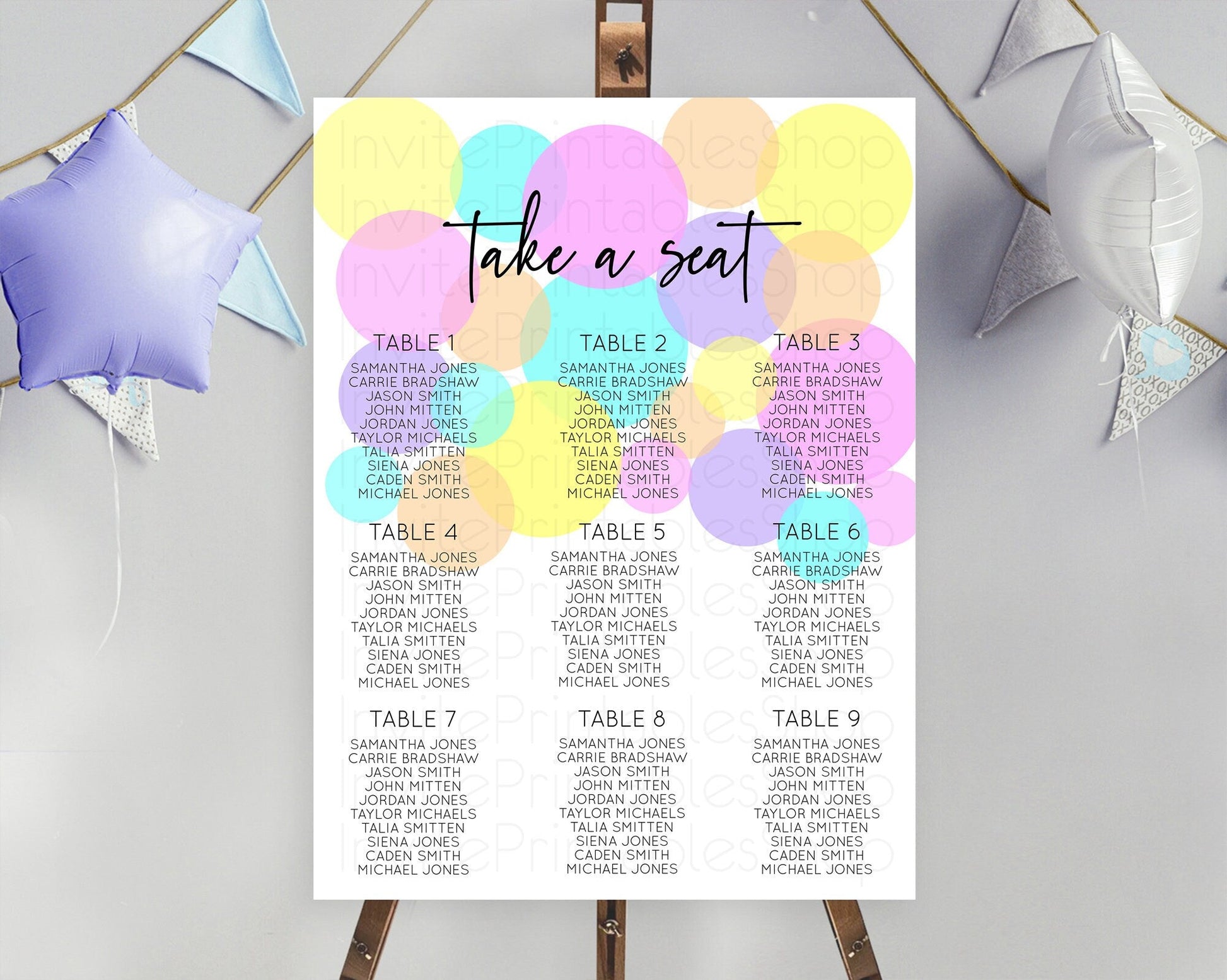 Pastel Confetti Party Seating Chart