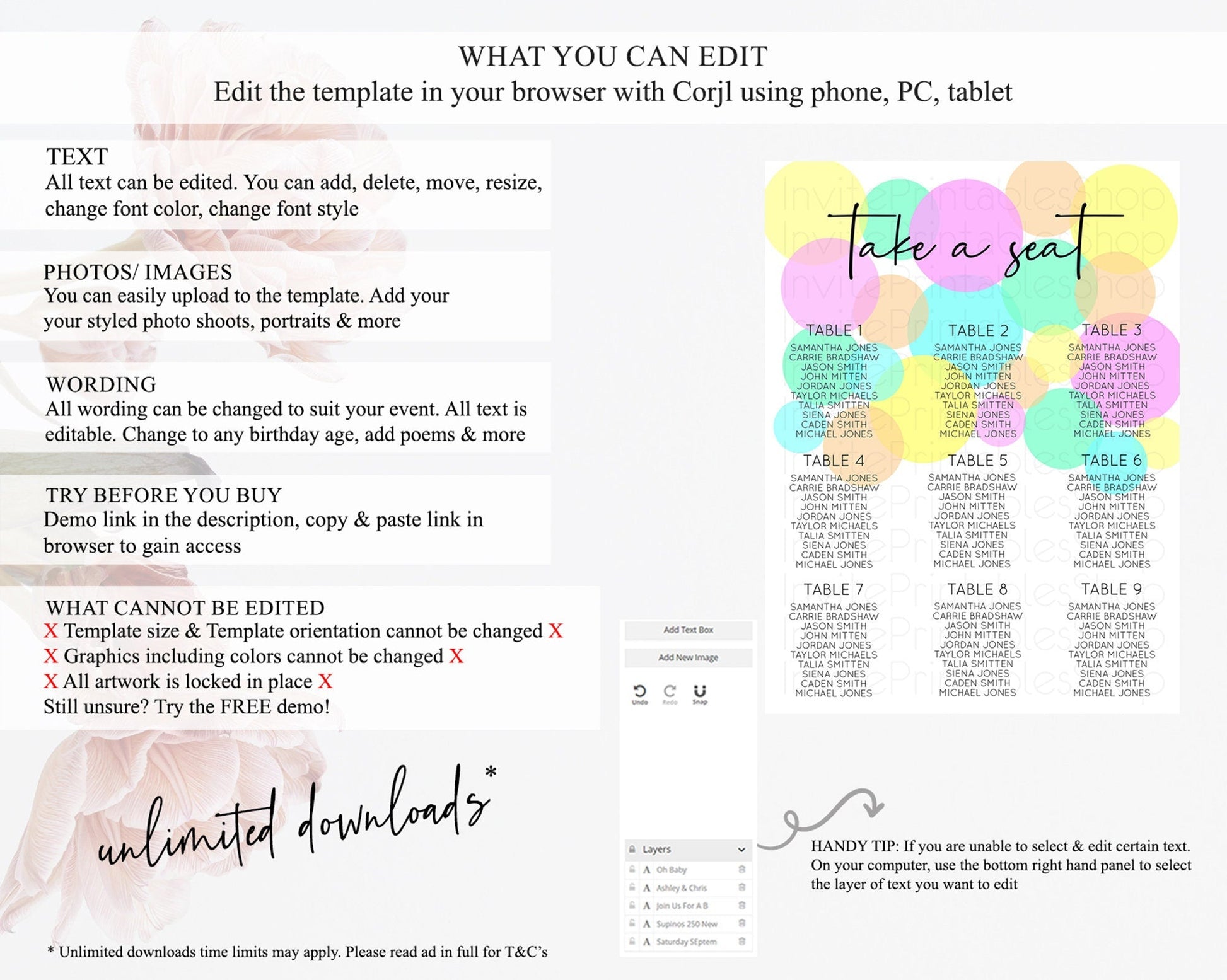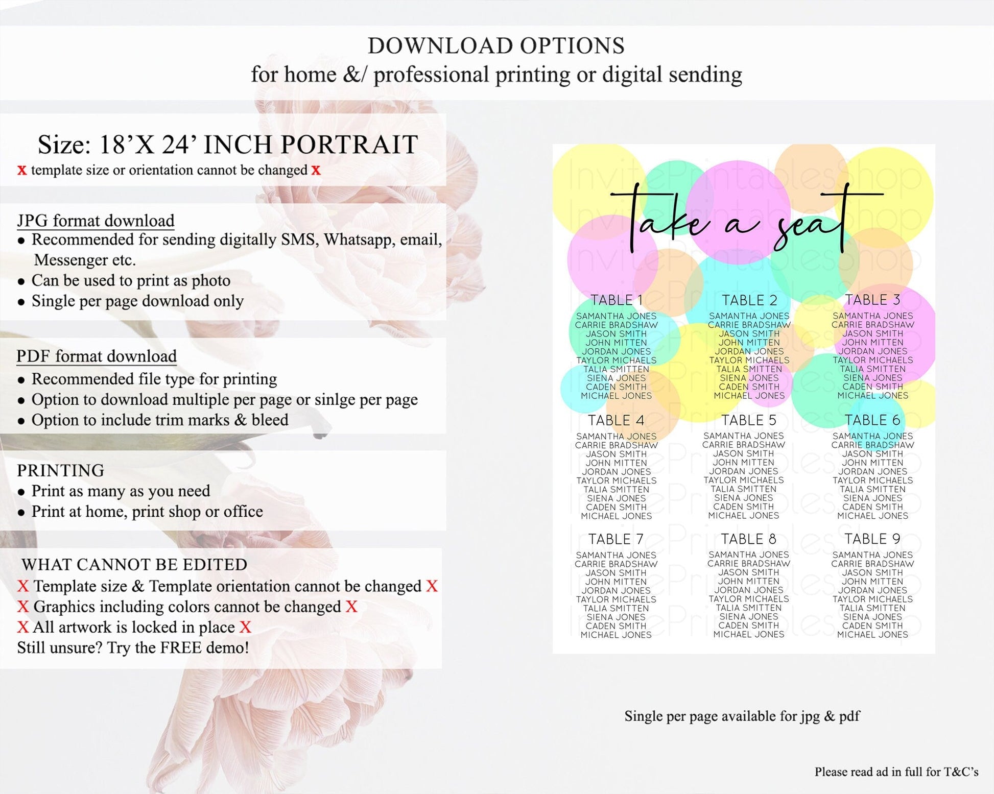 Pastel Seating Chart Pastel Confetti Seating Chart Bubbles Sprinkles Seating Sign Colorful Rainbow Decor Confetti Seating Board D10409