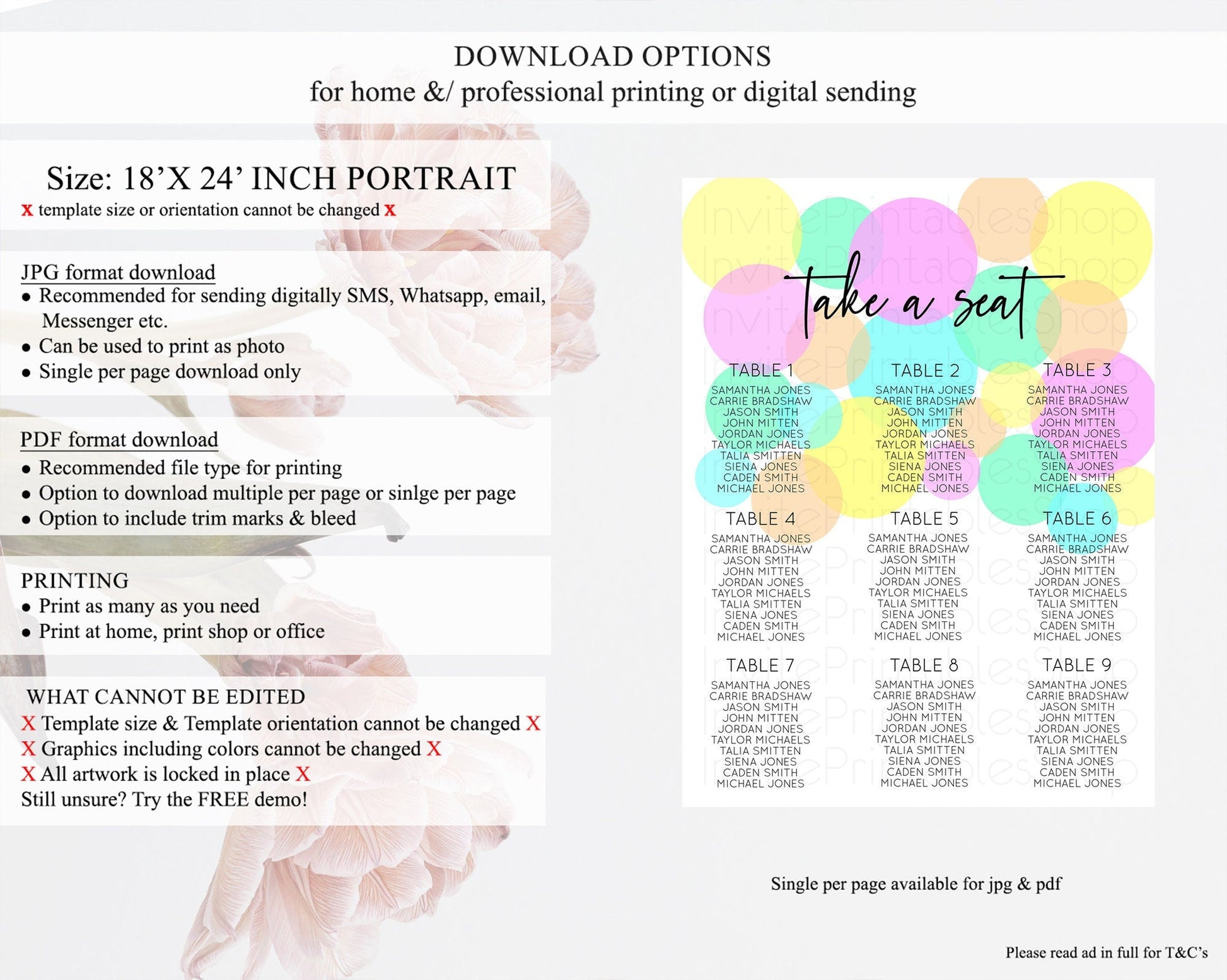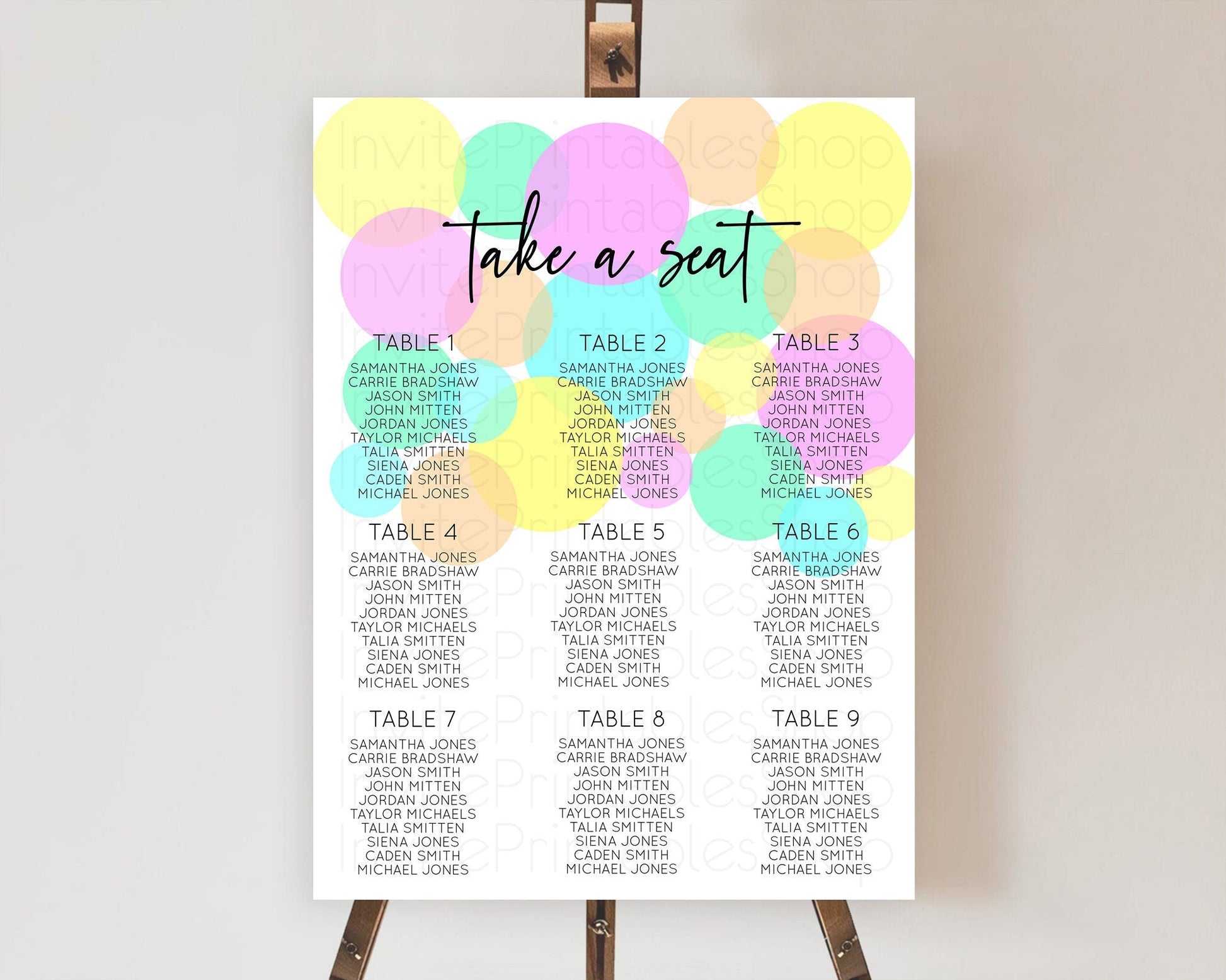 Pastel Seating Chart Pastel Confetti Seating Chart Bubbles Sprinkles Seating Sign Colorful Rainbow Decor Confetti Seating Board D10410