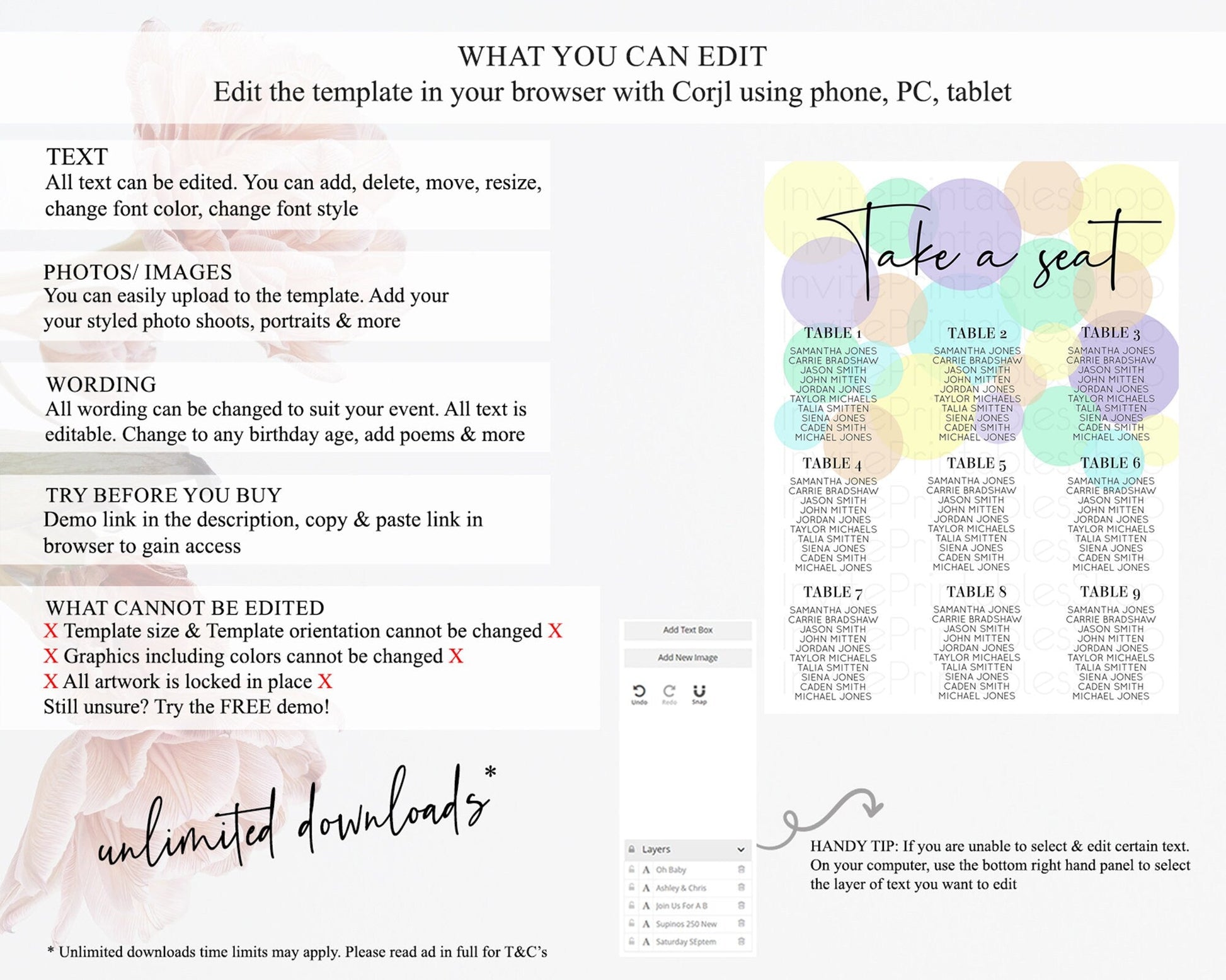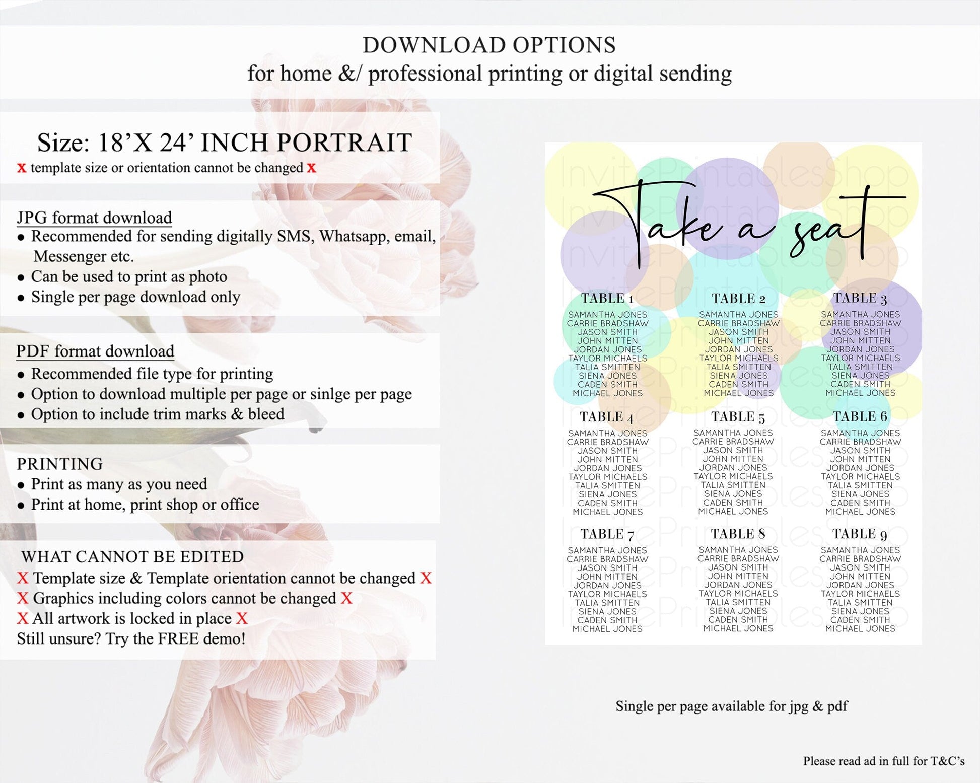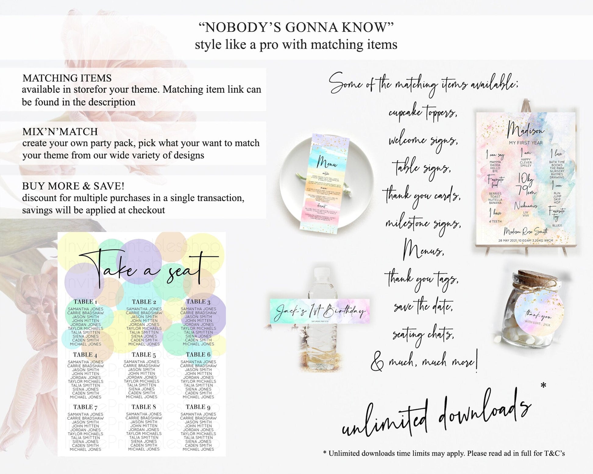Pastel Seating Chart Pastel Confetti Seating Chart Bubbles Sprinkles Seating Sign Colorful Rainbow Decor Confetti Seating Board D10414