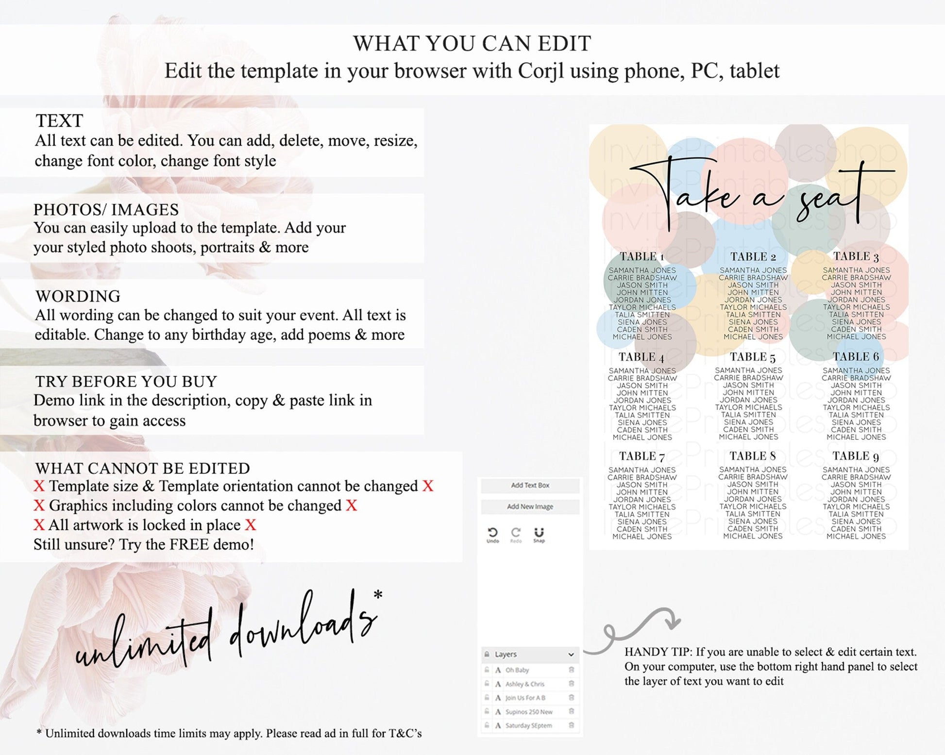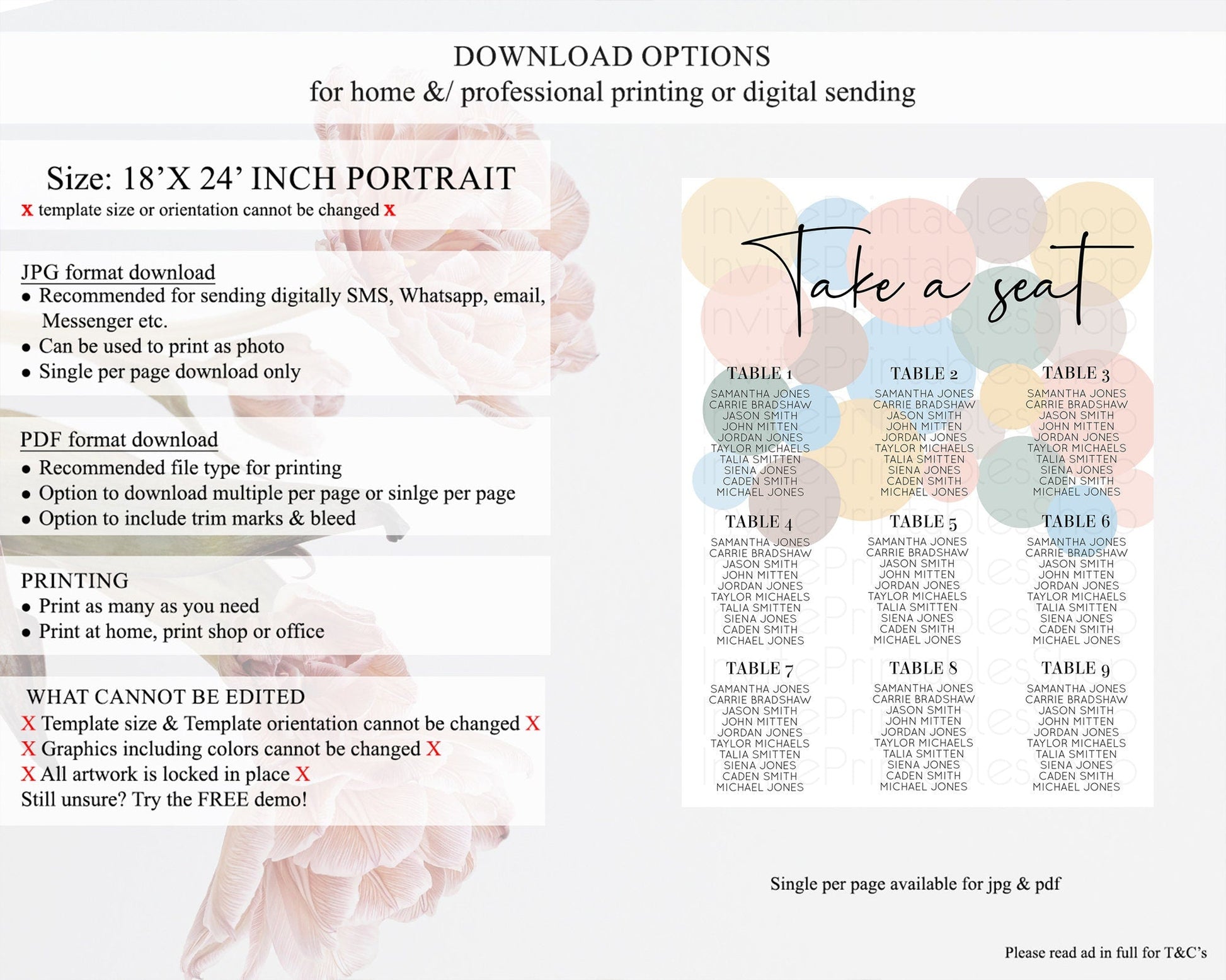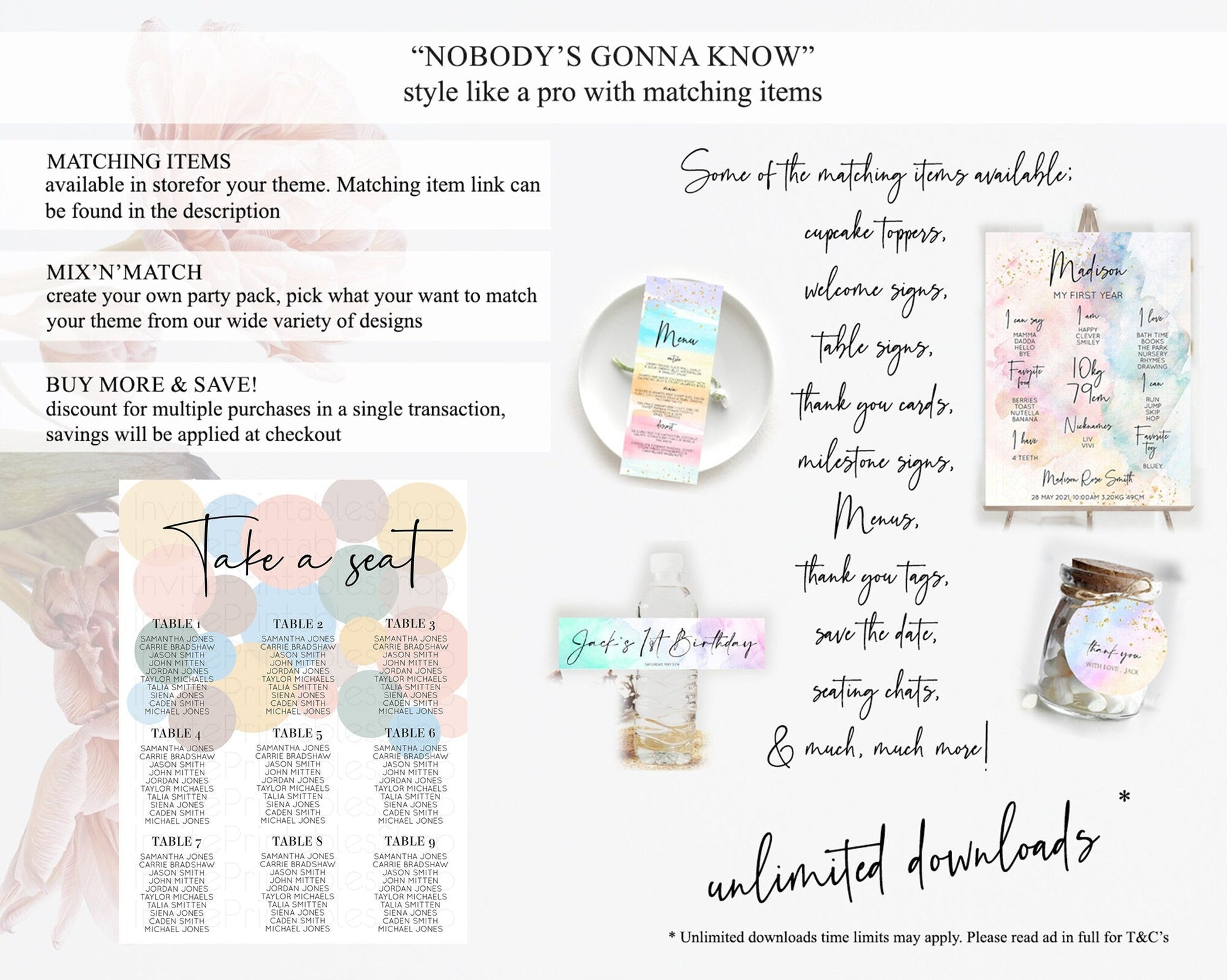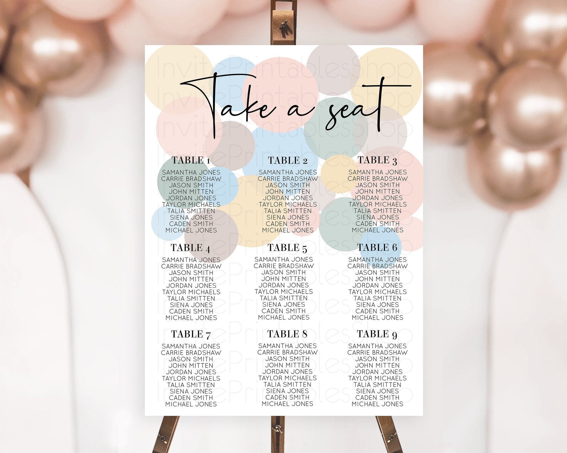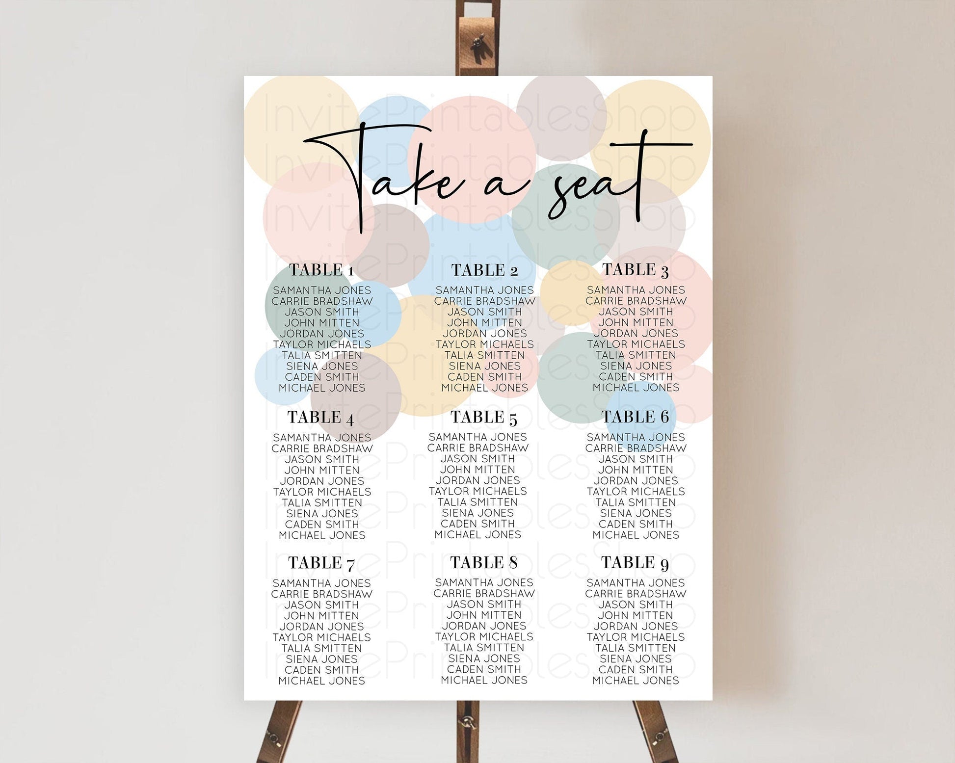 Pastel Seating Chart Pastel Confetti Seating Chart Bubbles Sprinkles Seating Sign Colorful Rainbow Decor Confetti Seating Board D10602
