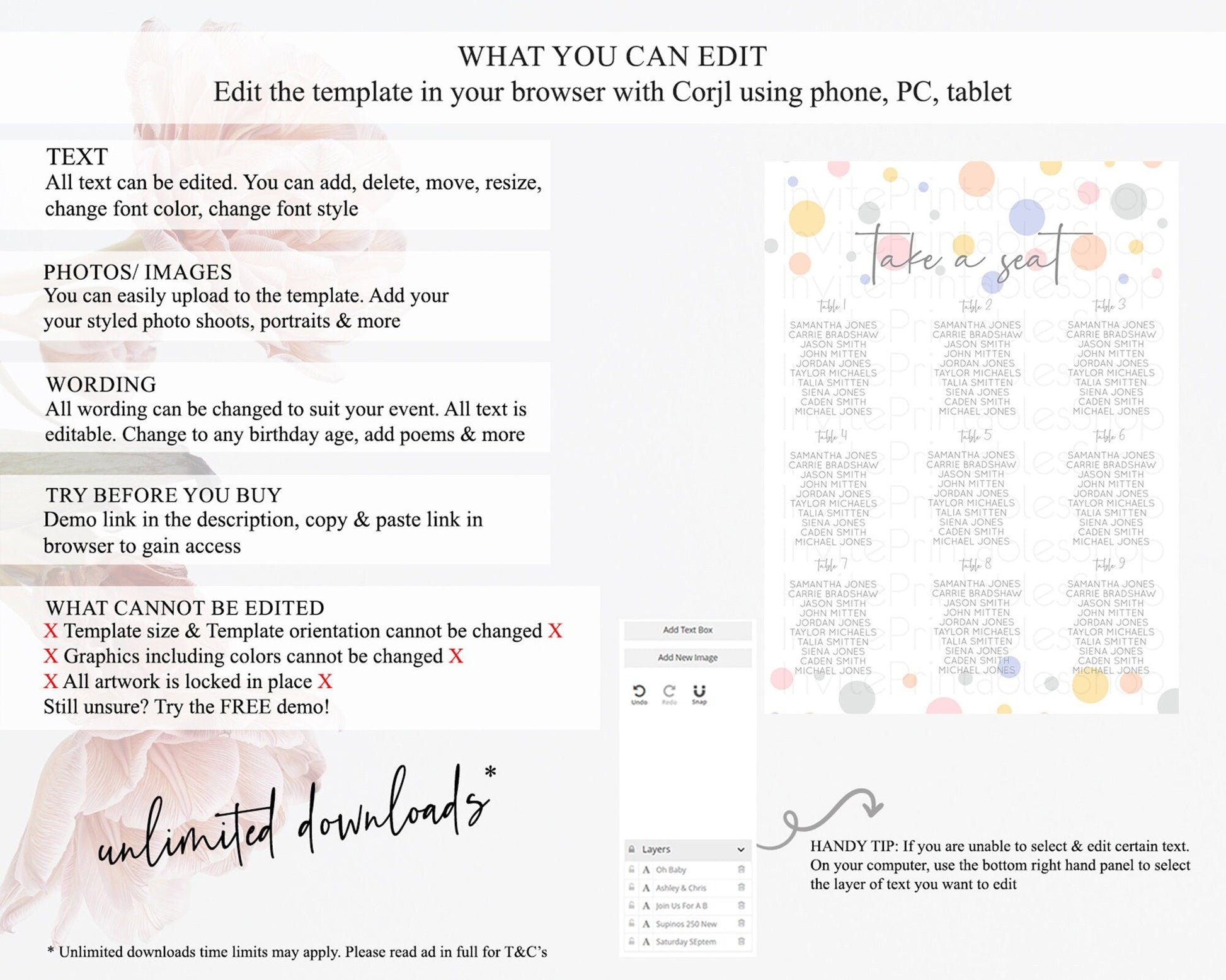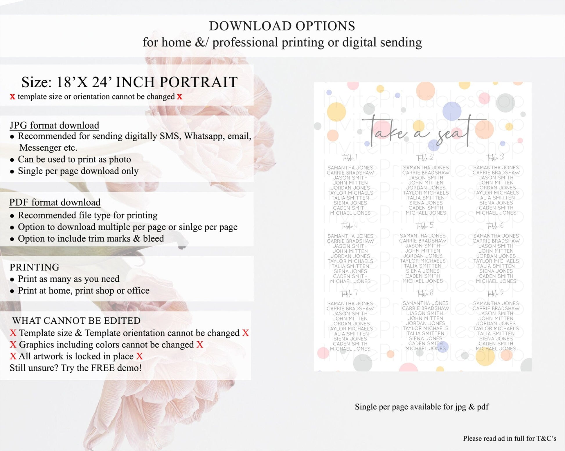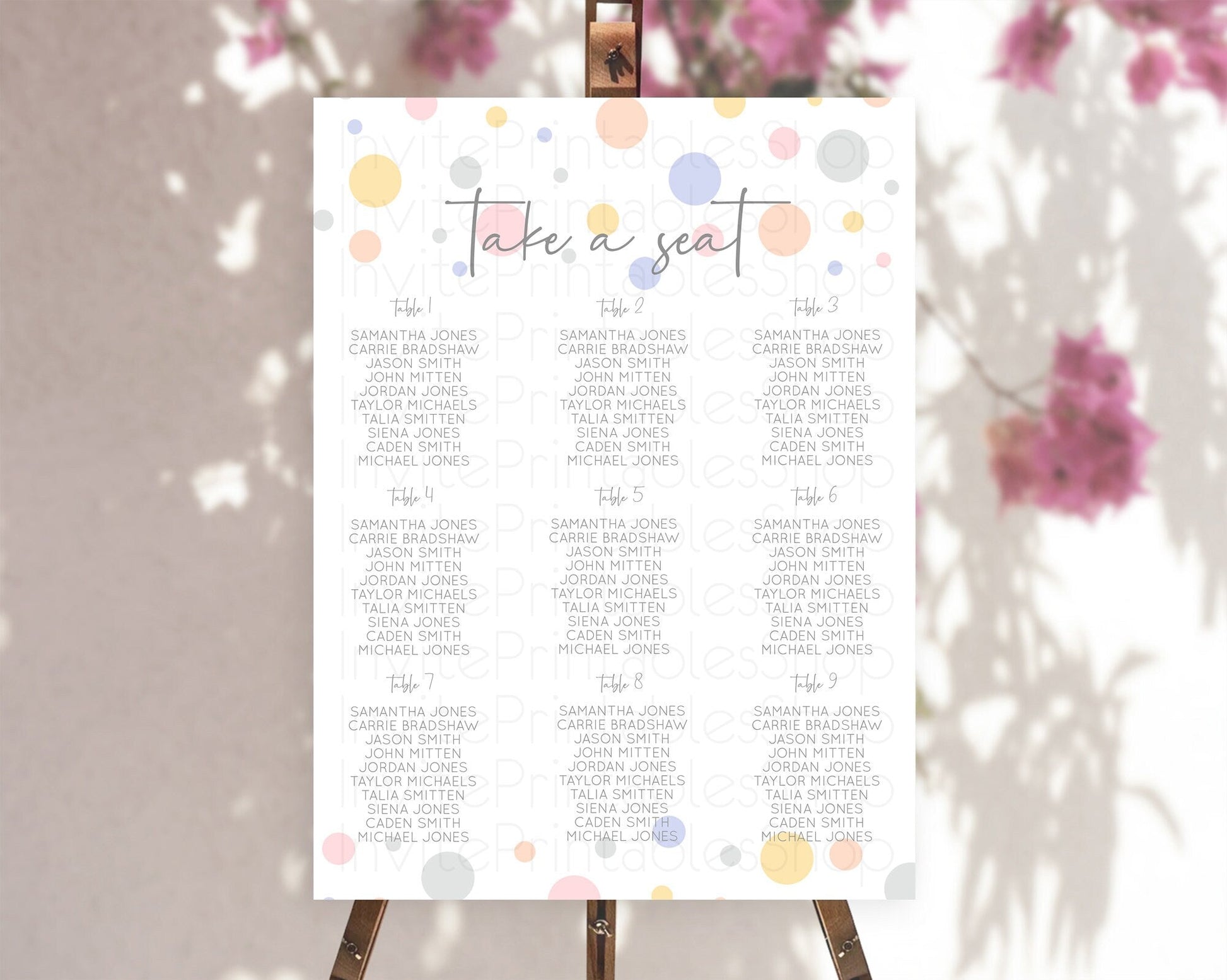 Pastel Seating Chart Pastel Confetti Seating Chart Bubbles Sprinkles Seating Sign Colorful Rainbow Decor Confetti Seating Board D10759