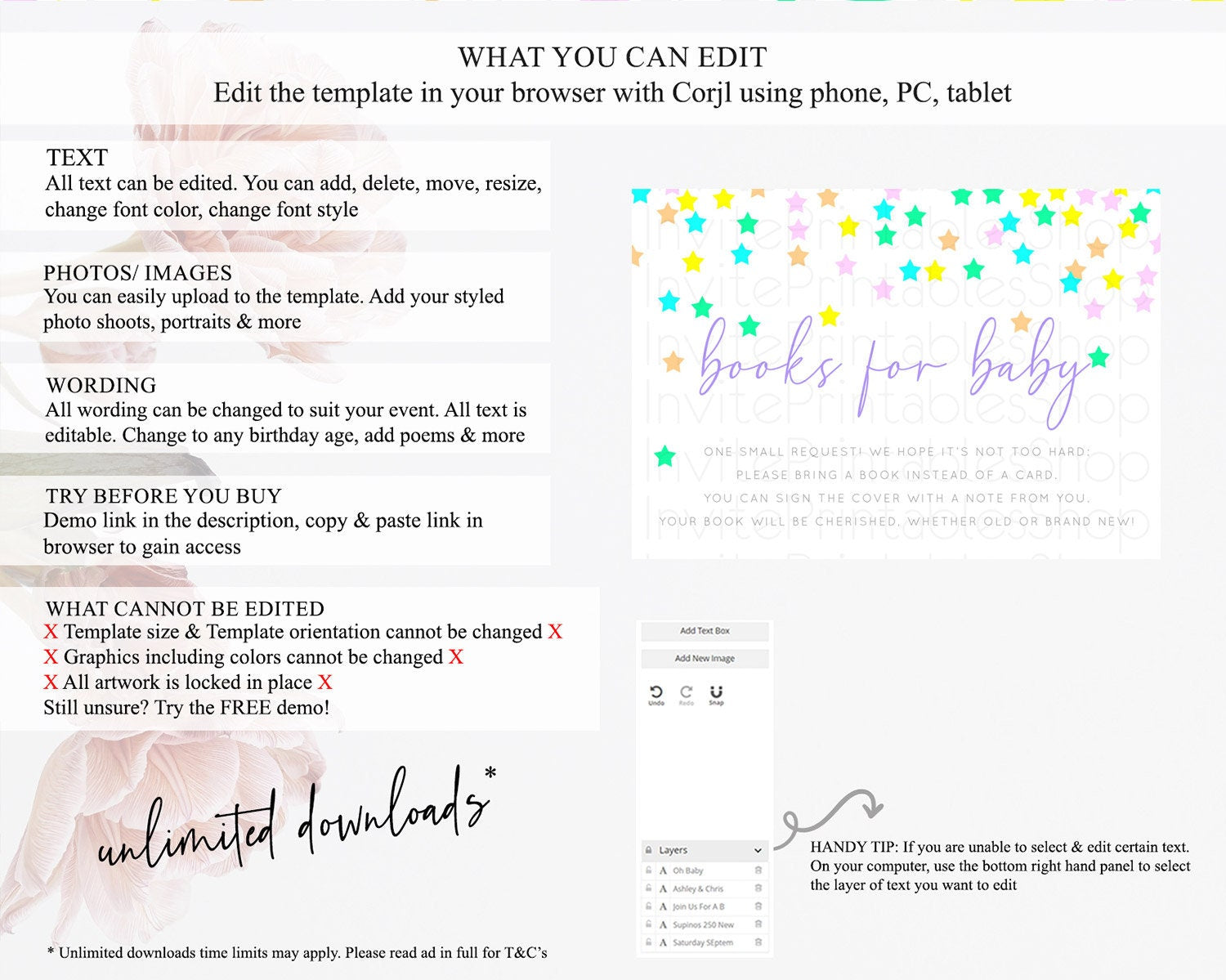 • After purchase, Corjl emails your editing link. Allow up to 15 minutes for delivery.