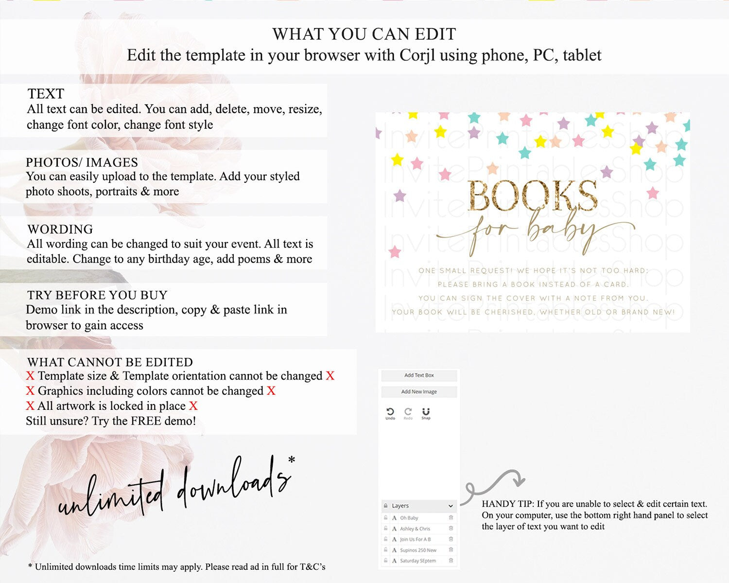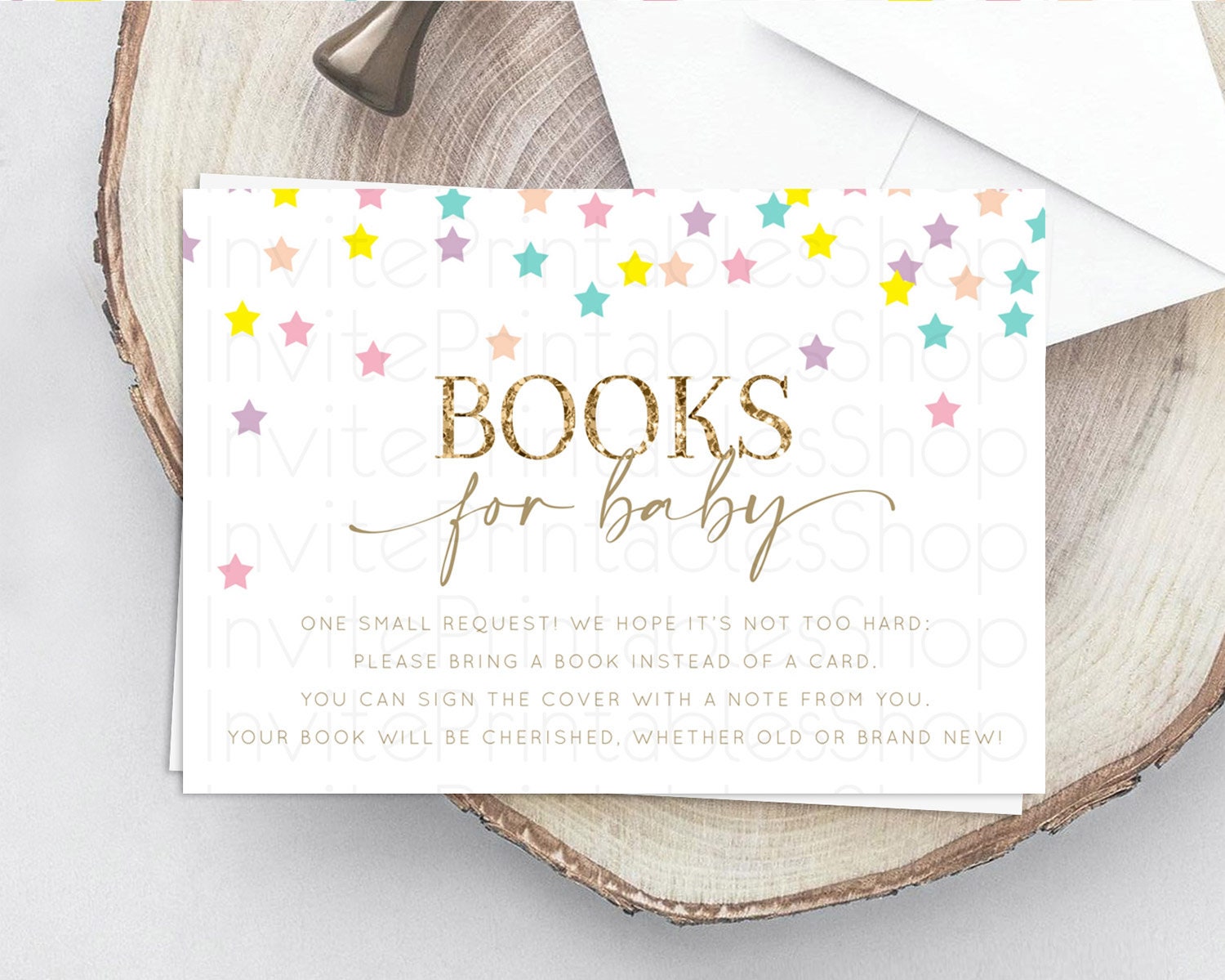 Pastel Star Books For Baby Card Shooting Star Book Insert Twinkle Little Star Book Card Rainbow Confetti Guests Book Poem Request D10601