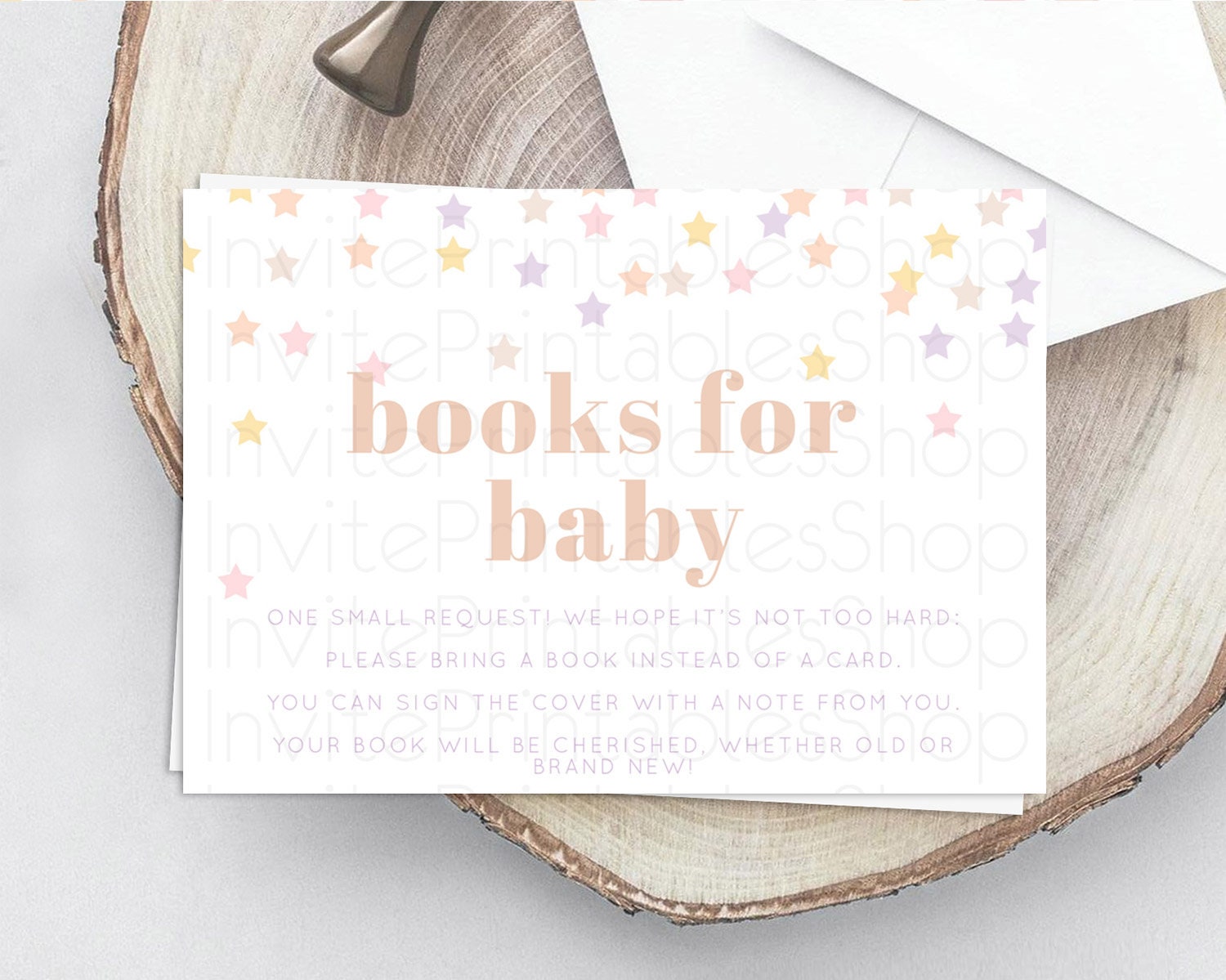 Pastel Star Books For Baby Card Shooting Star Book Insert Twinkle Little Star Book Card Rainbow Confetti Guests Book Poem Request D10810