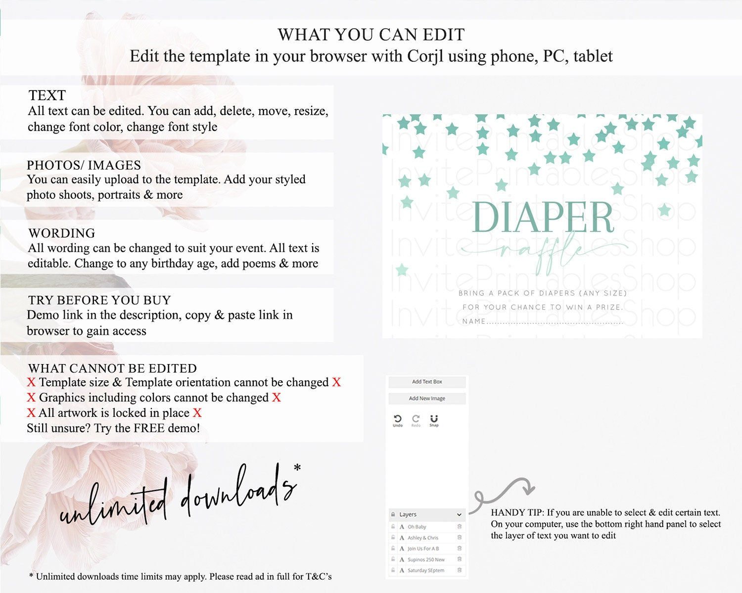 • After purchase, Corjl emails your editing link. Allow up to 15 minutes for delivery.