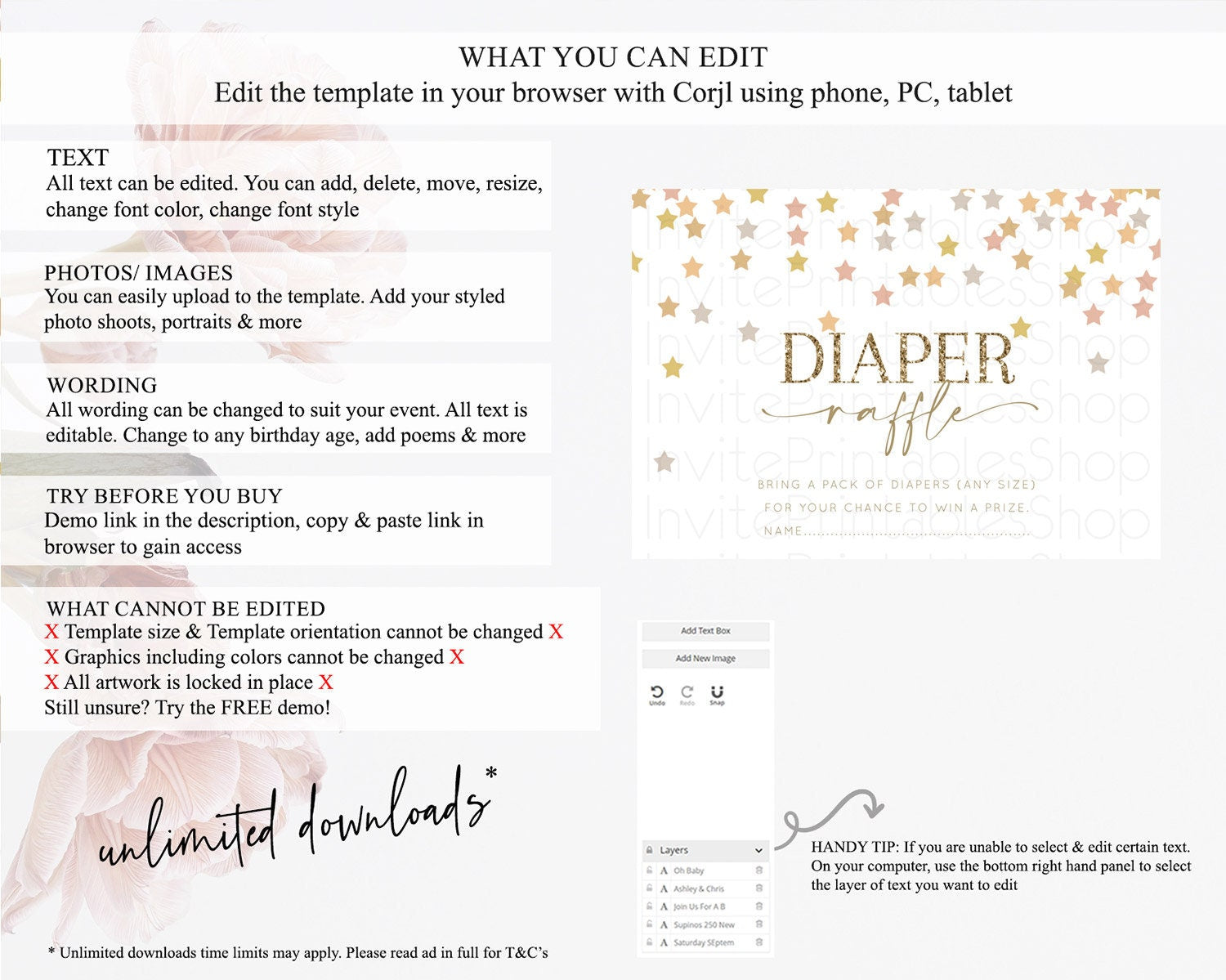 Pastel Star Diaper Raffle Card Shooting Star Diaper Raffle Insert Twinkle Little Star Diaper Ticket Rainbow Confetti Raffle Game D10342