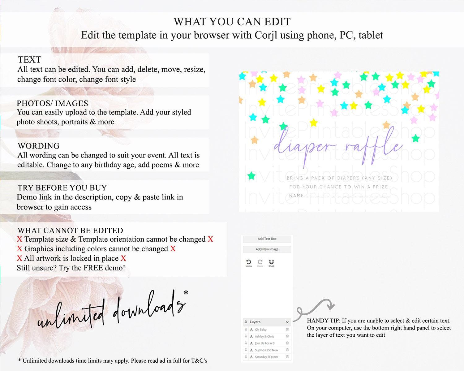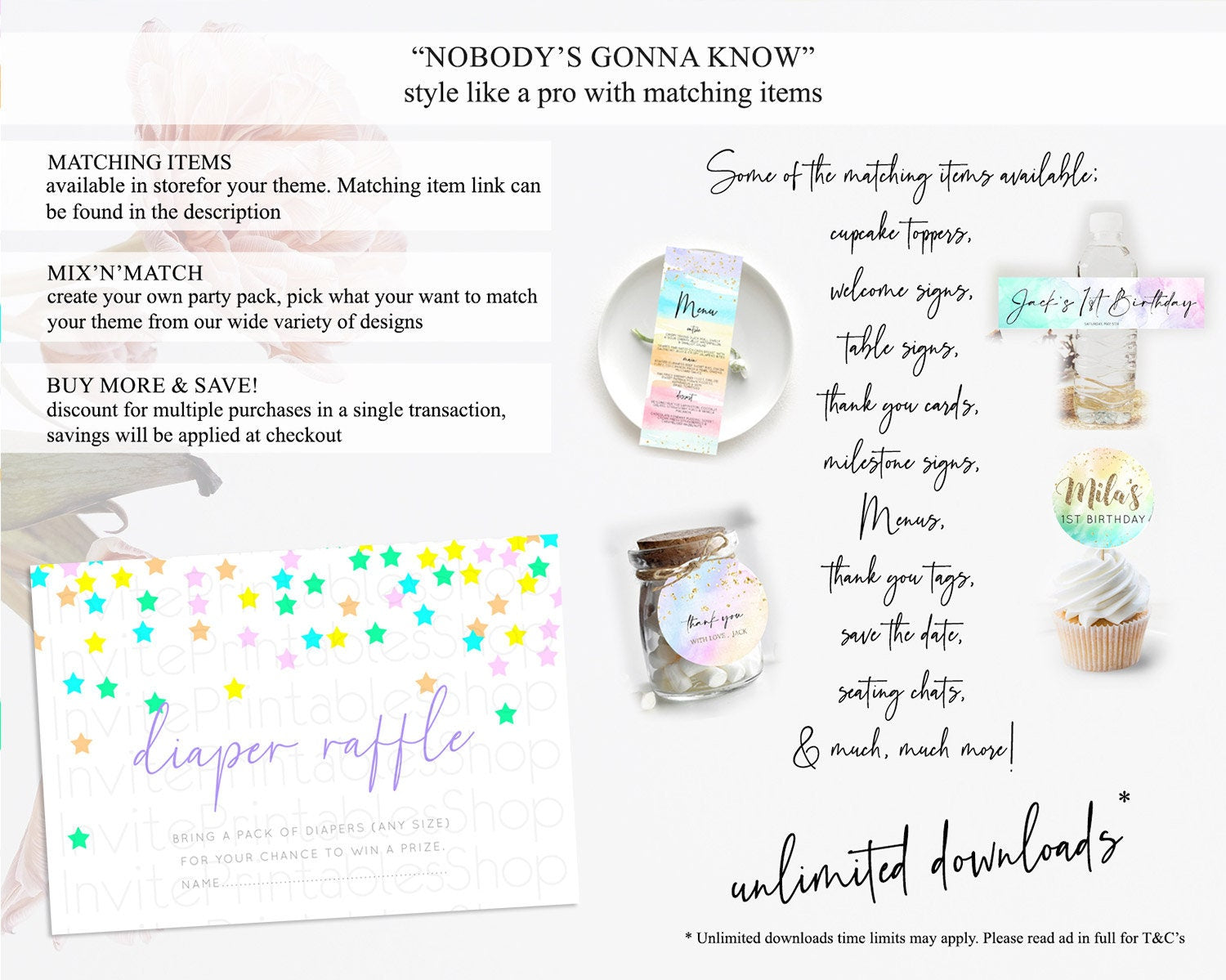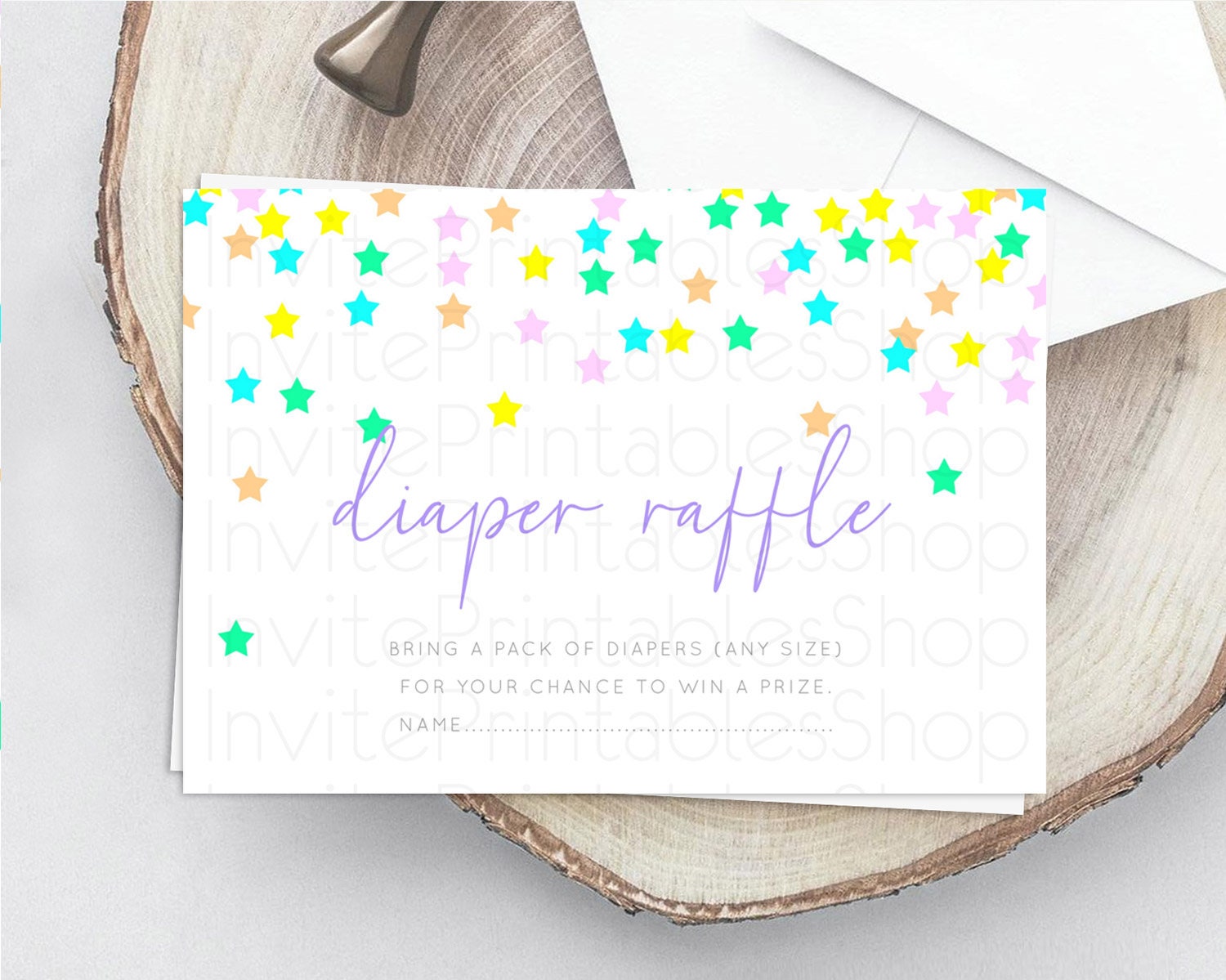 Pastel Star Diaper Raffle Card Shooting Star Diaper Raffle Insert Twinkle Little Star Diaper Ticket Rainbow Confetti Raffle Game D10394