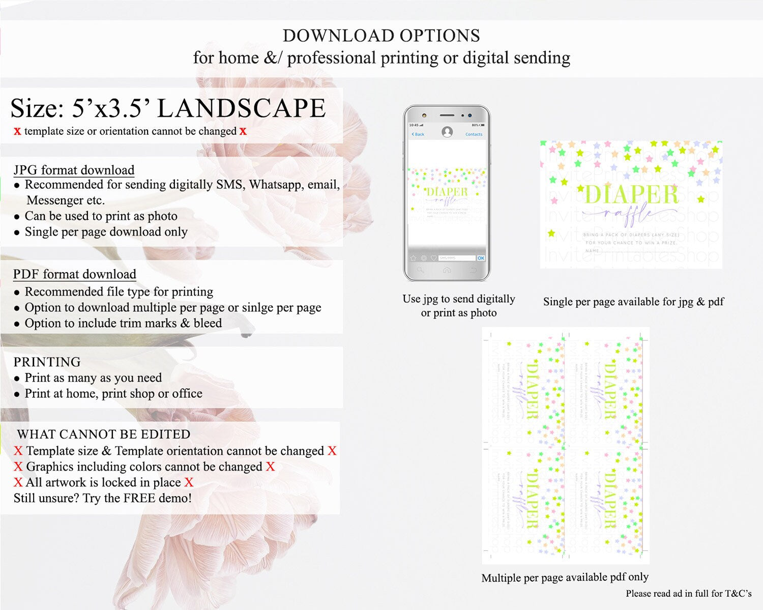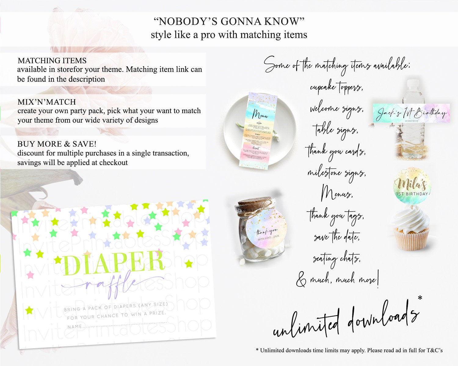 Pastel Star Diaper Raffle Card Shooting Star Diaper Raffle Insert Twinkle Little Star Diaper Ticket Rainbow Confetti Raffle Game D10396