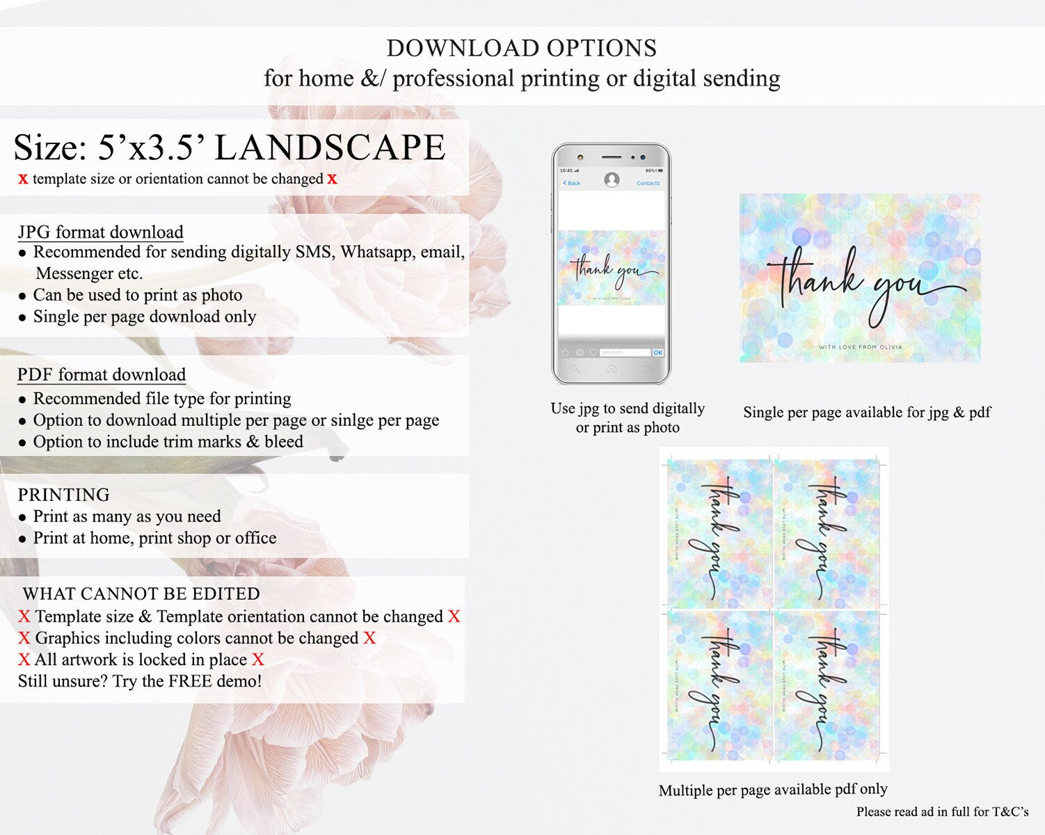 • Template size & orientation cannot be changed. Please use the demo link to confirm this product suits your needs.