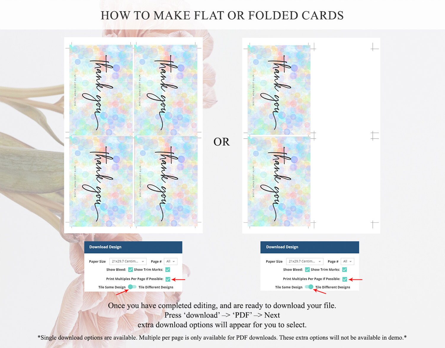 • Custom changes to artwork are not provided on existing templates.