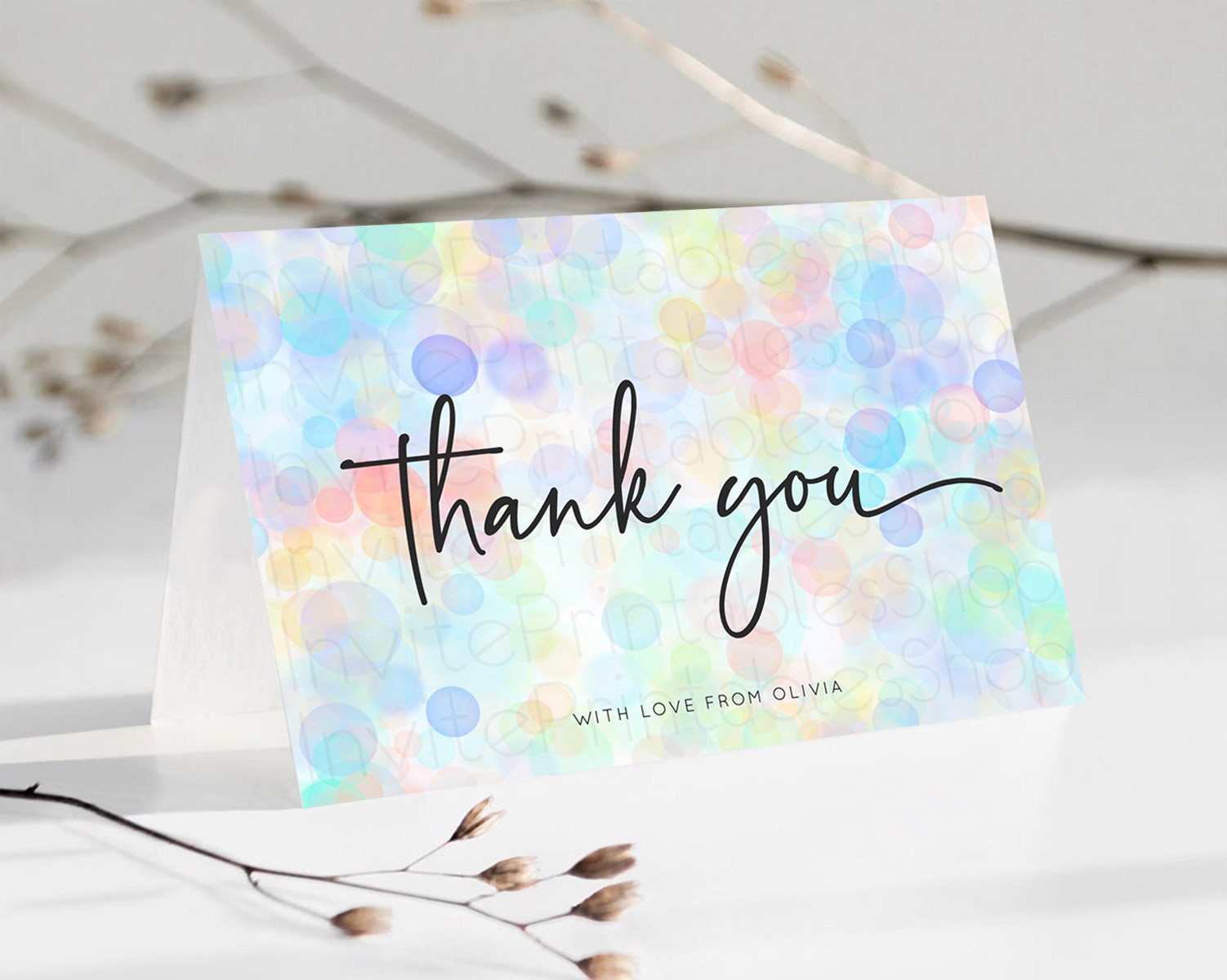 Pastel Confetti Bubbles Thank You Cards