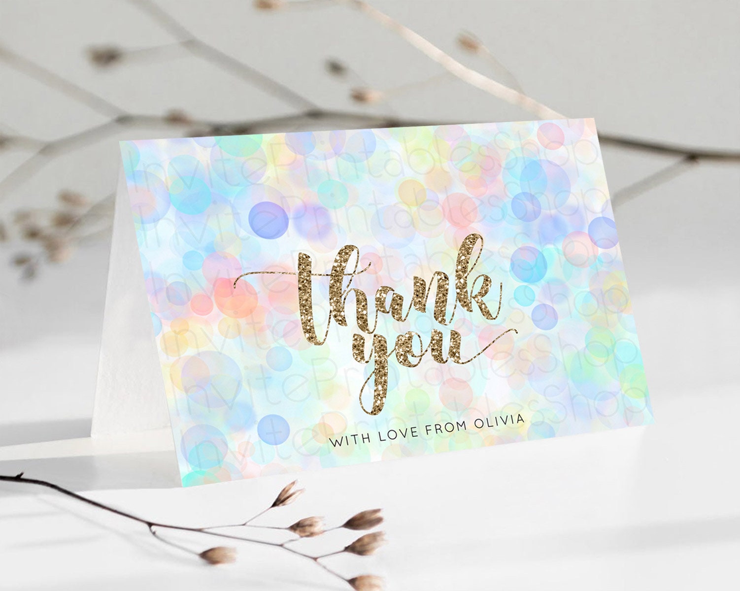 Pastel Thank You Bubbles Thank You Card Bubble Bath Birthday Thank You Card Rainbow Pastel Colorful Confetti Teacher Thank You Cards D10447