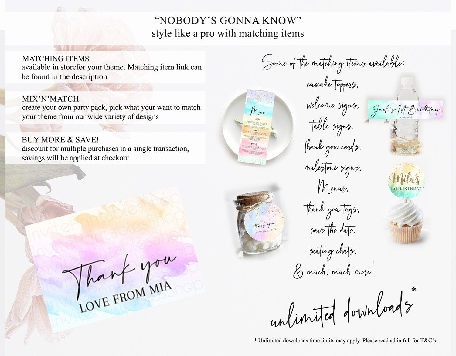 Pastel Thank You Rainbow Thank You Card Colorful Pastel Birthday Thank You Card Confetti Watercolor Pastel Teacher Thank You Cards D10175