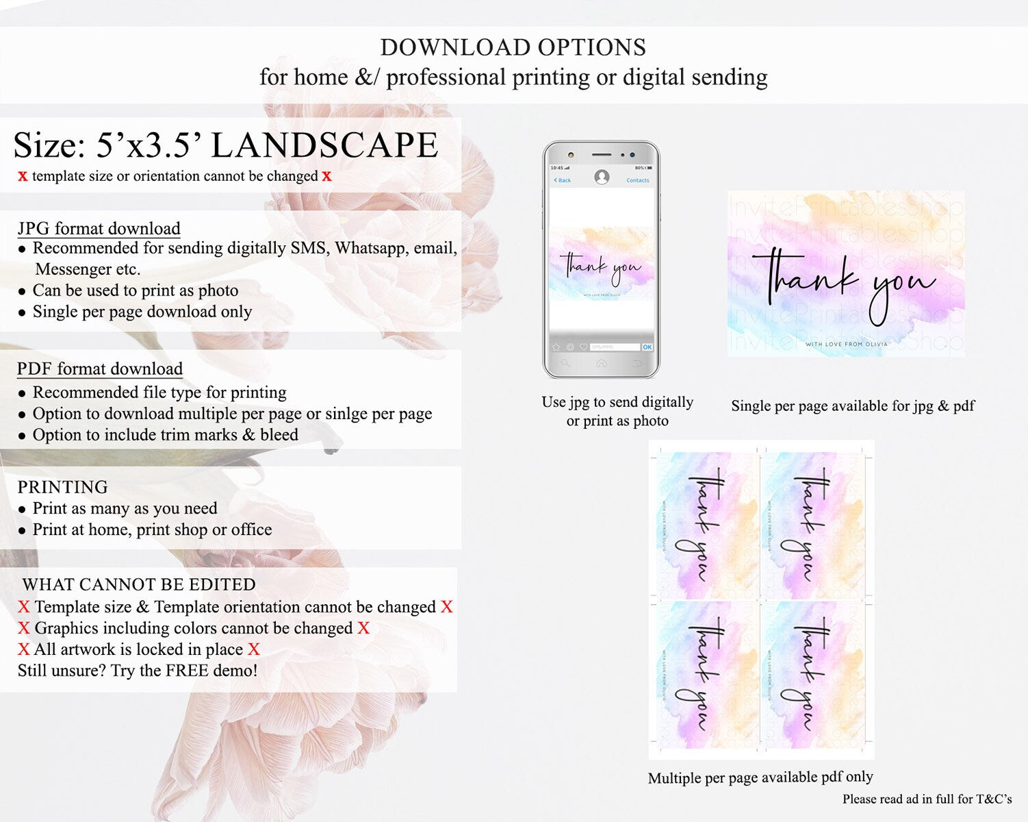 Pastel Thank You Rainbow Thank You Card Colorful Pastel Birthday Thank You Card Confetti Watercolor Pastel Teacher Thank You Cards D10177