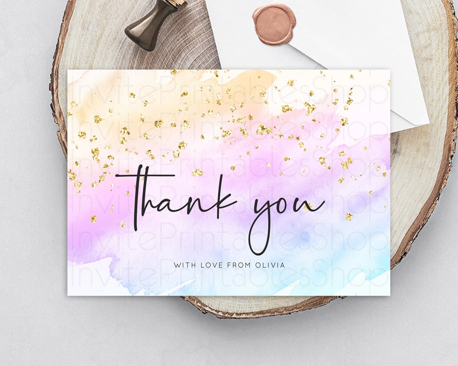 Pastel Thank You Rainbow Thank You Card Colorful Pastel Birthday Thank You Card Confetti Watercolor Pastel Teacher Thank You Cards D10177