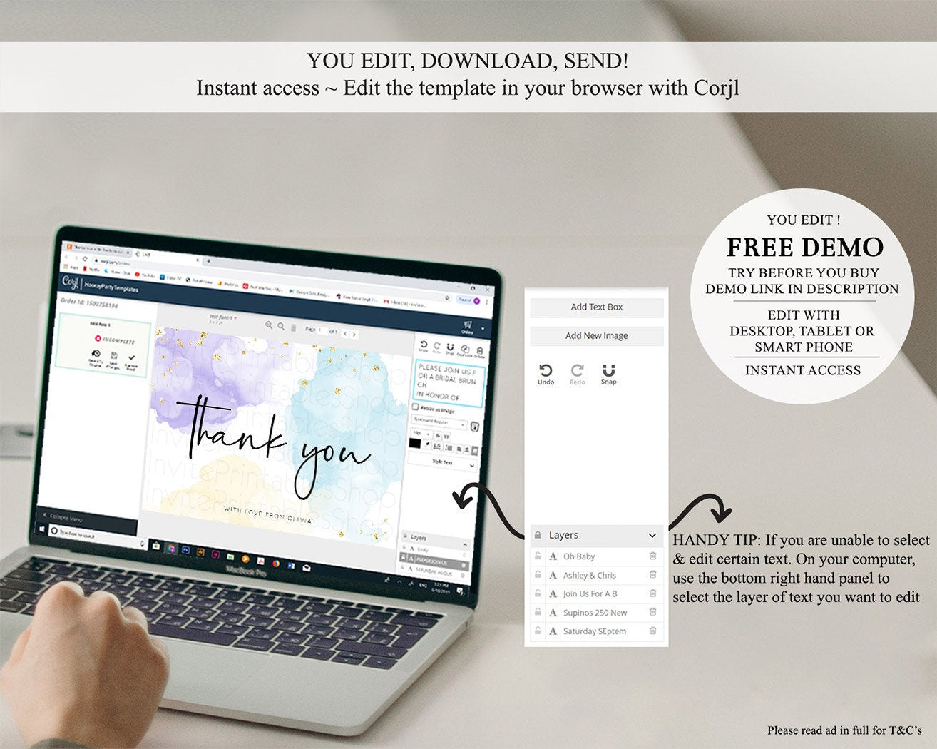 • After purchase, Corjl emails your editing link. Allow up to 15 minutes for delivery.