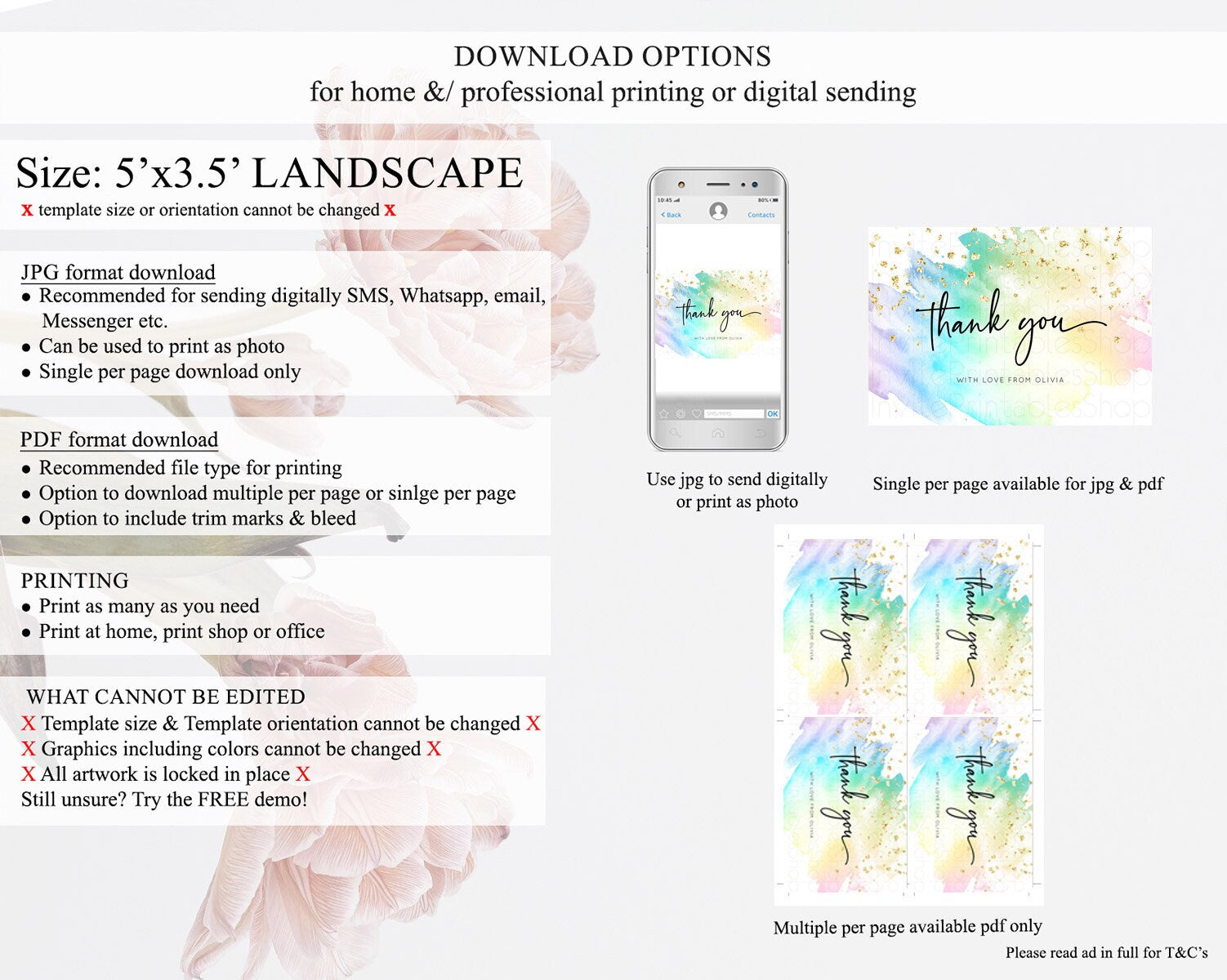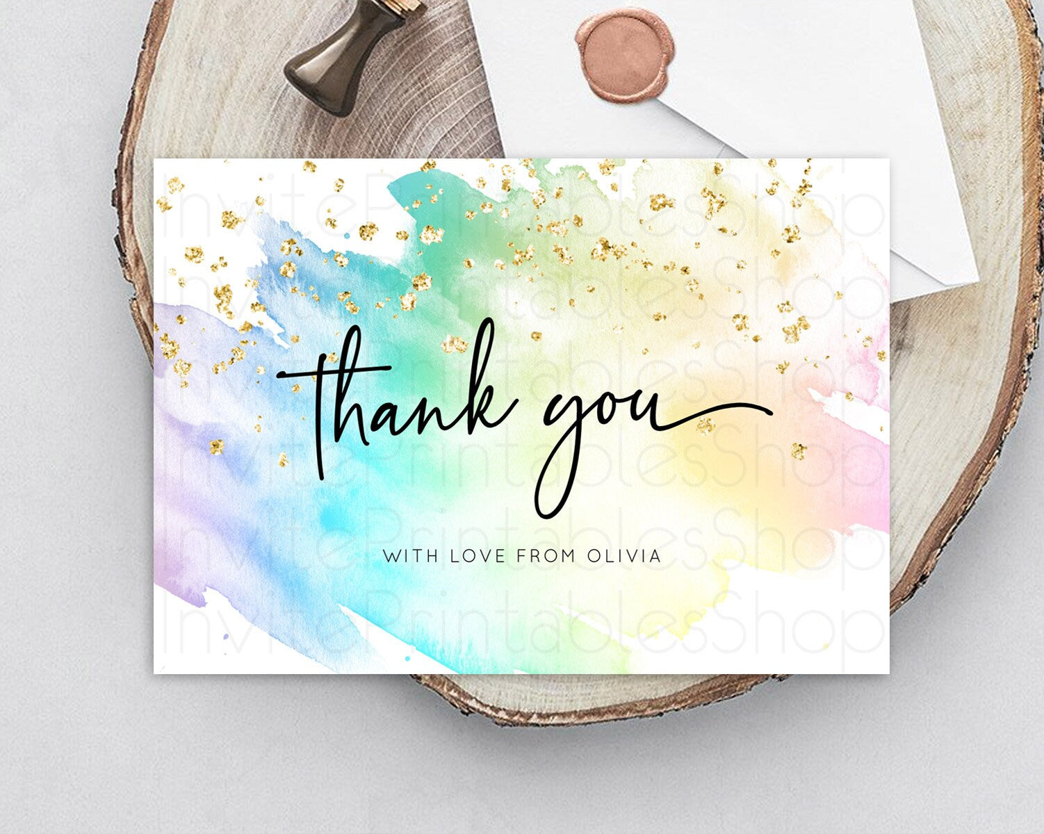 Pastel Thank You Rainbow Thank You Card Colorful Pastel Birthday Thank You Card Confetti Watercolor Pastel Teacher Thank You Cards D10256