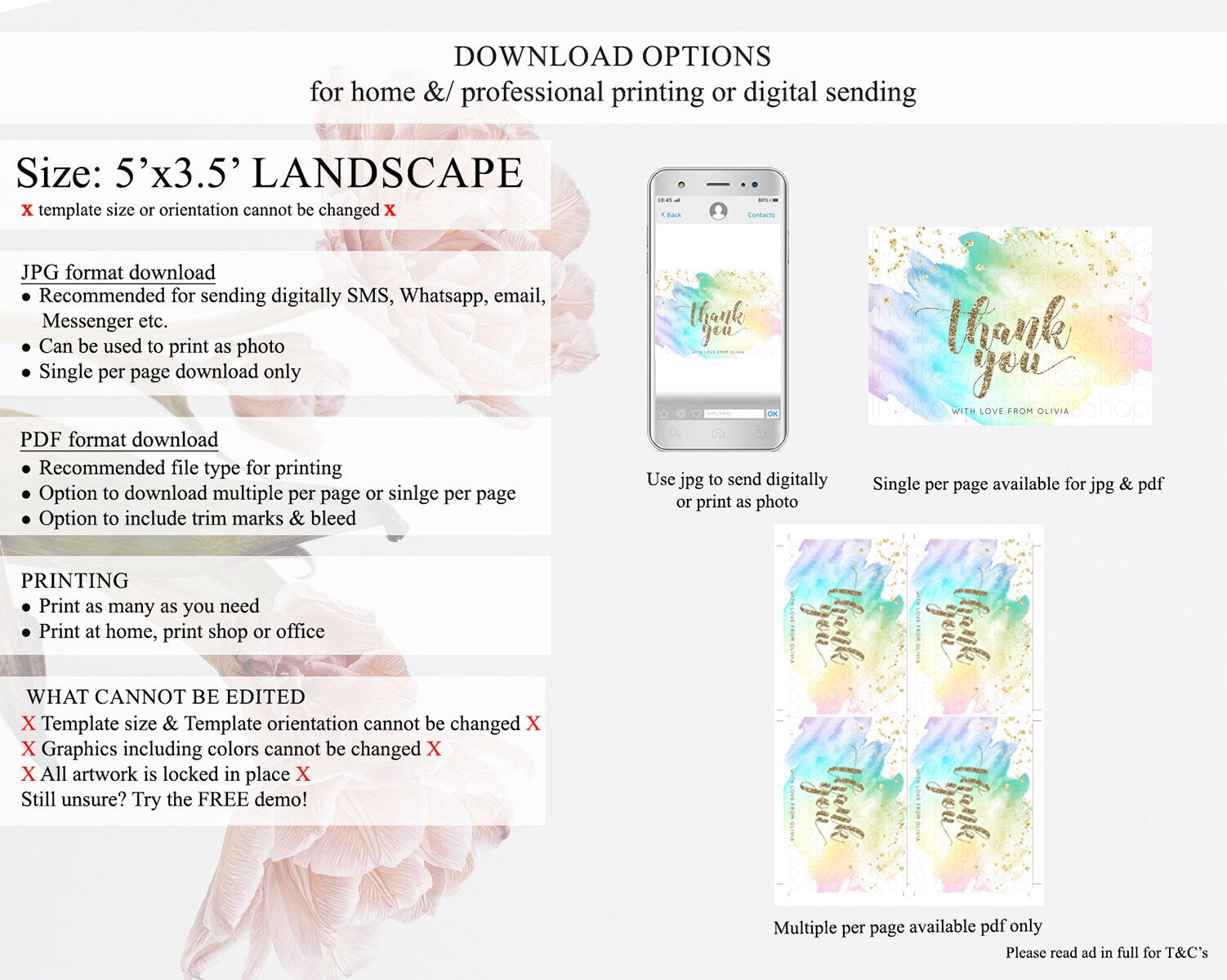 • Template size & orientation cannot be changed. Please use the demo link to confirm this product suits your needs.