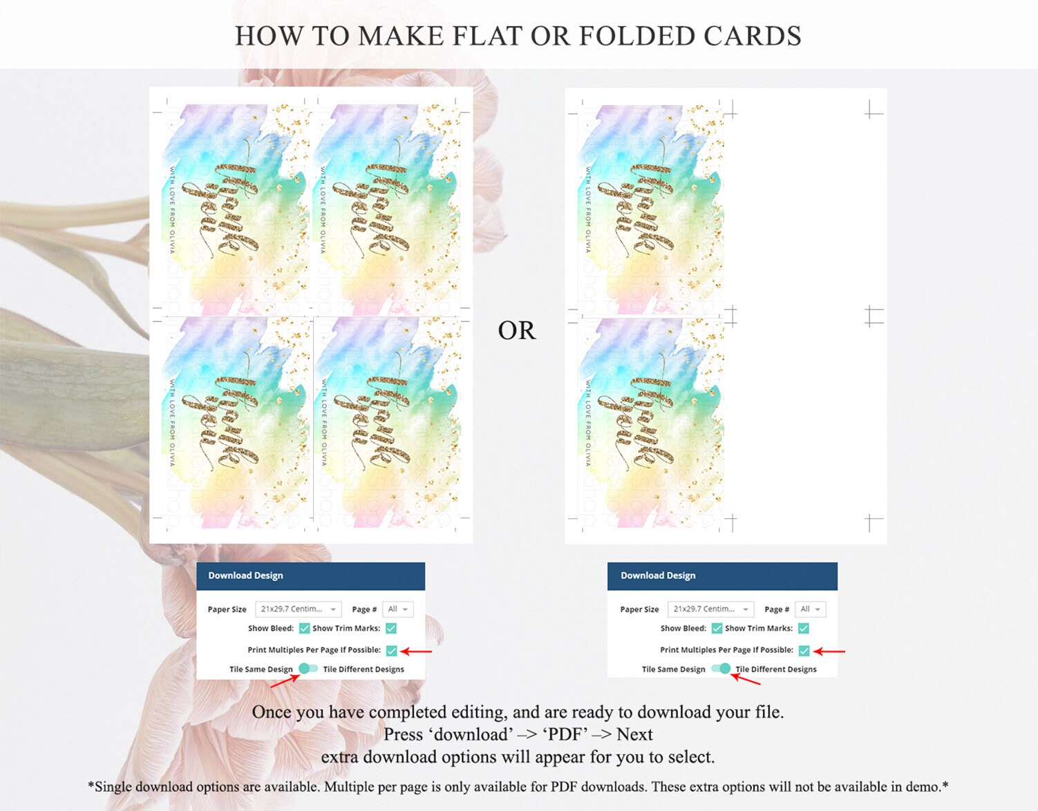 • Custom changes to artwork are not provided on existing templates.